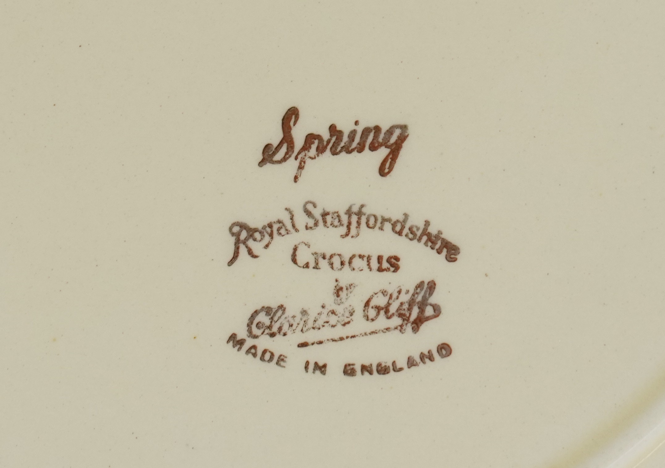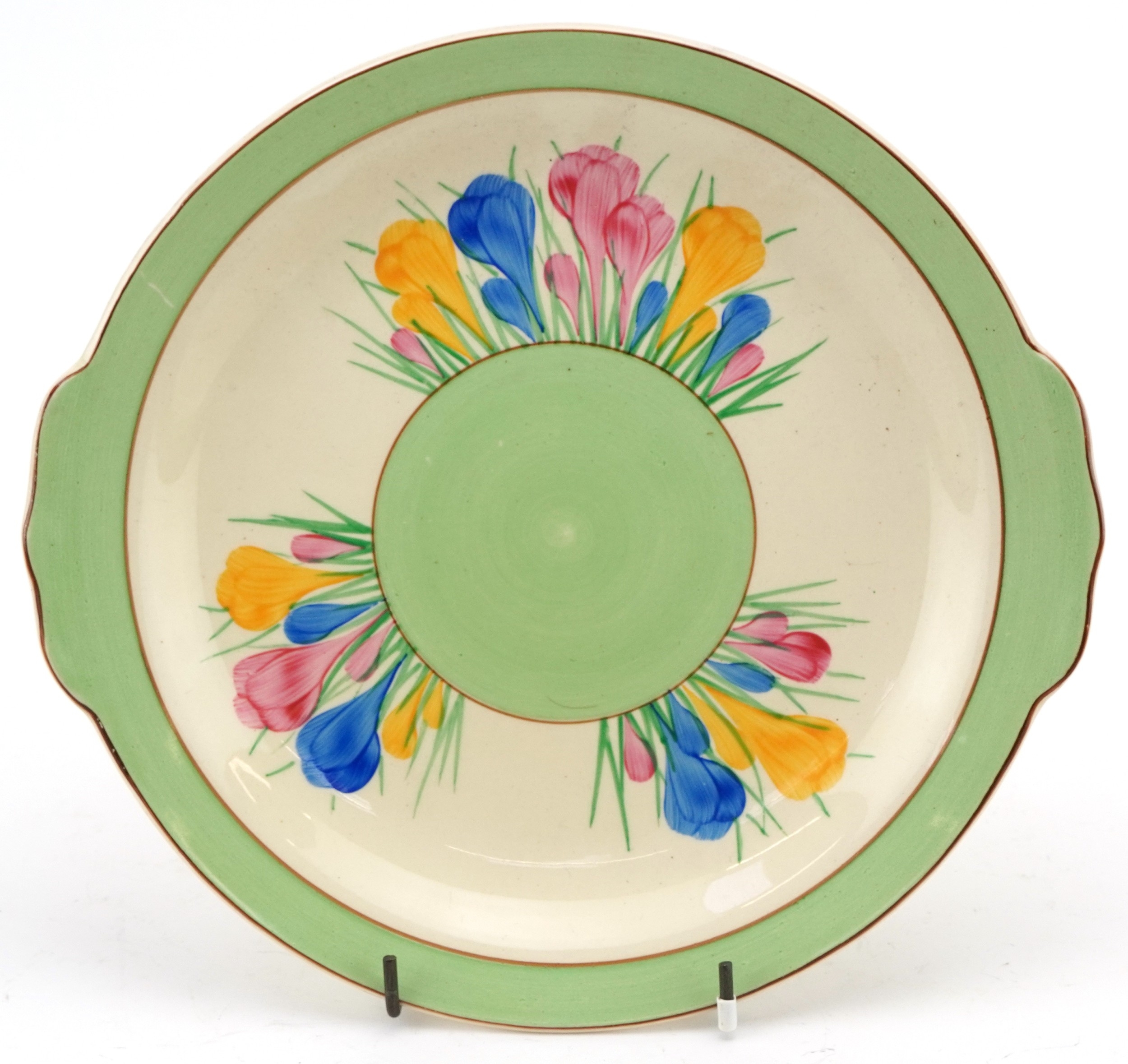 Clarice Cliff for Royal Staffordshire, an Art Deco plate hand painted in the Crocus pattern, 24cm wide.