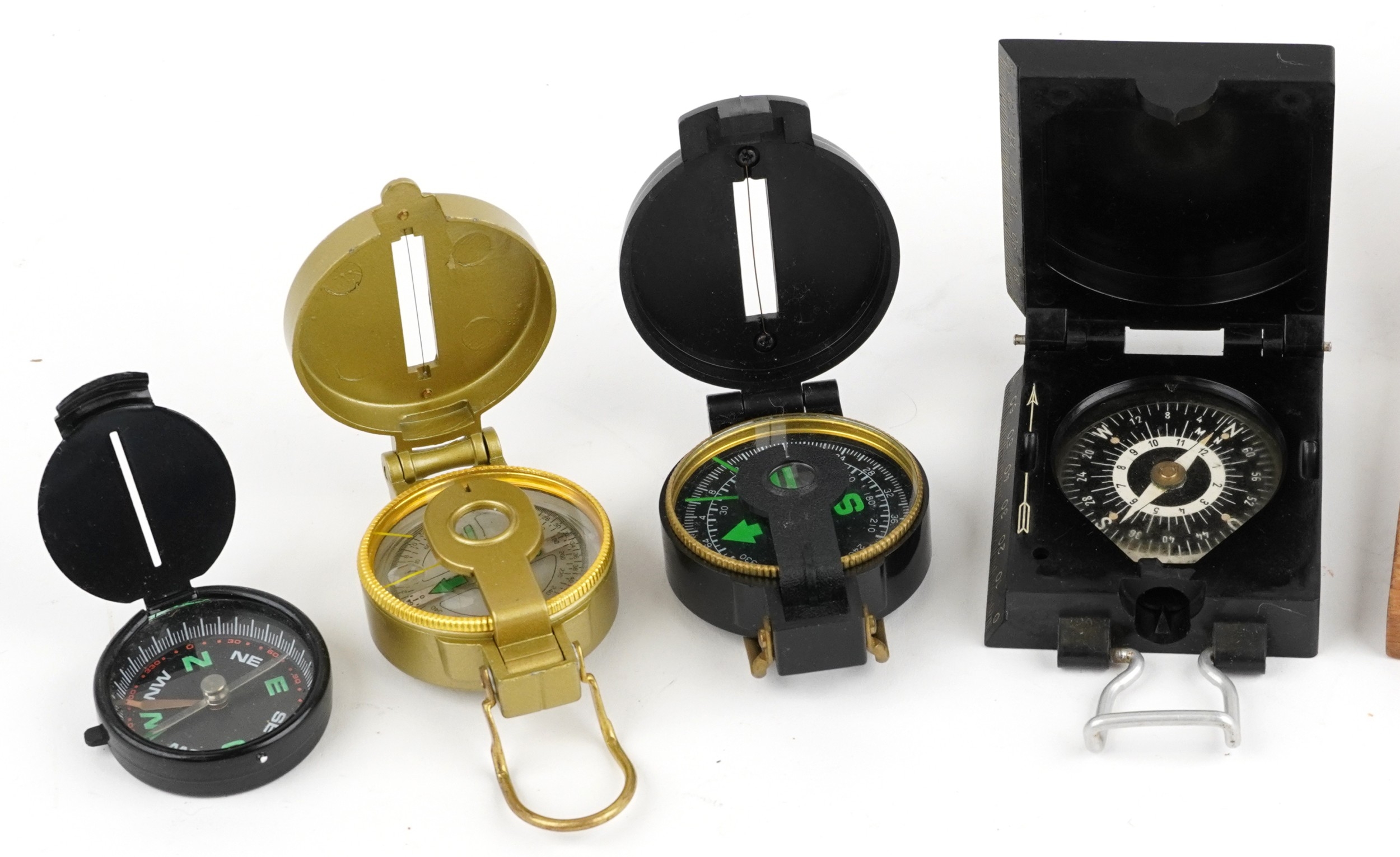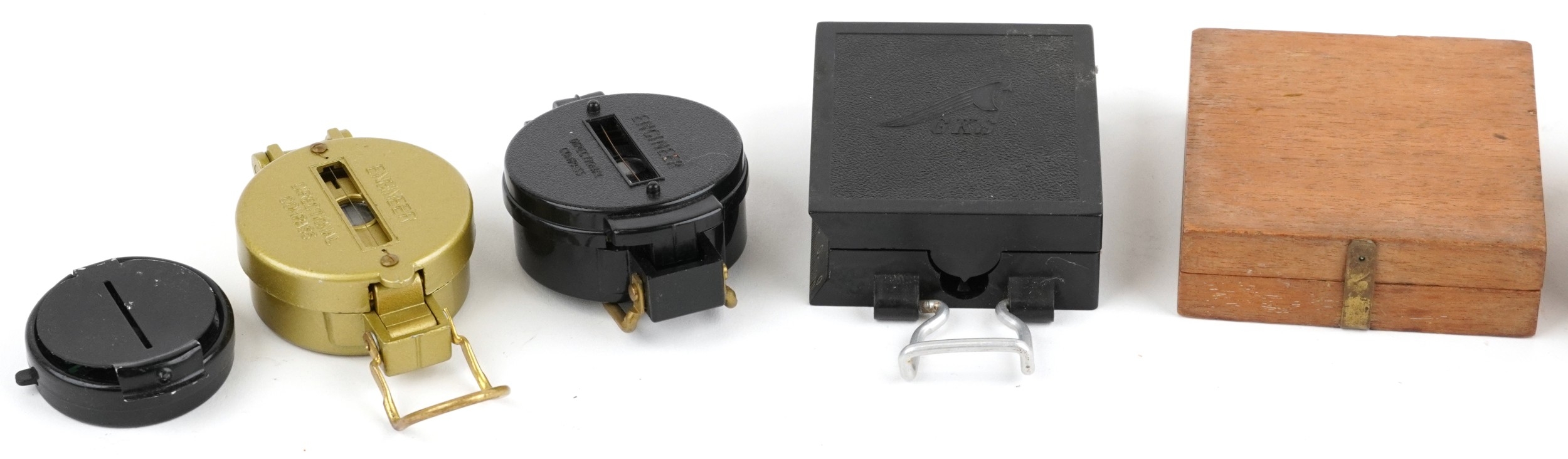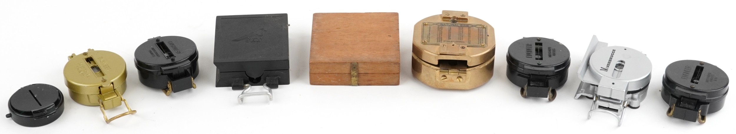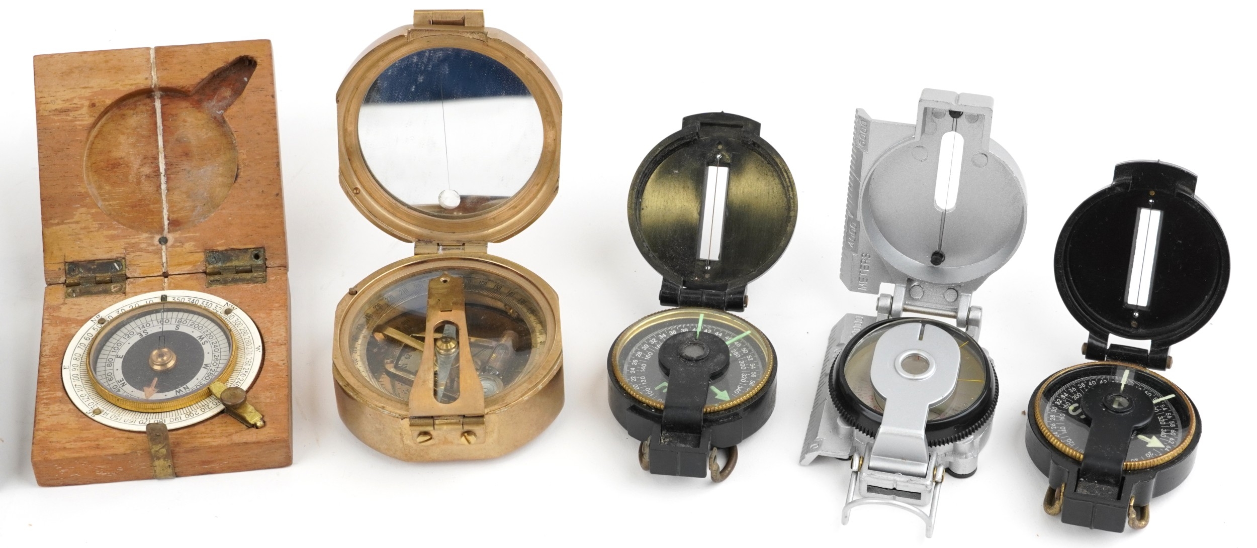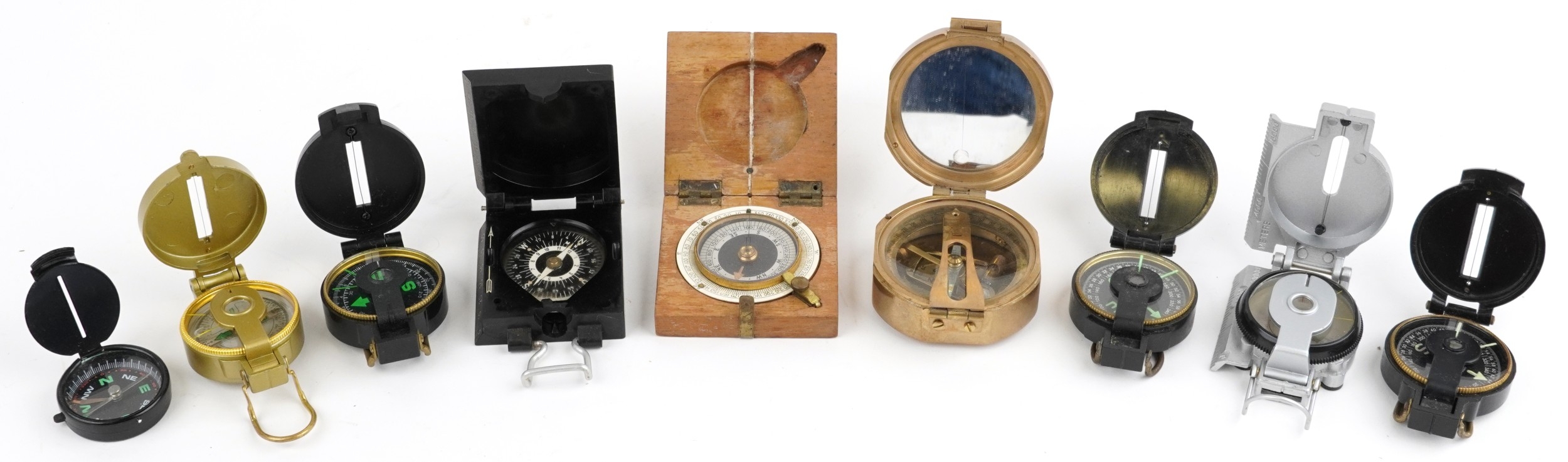 A collection of military interest compasses including J. War...
