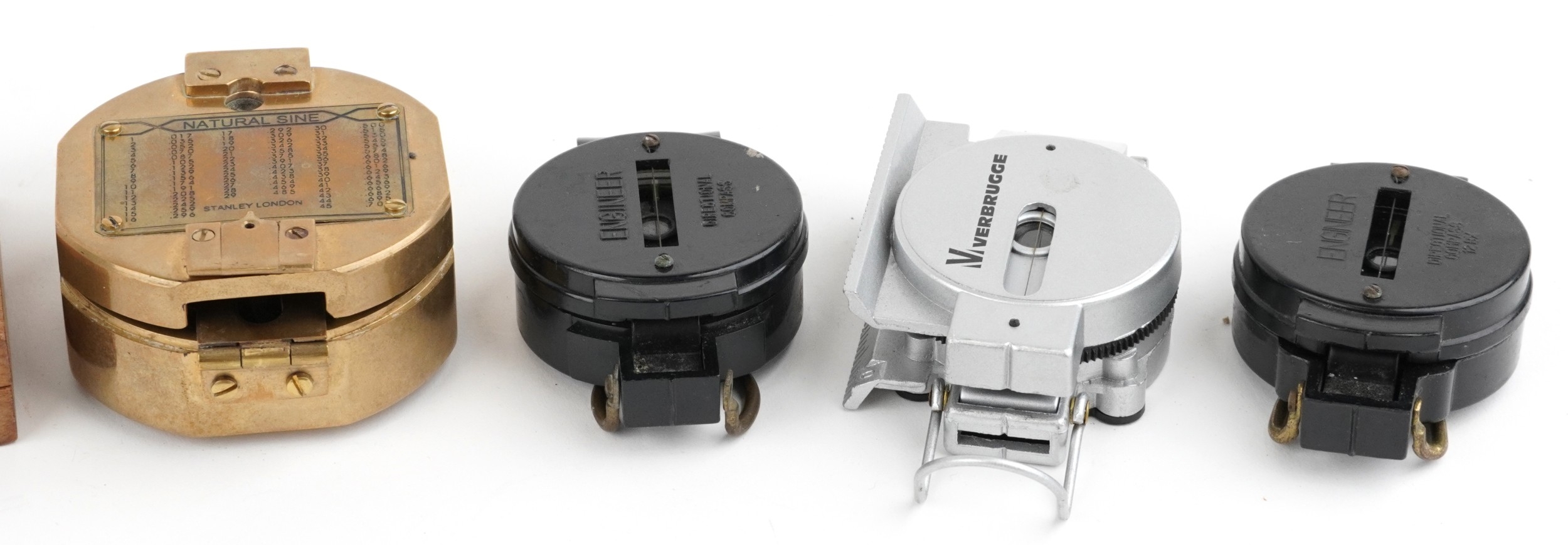 A collection of military interest compasses including J. Wardale & Co. London, the largest 8cm x 8cm.