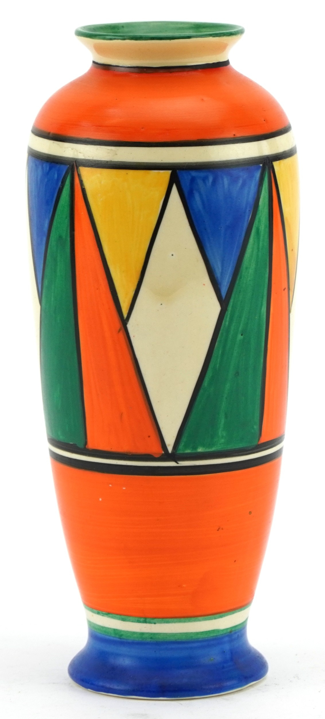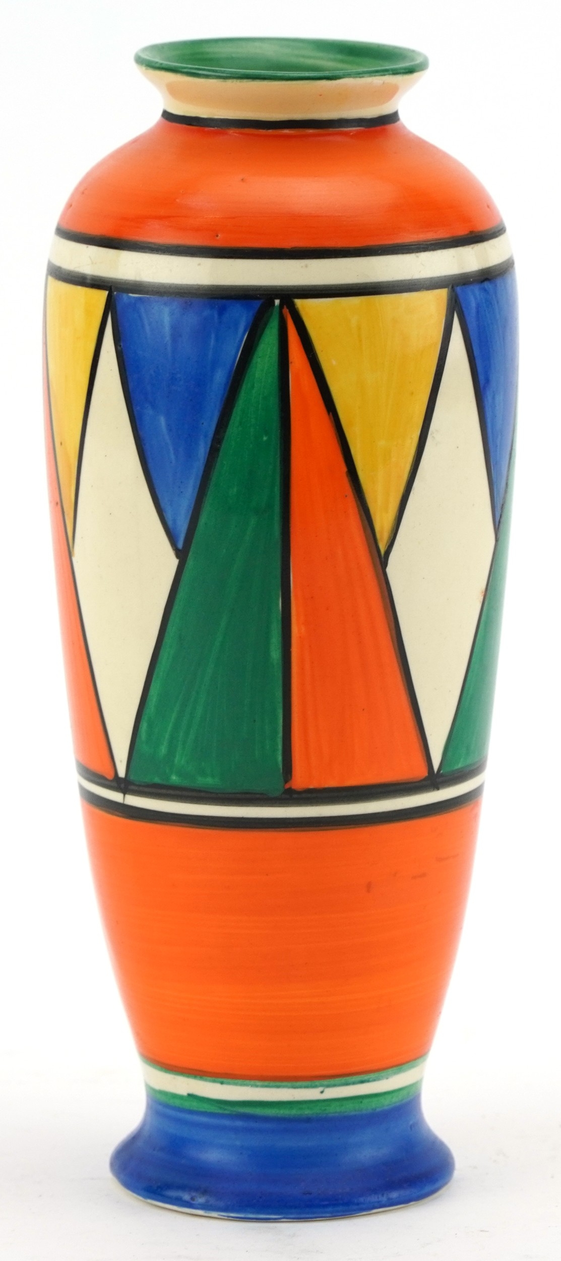Clarice Cliff, an Art Deco hand painted Bizarre vase, 18cm high.