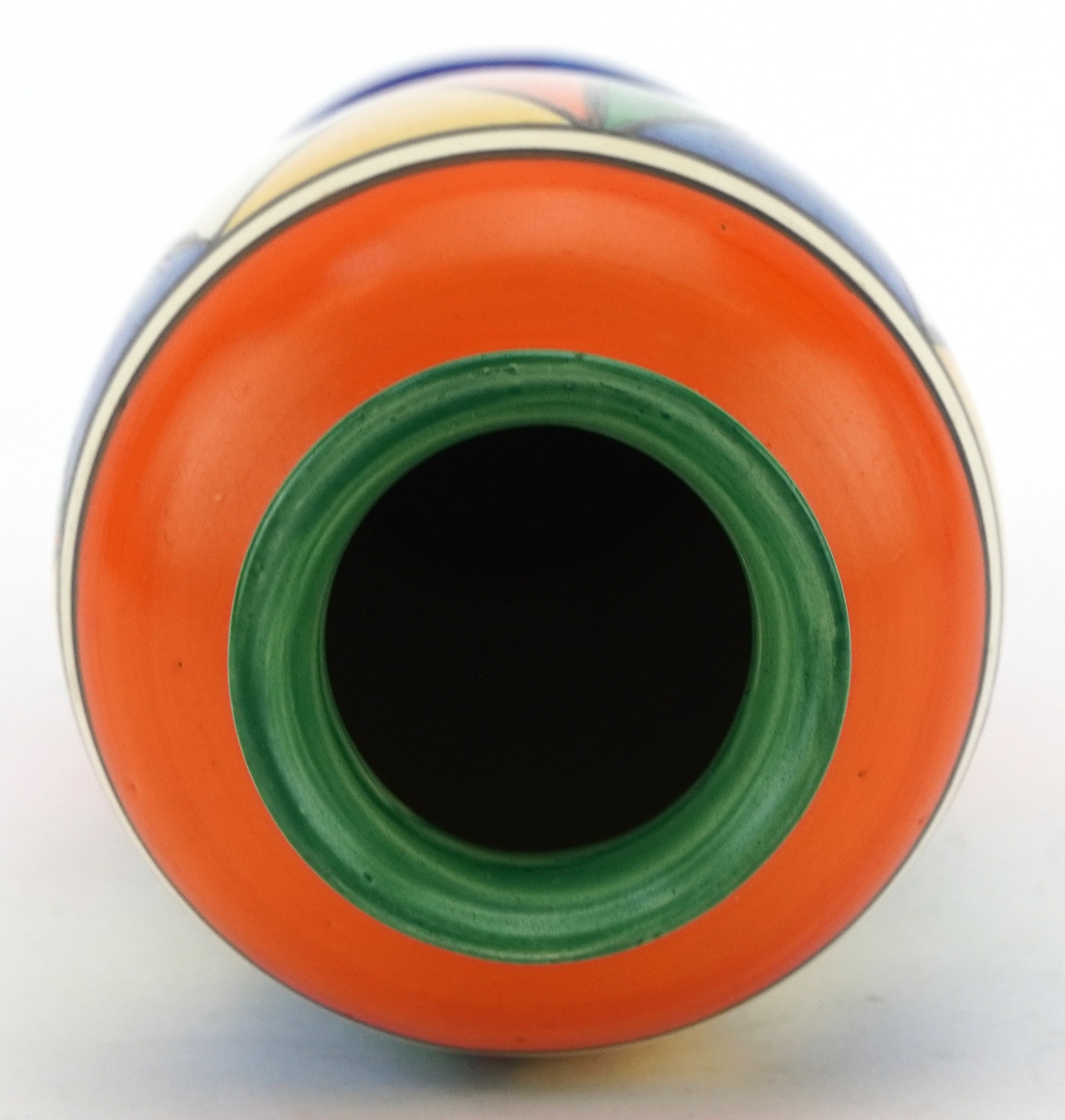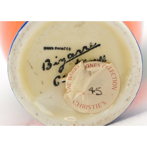 Clarice Cliff, an Art Deco hand painted Bizarre vase, 18cm h...