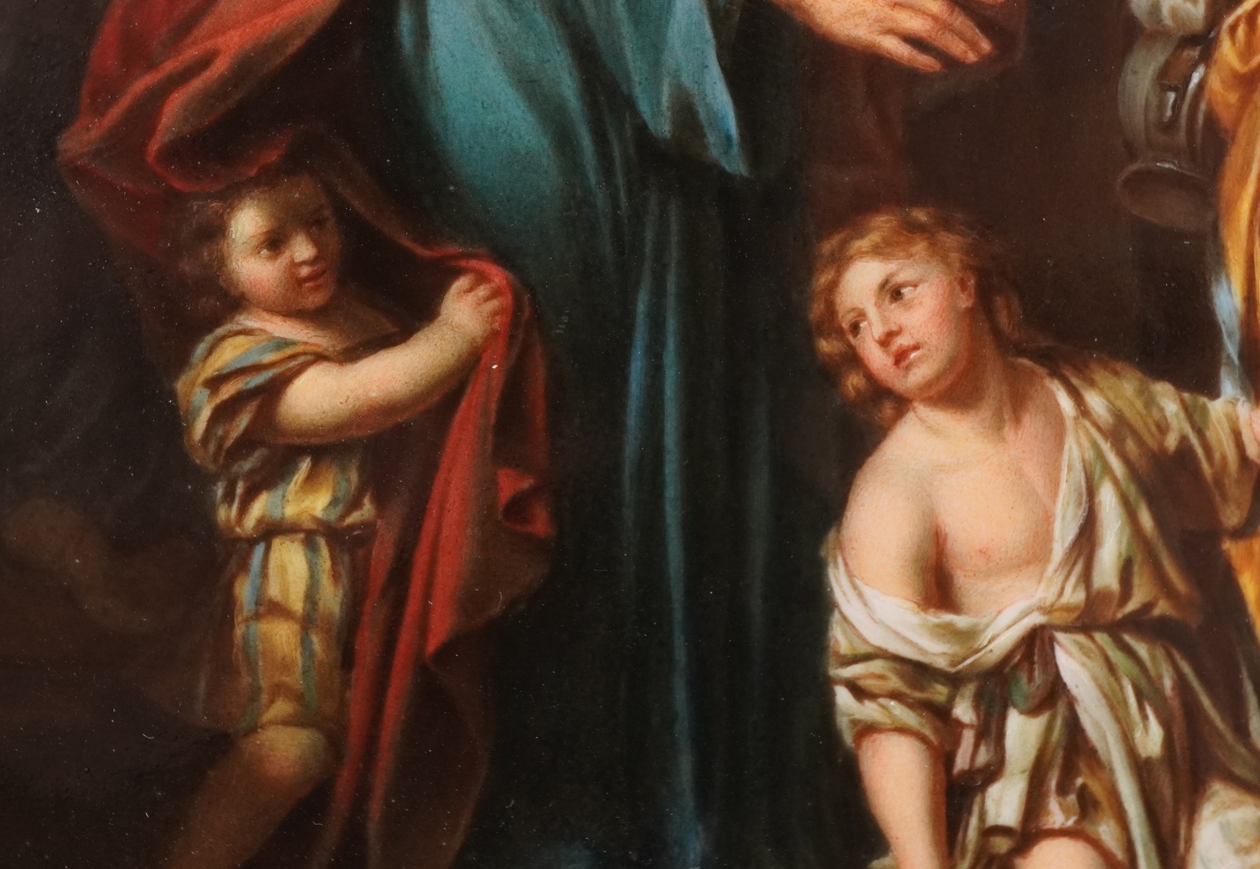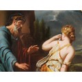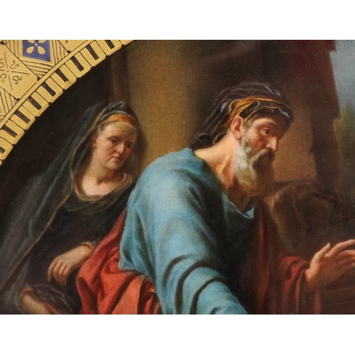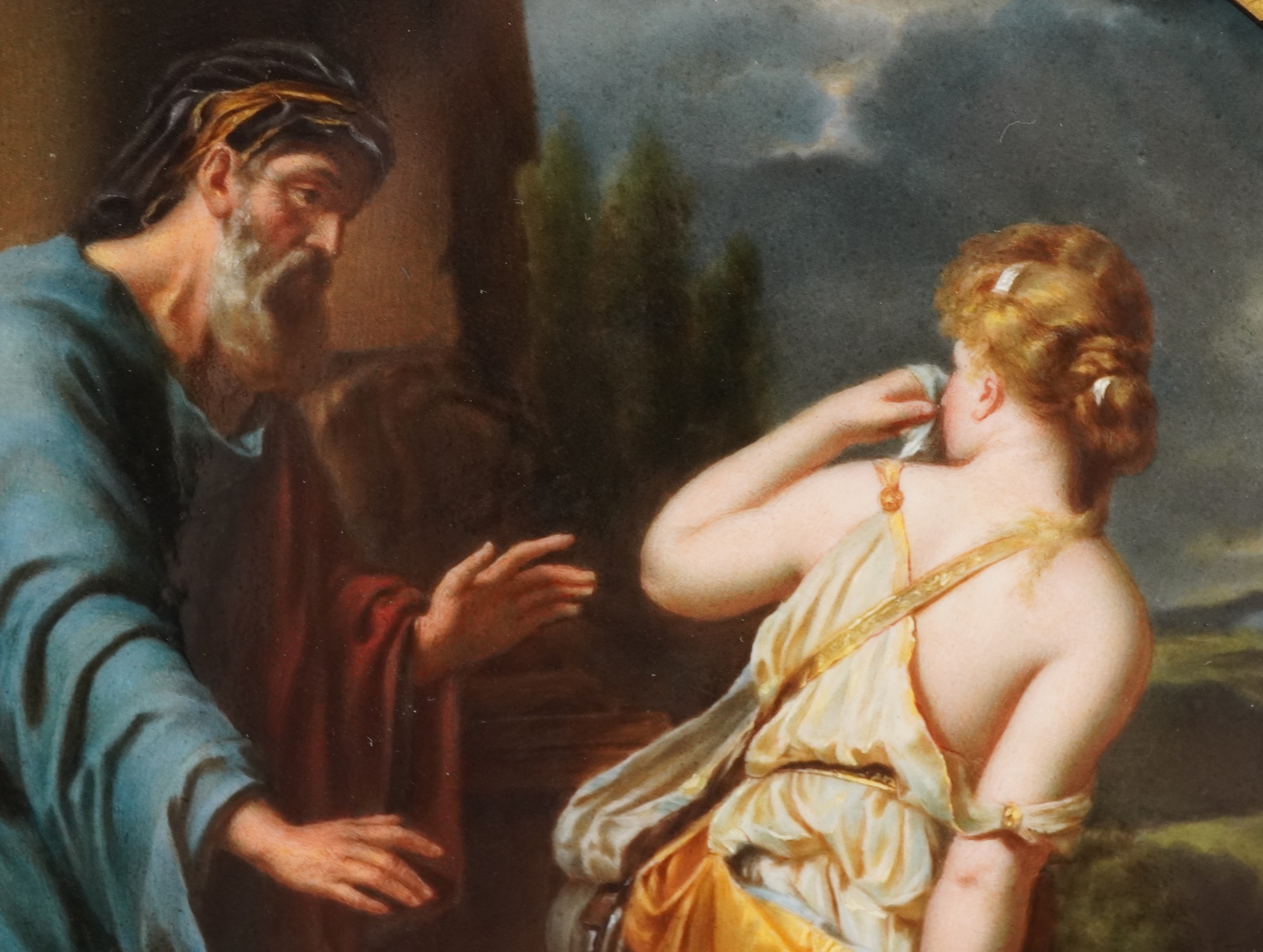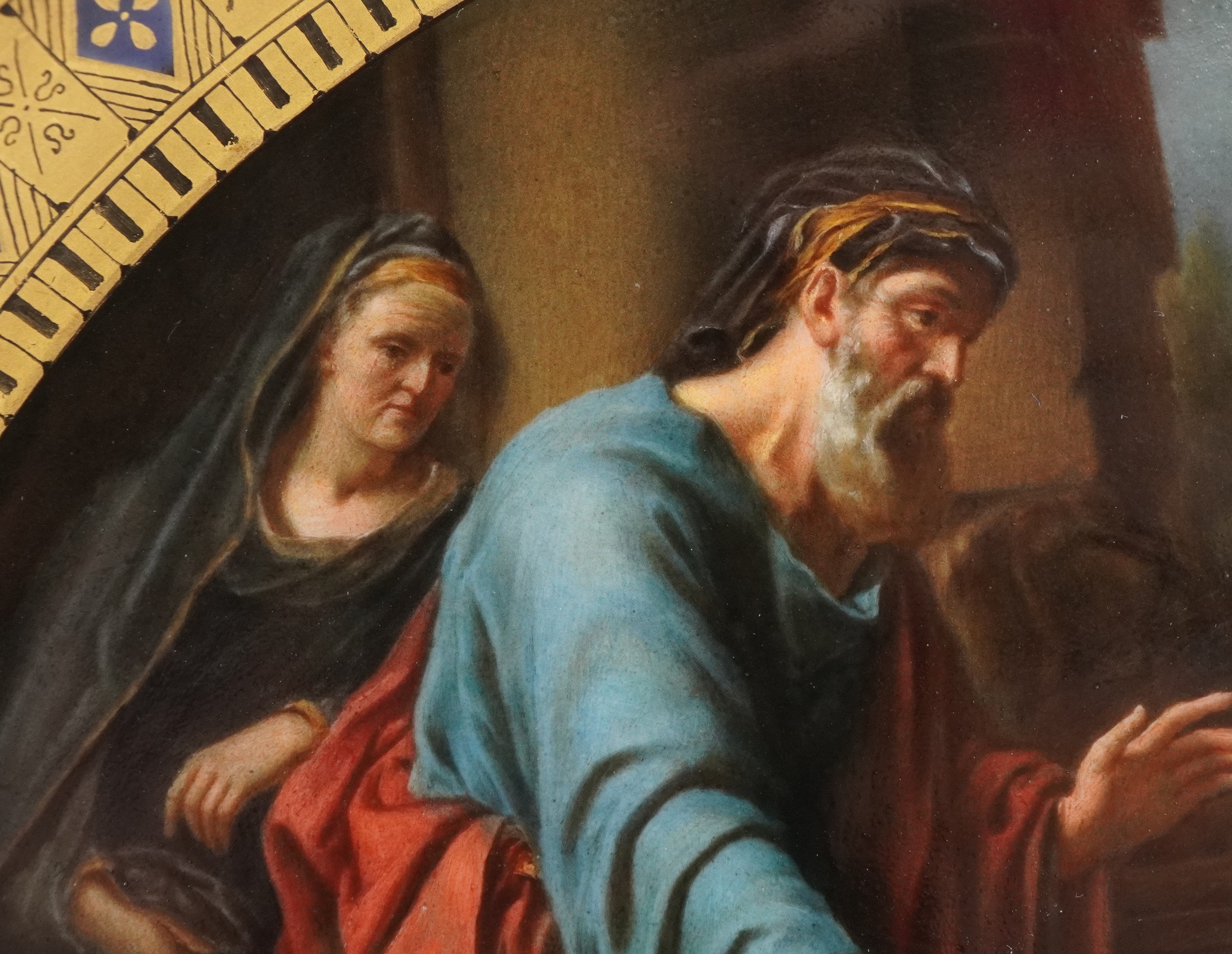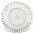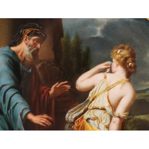 A Meissen 19th century German porcelain cabinet plate with pierced rim, hand painted after Adriaen van der Werff depicting 'The Banishment of Hagar & Ishmael', bearing blue crossed sword marks to the base, 24cm in diameter.
