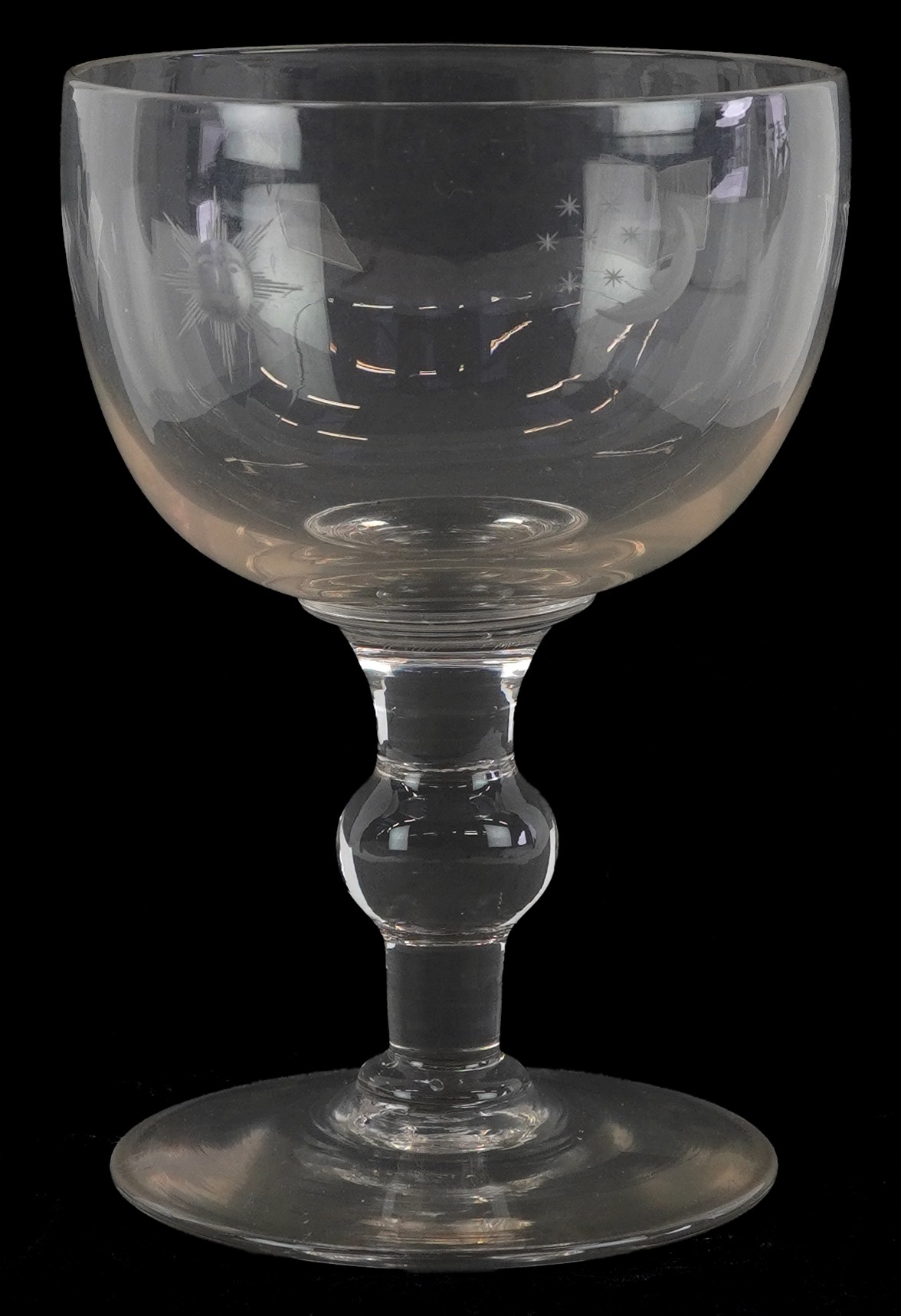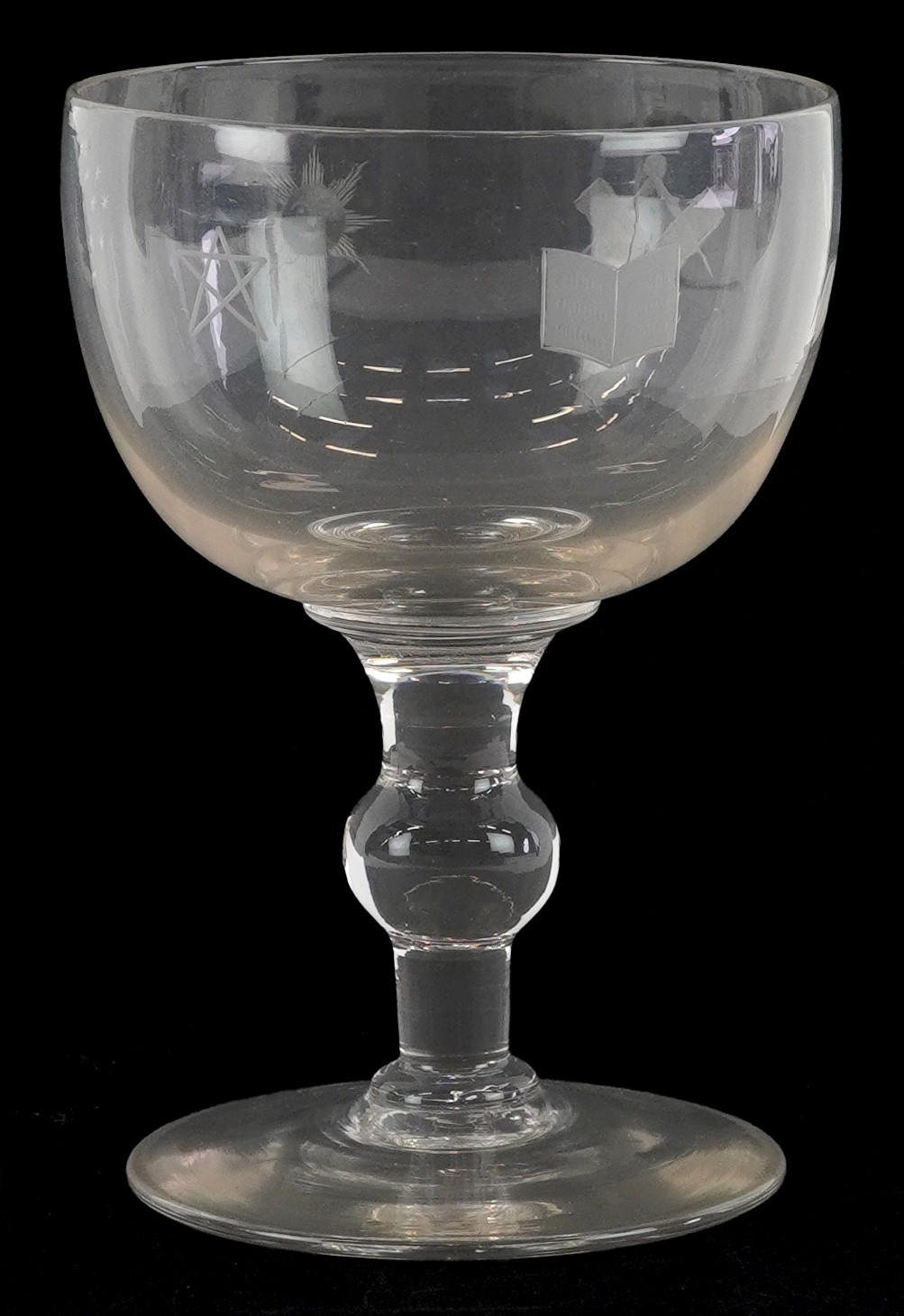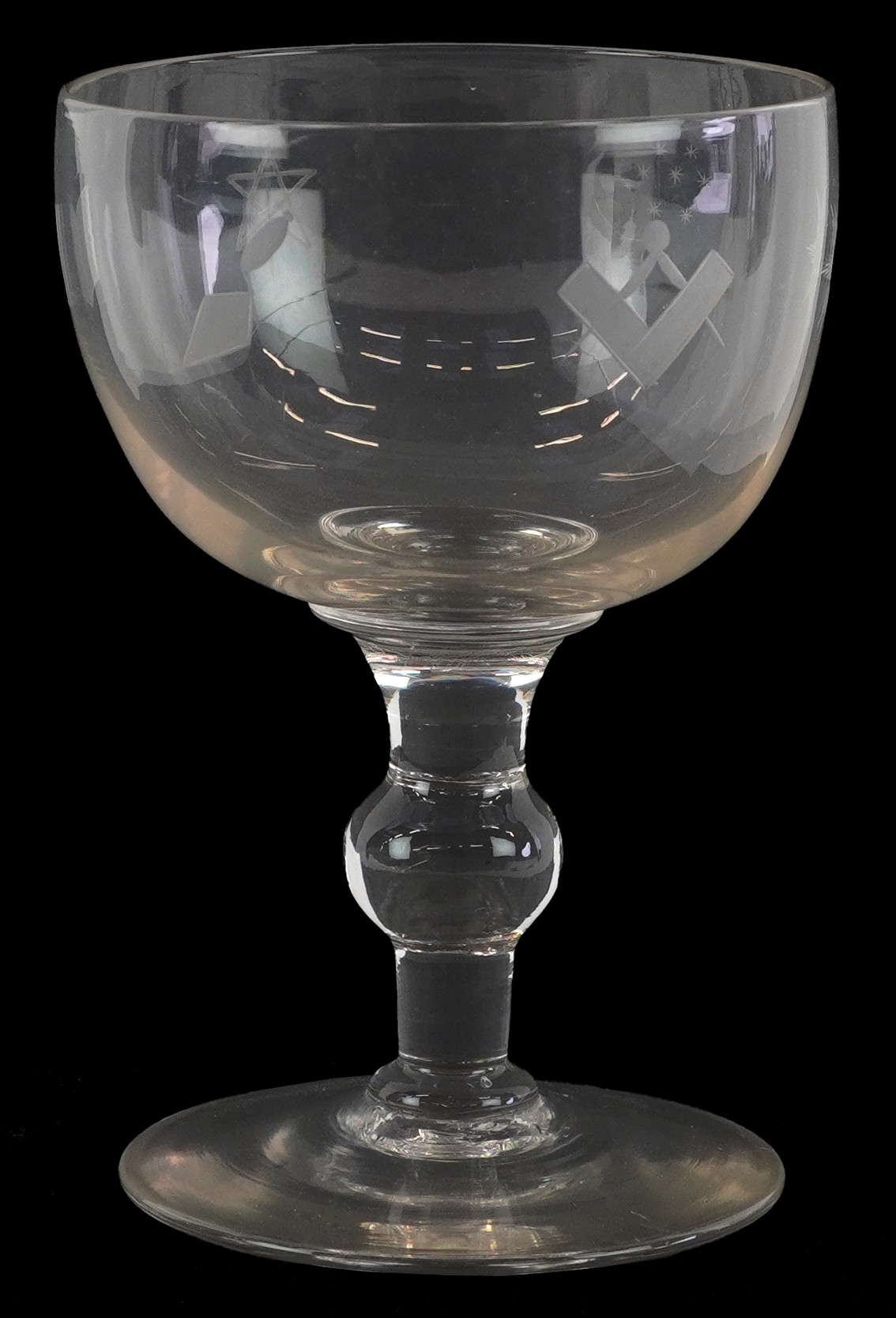 A 19th century masonic goblet having etched symbols, 17cm hi...