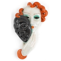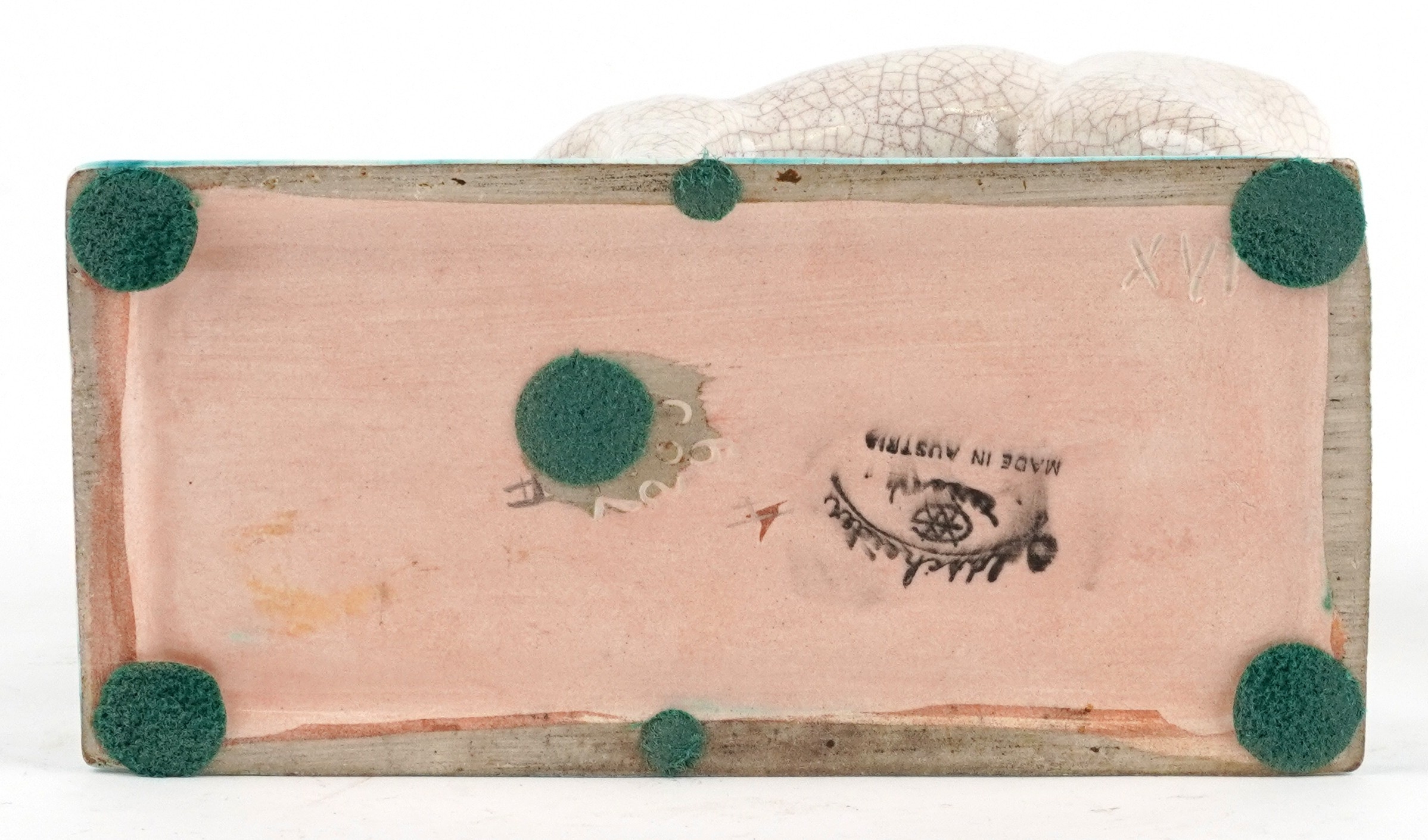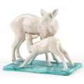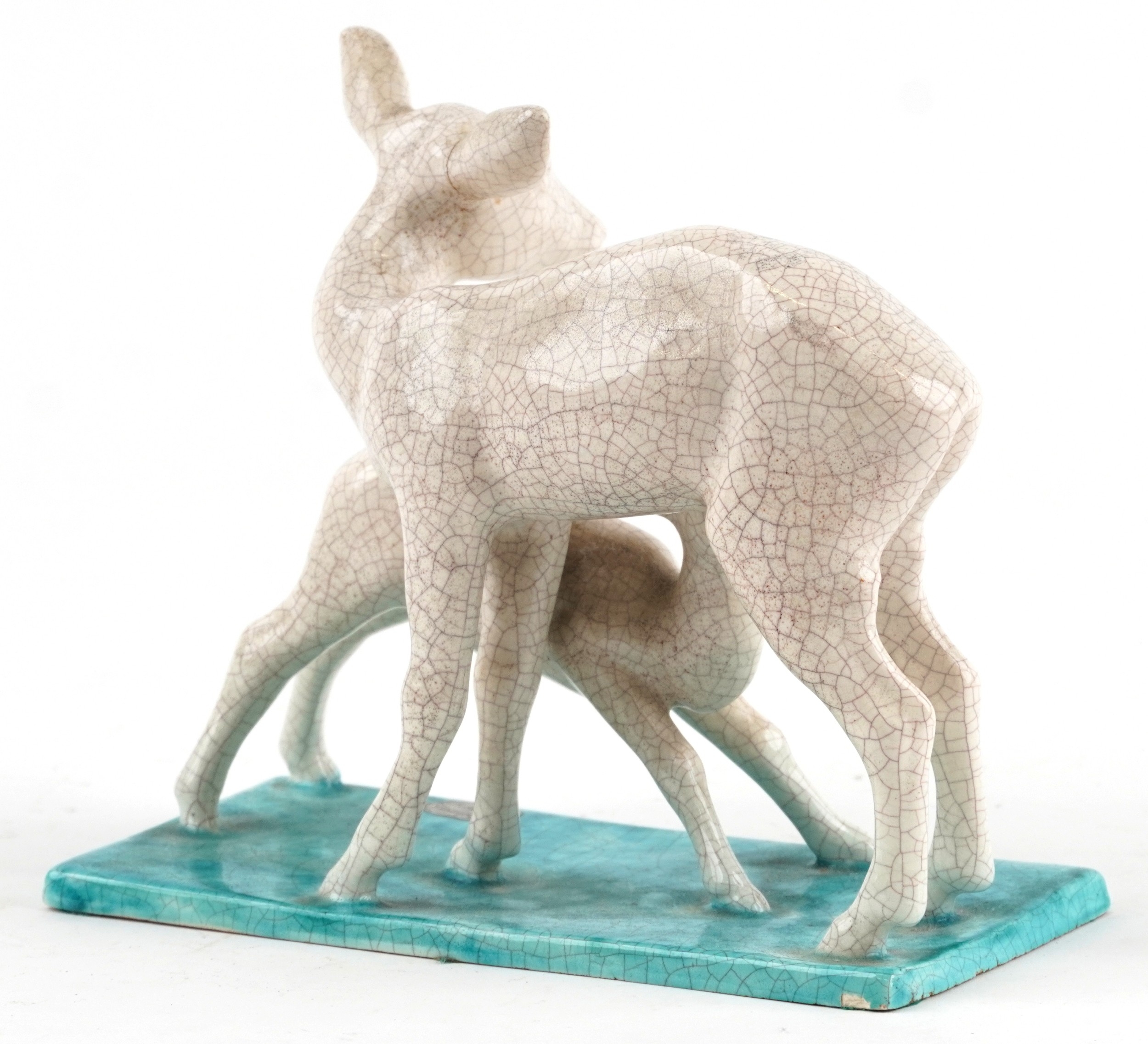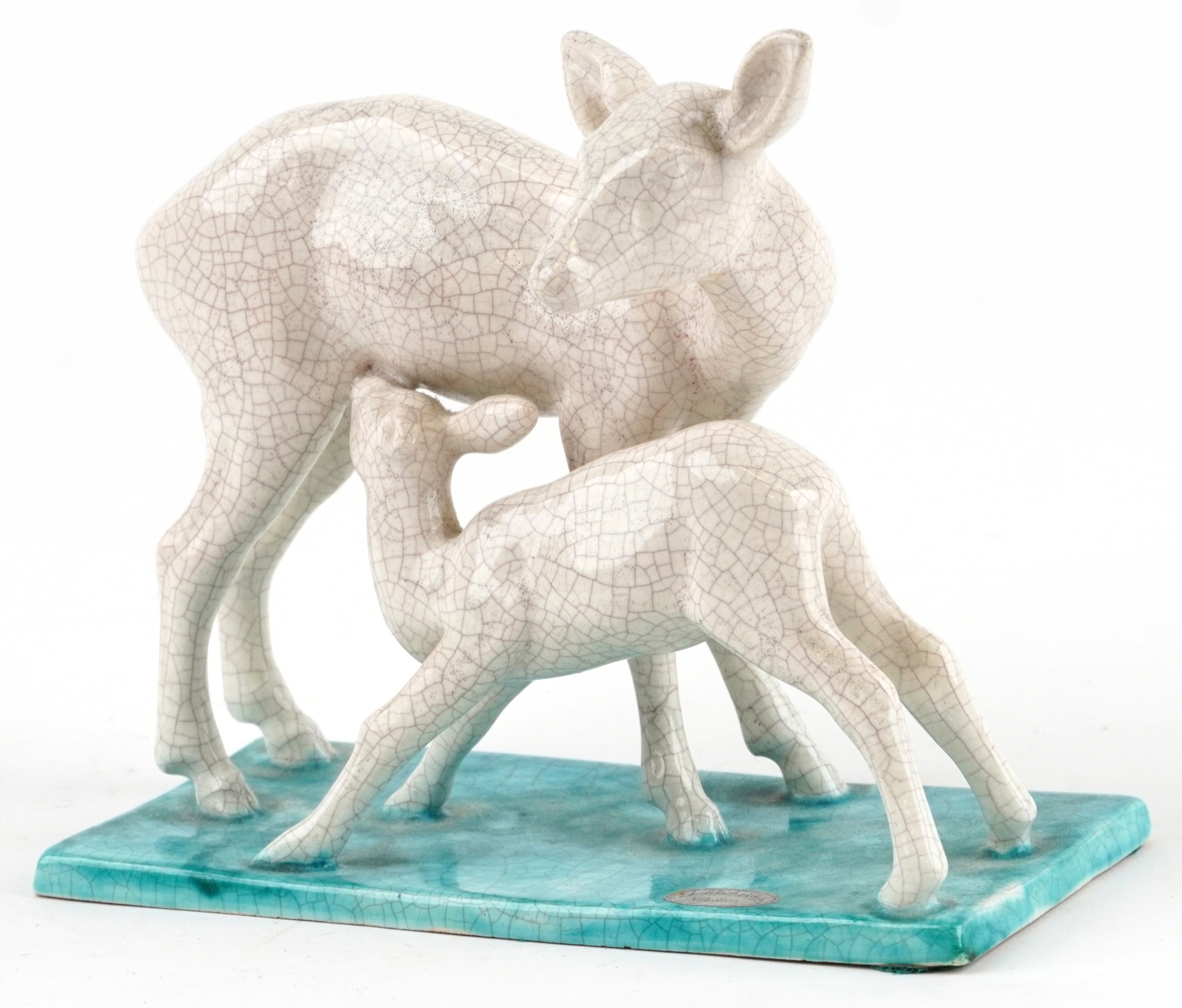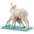 A Goldscheider Art Deco pottery study of a fawn and deer, marks and sticker to the base, 16cm high.