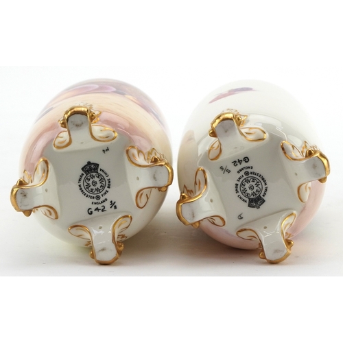 A matched pair of Royal Worcester porcelain spill vases, eac...