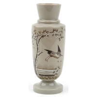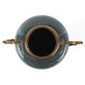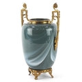 An early 20th century glass vase with gilt metal twin handle...
