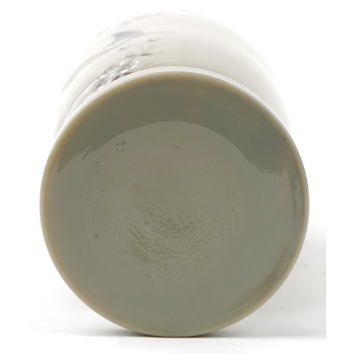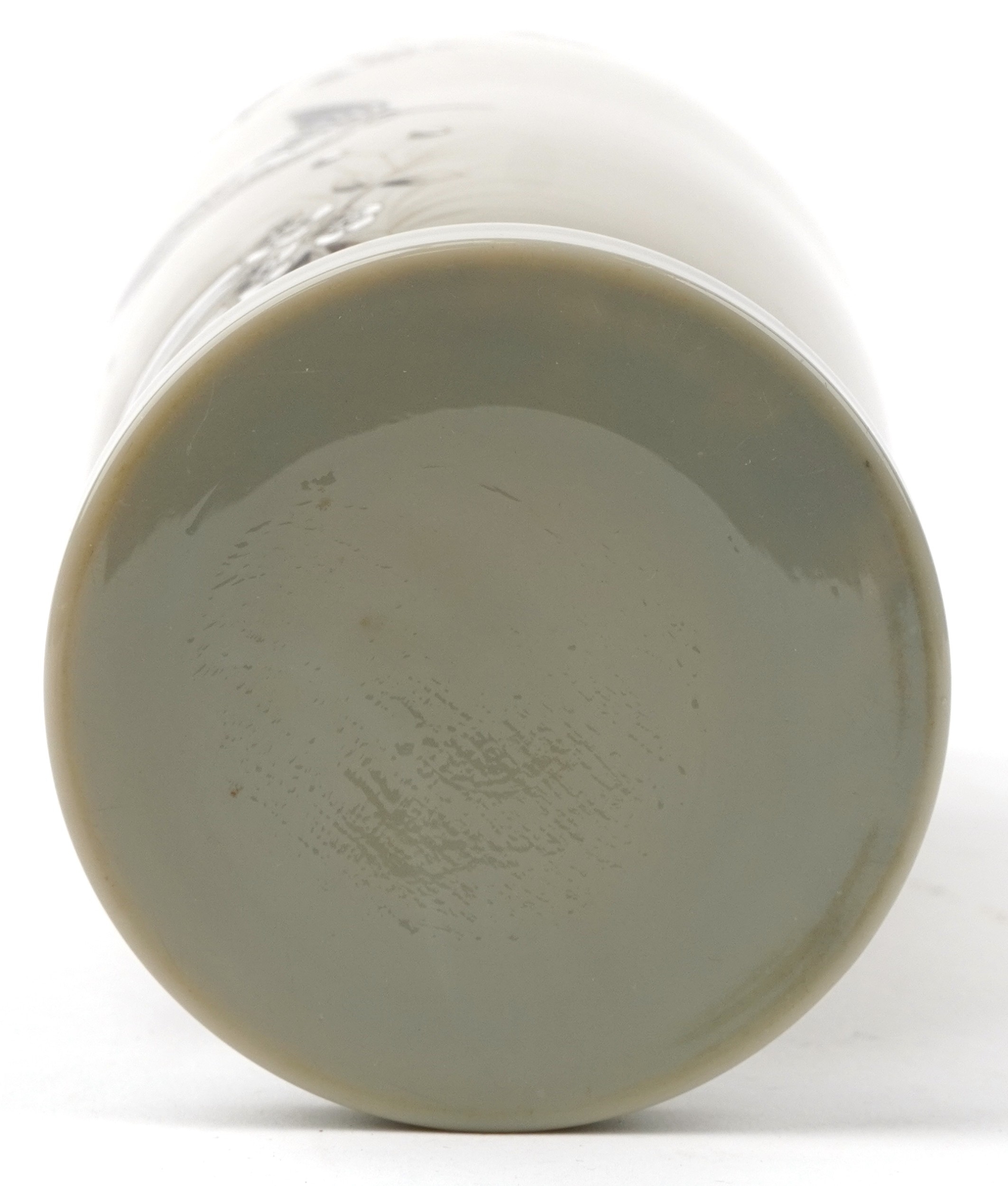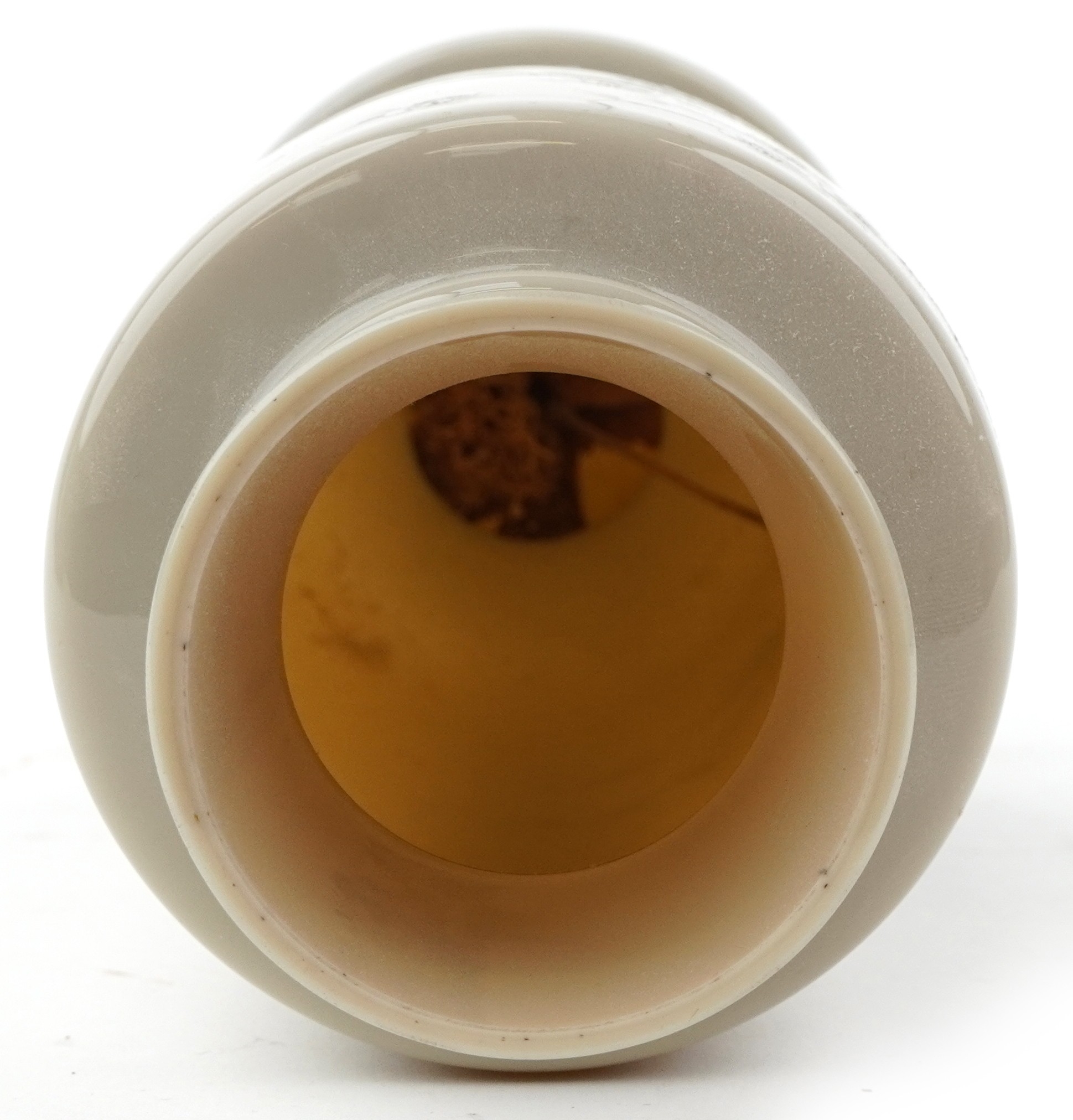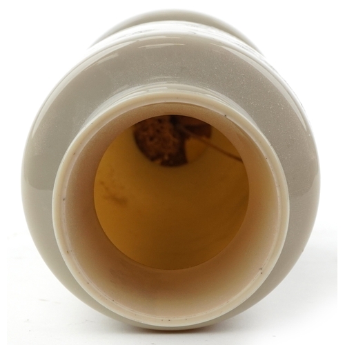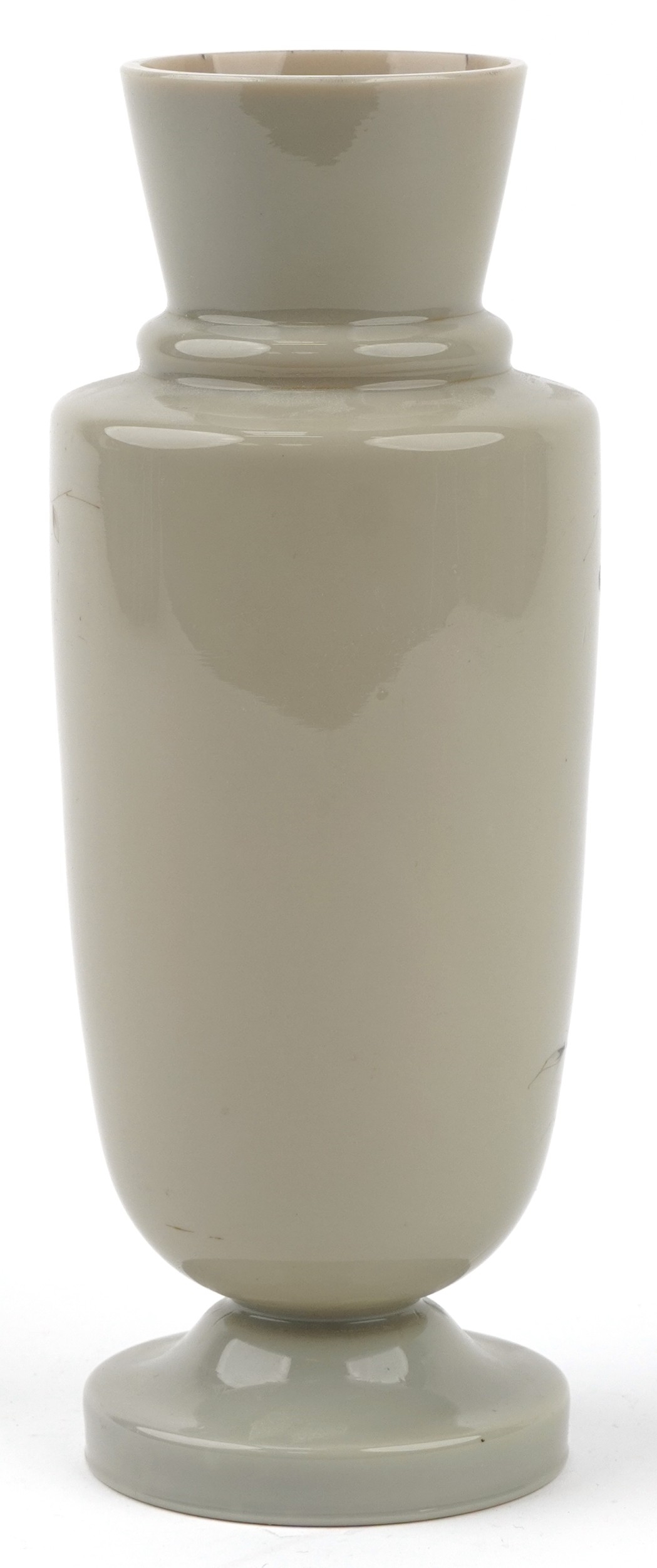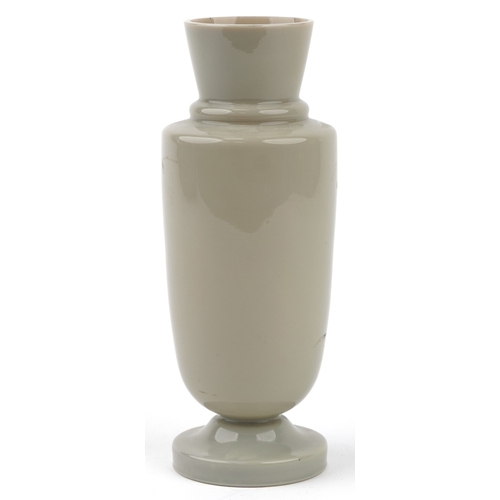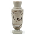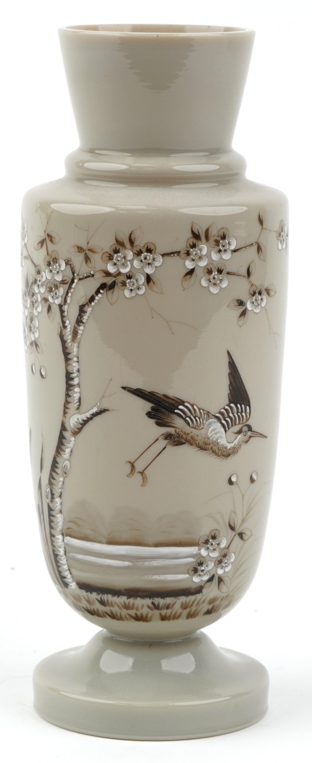 A Victorian opaline glass vase hand painted with chinoiserie decoration and a heron, 29cm high.