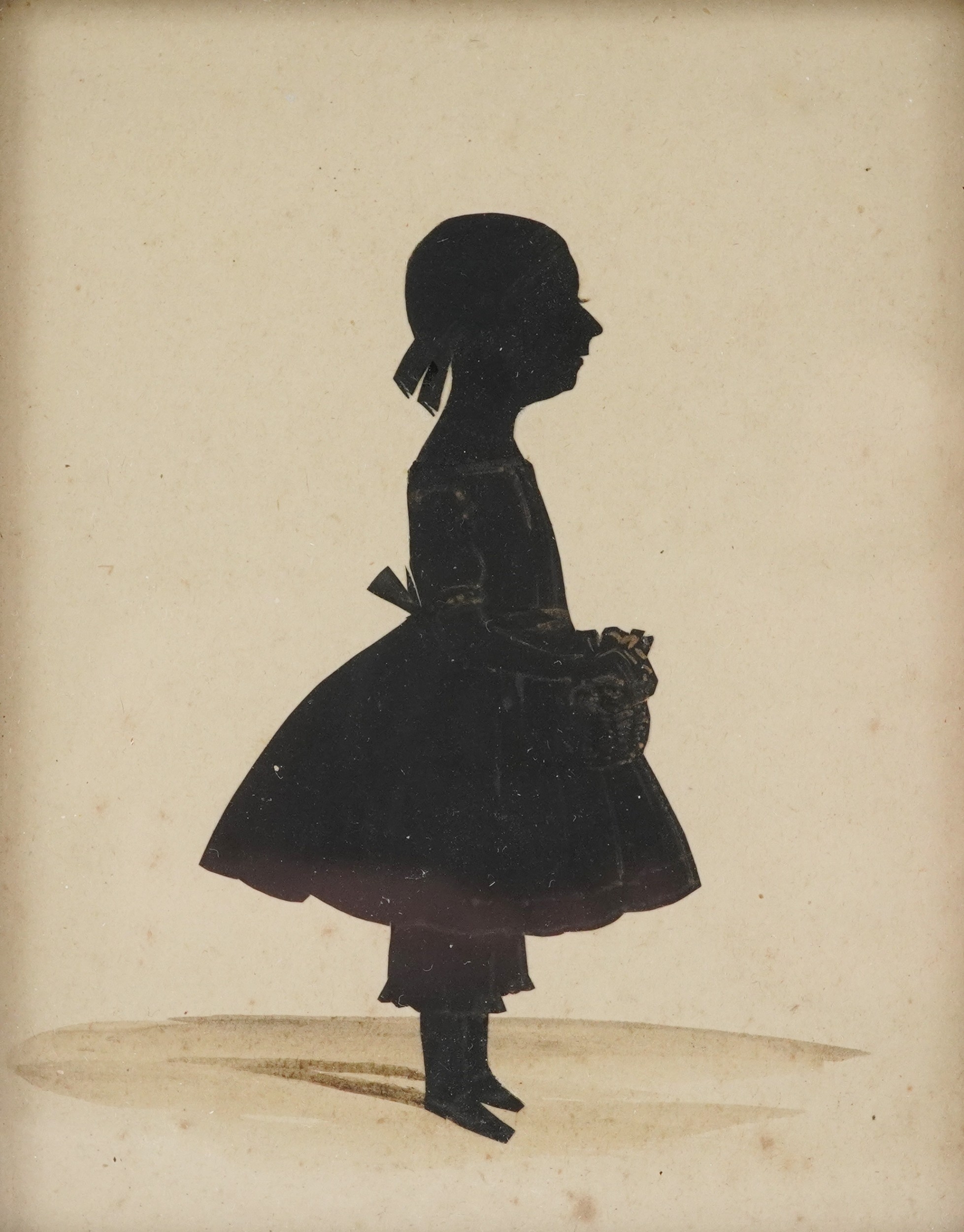 A Georgian hand painted silhouette of a young female, within...
