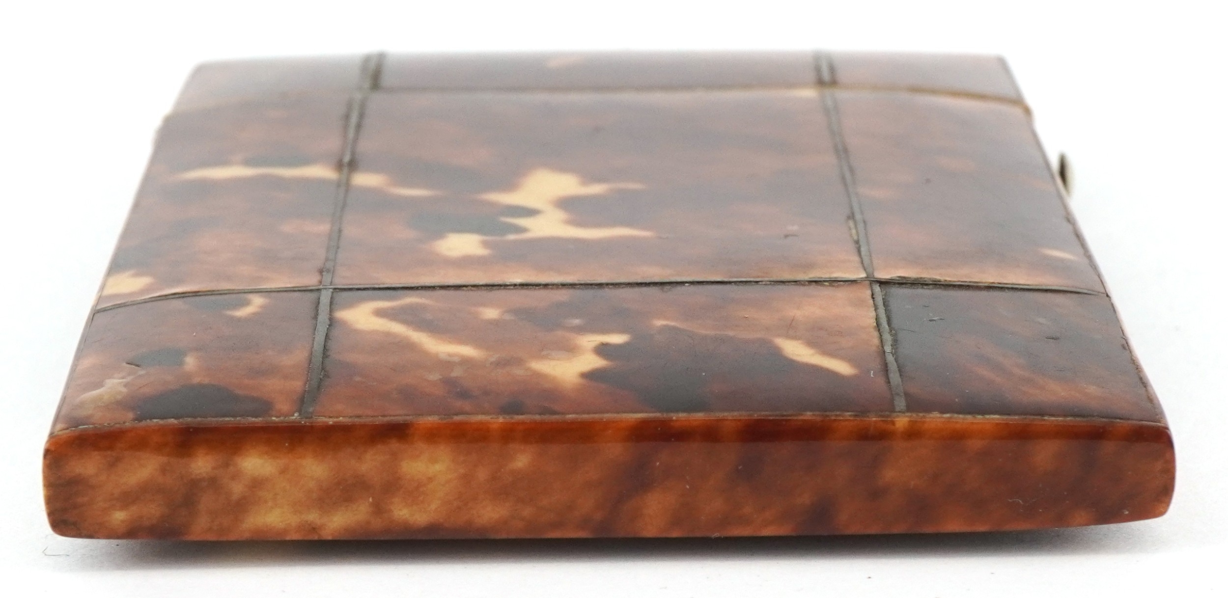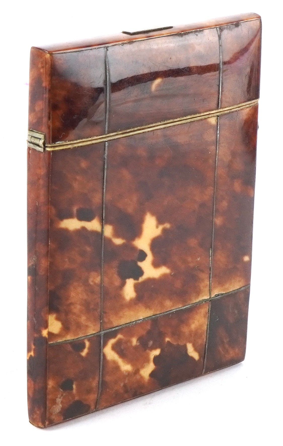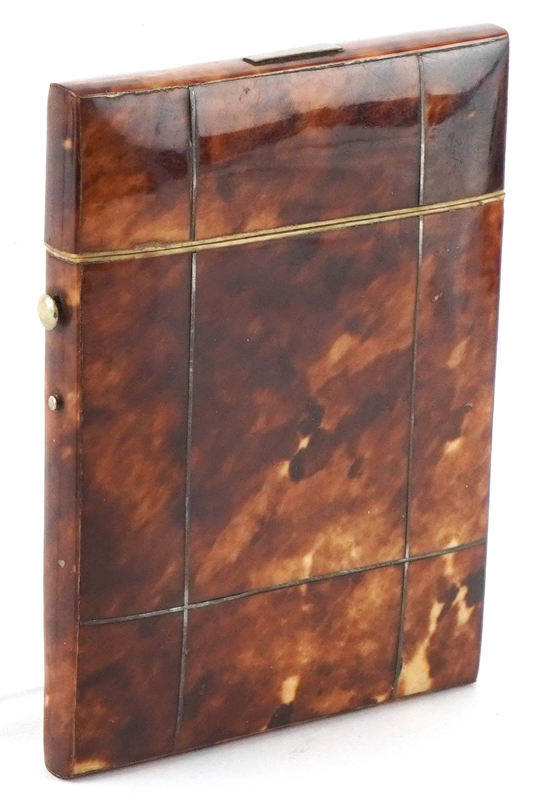 A Victorian tortoiseshell card case, 11cm x 8cm.