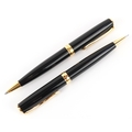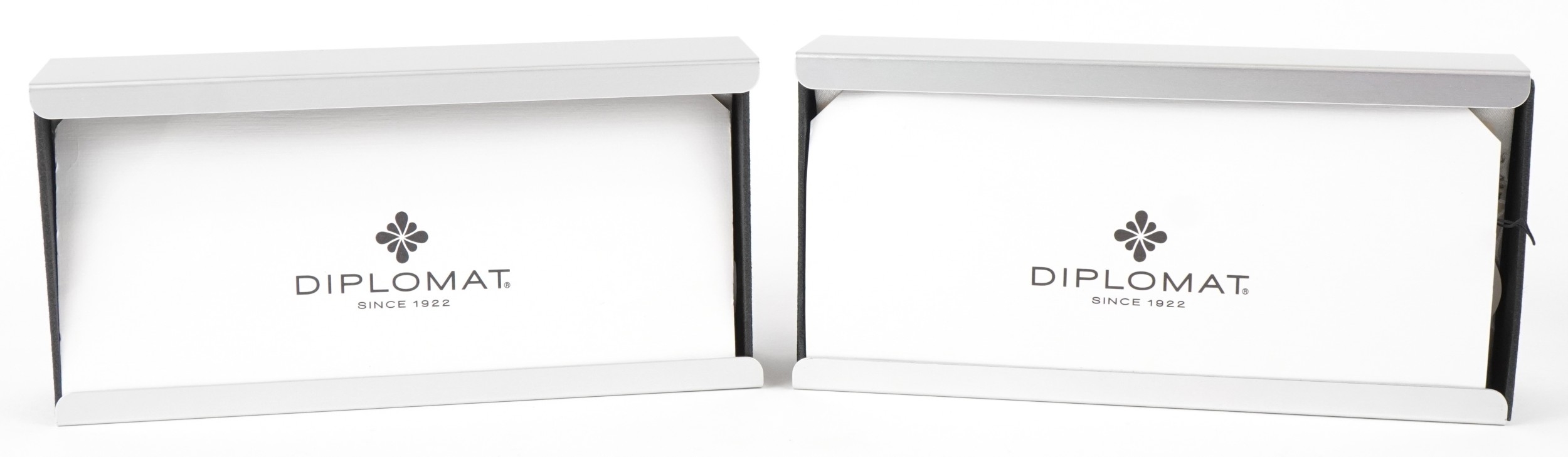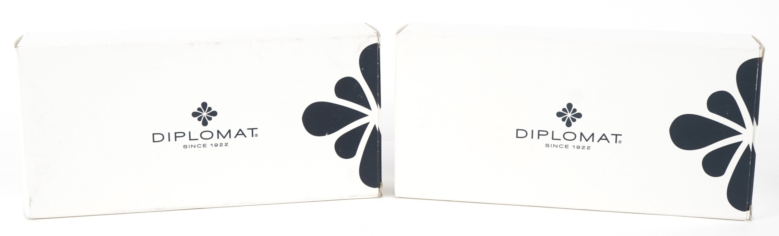 Two Diplomat ballpoint pens with boxes and paperwork.