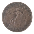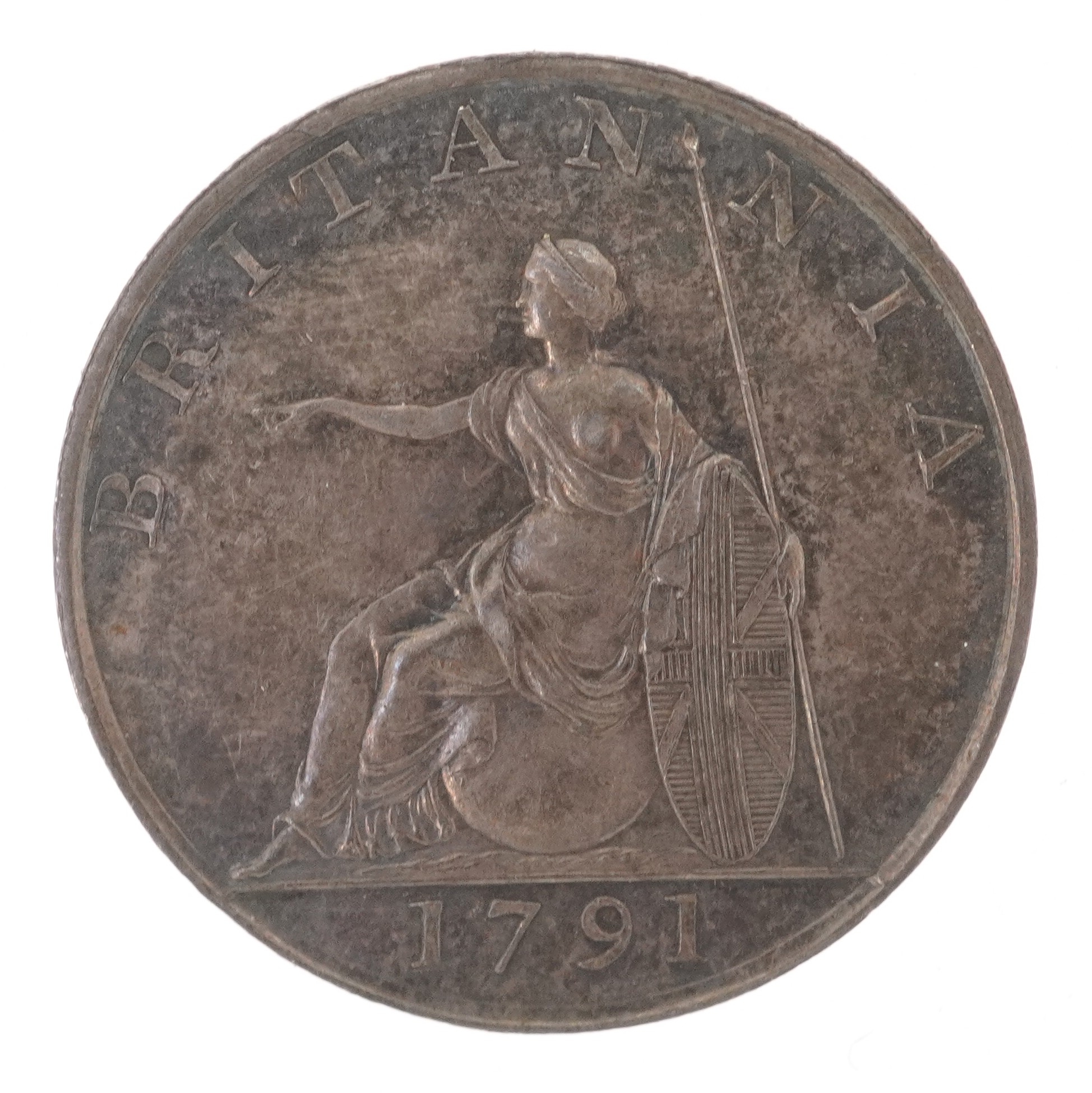 A 1791 King George III Britannia pattern sixpence, the obver...