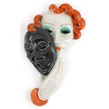 An Art Deco terracotta 'tragedy' wall mask of a female behin...