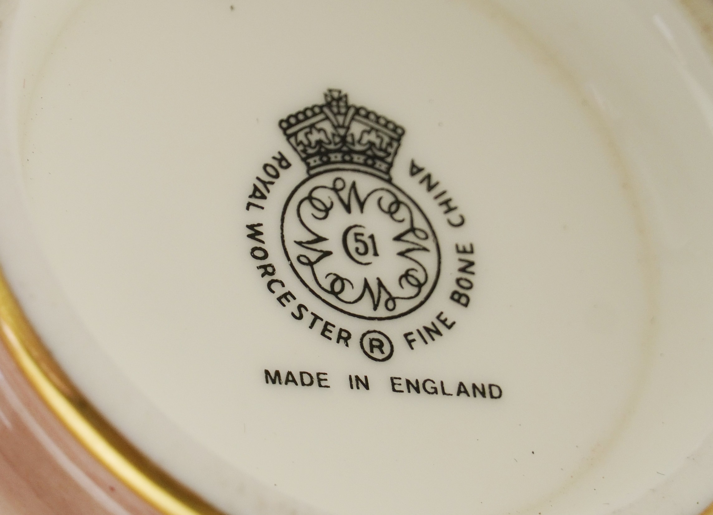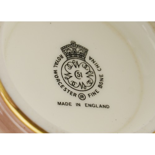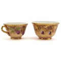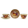 Royal Worcester porcelain comprising a teacup, two saucers a...