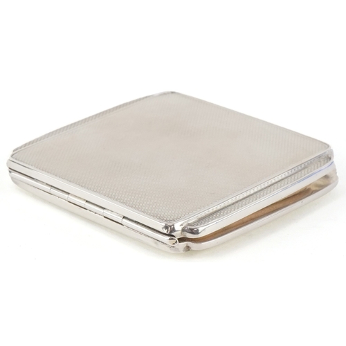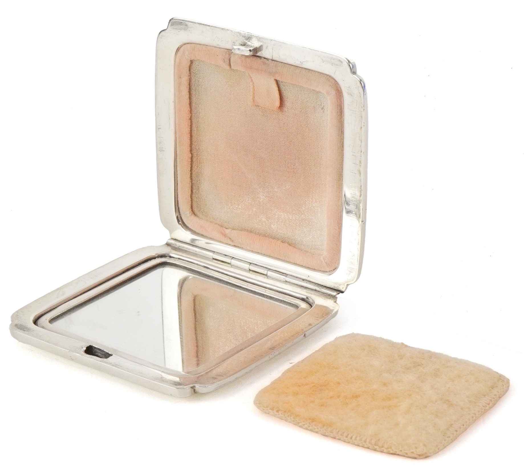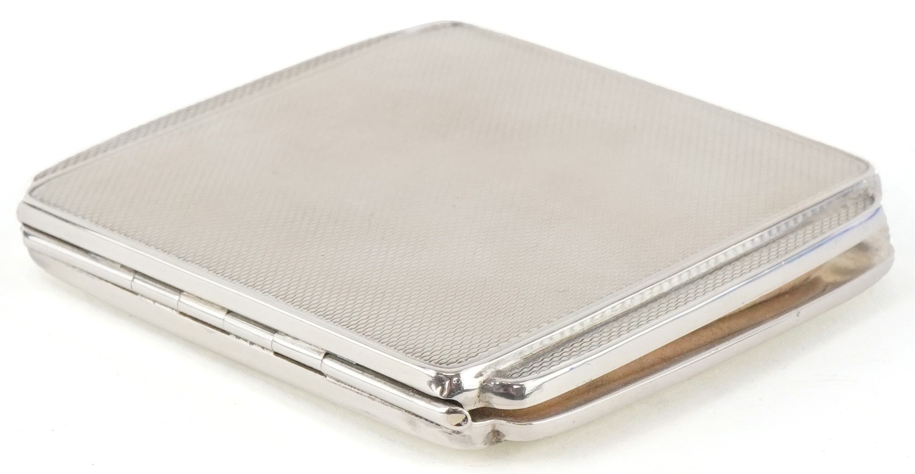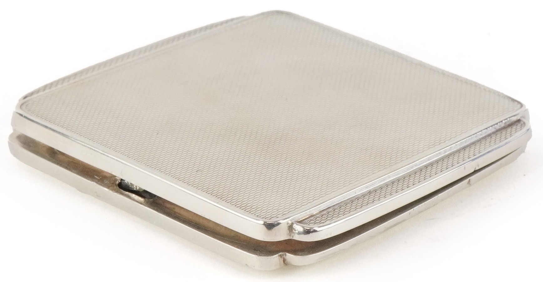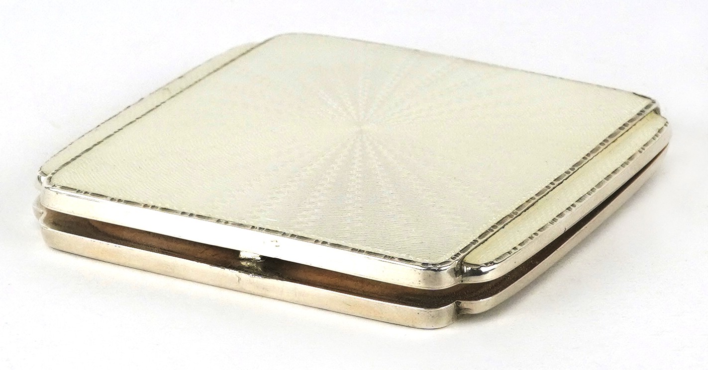 Charles Packer & Co., an Art Deco and guilloche enamel silver engine turned compact, Birmingham 1936, 7cm x 7cm, 99.0g.