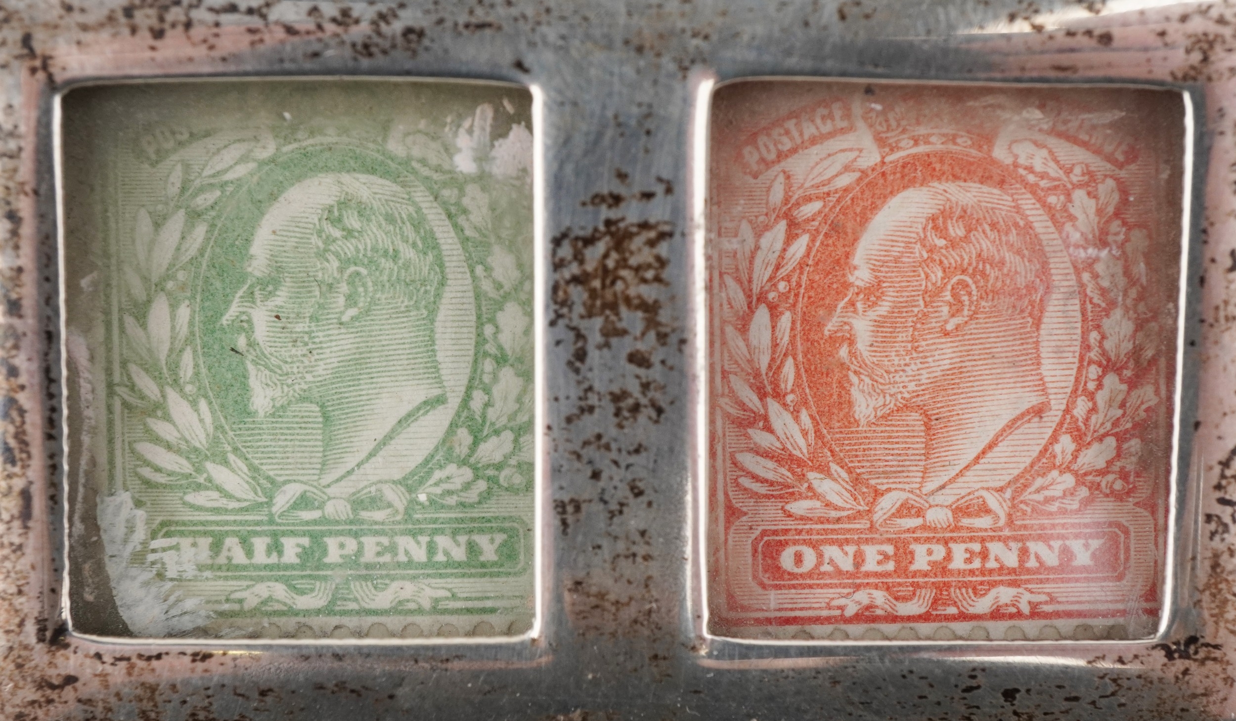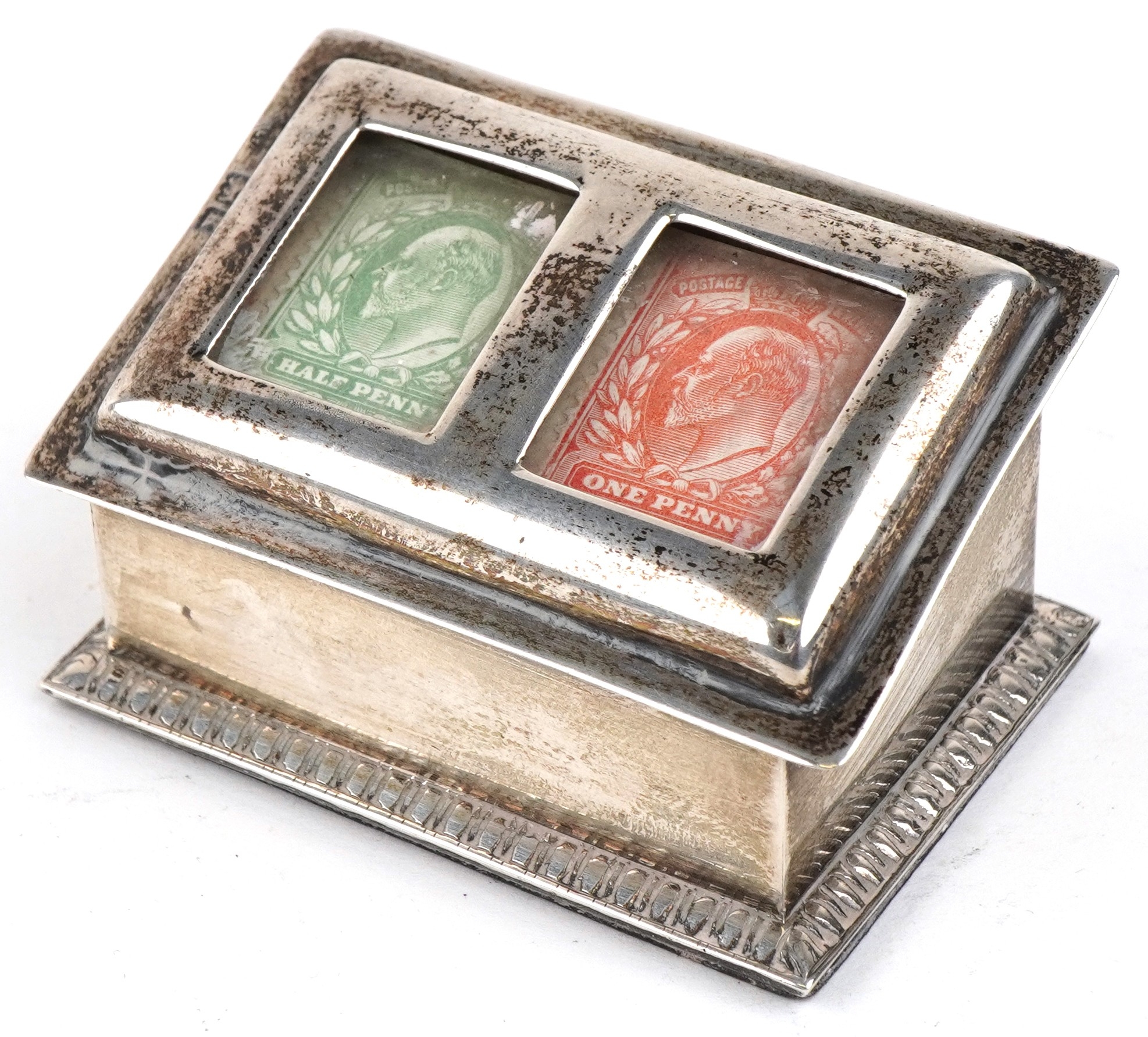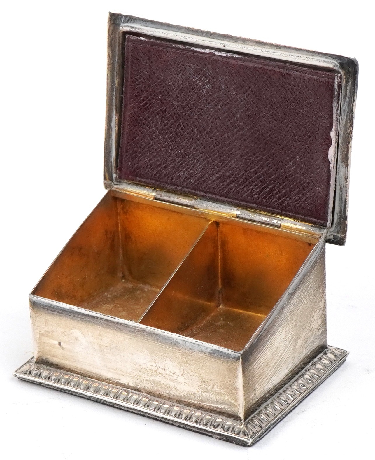 An Edwardian silver double stamp box with gilt interior, ind...
