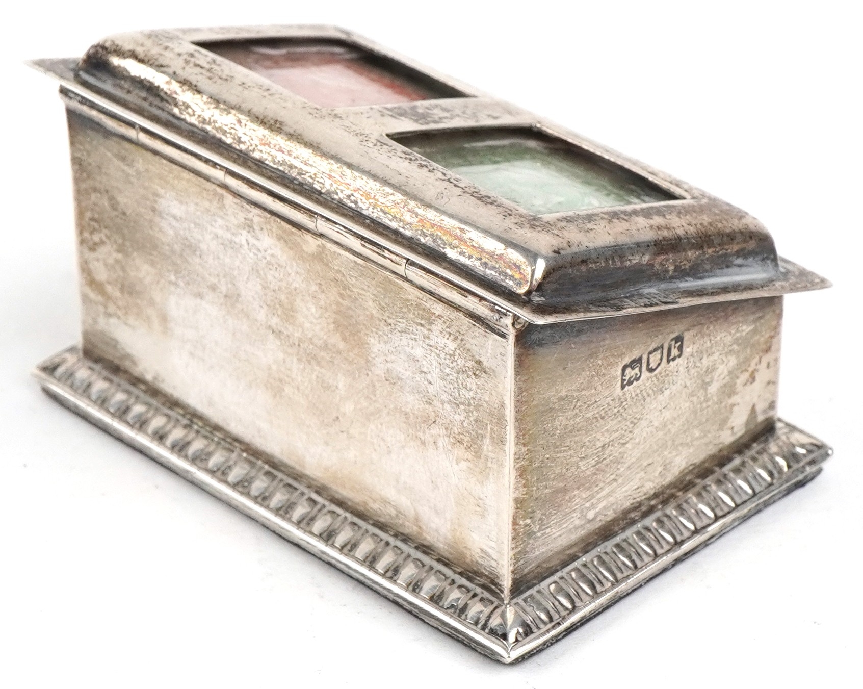An Edwardian silver double stamp box with gilt interior, indistinct maker's mark, London 1905, 6.2cm wide, 94.5g.