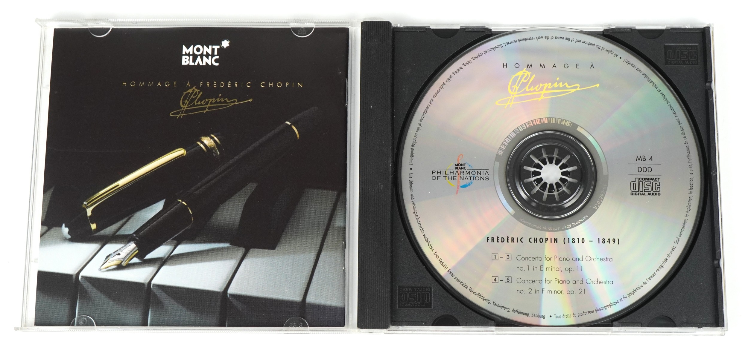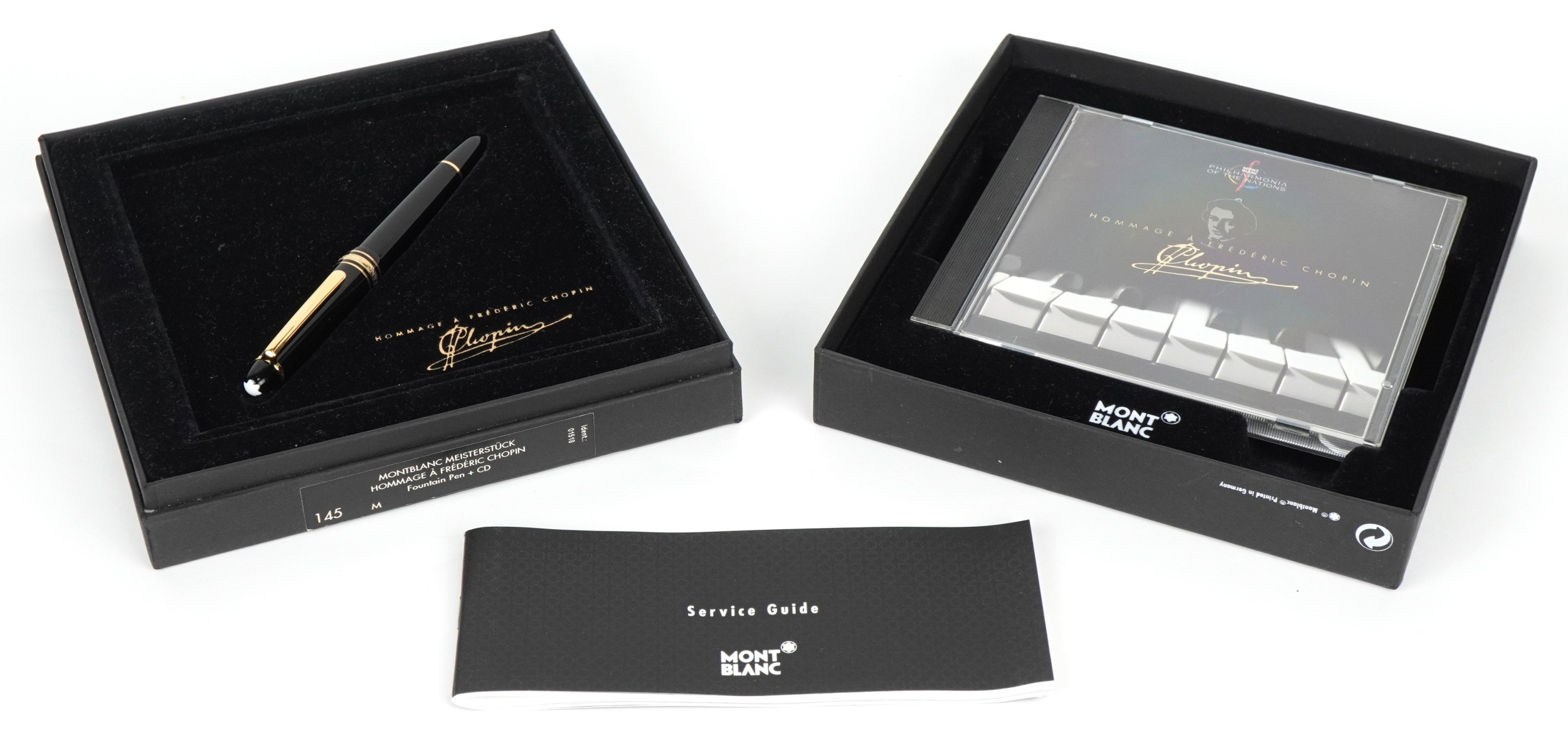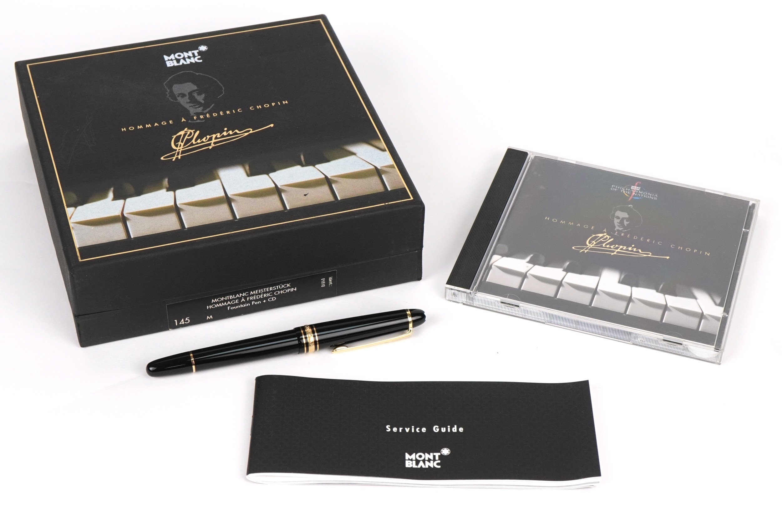 Montblanc Meisterstück, Homage á Frédéric Chopin, a 14ct gold nibbed fountain pen together with a CD, boxed, 17cm wide.