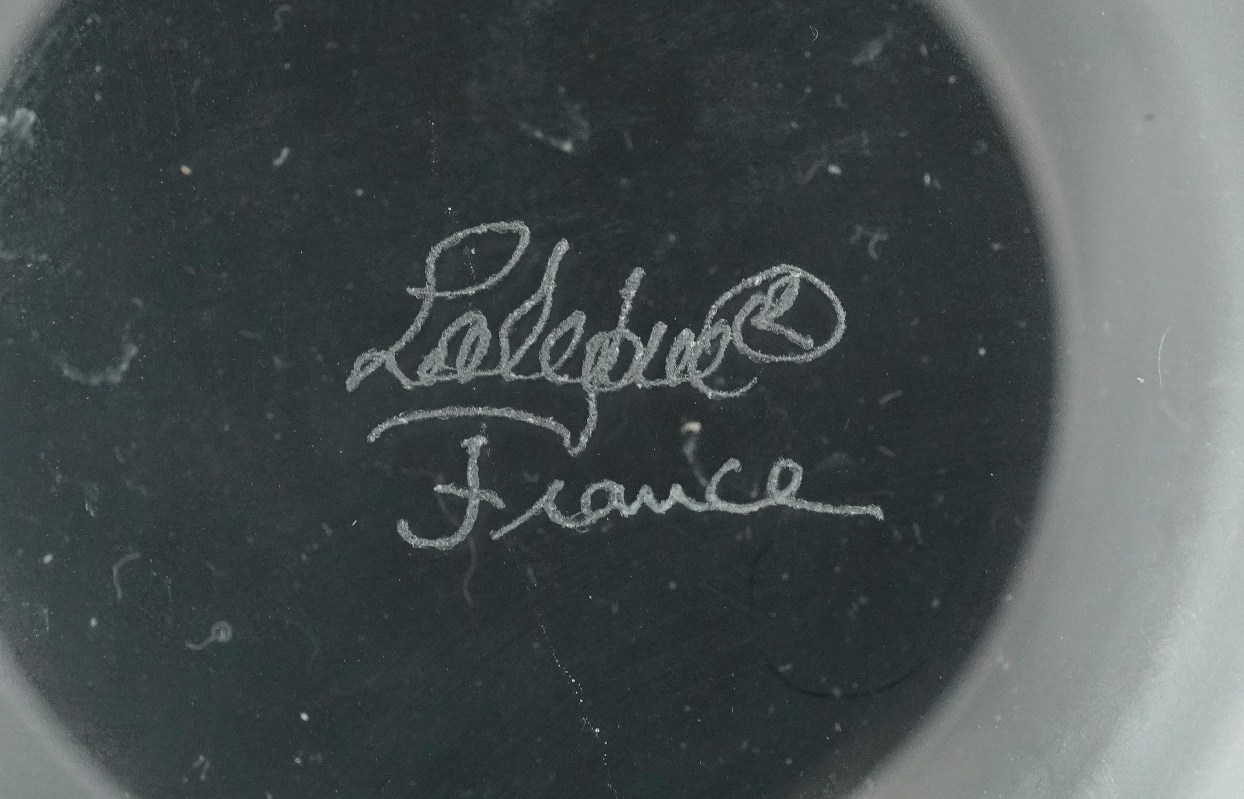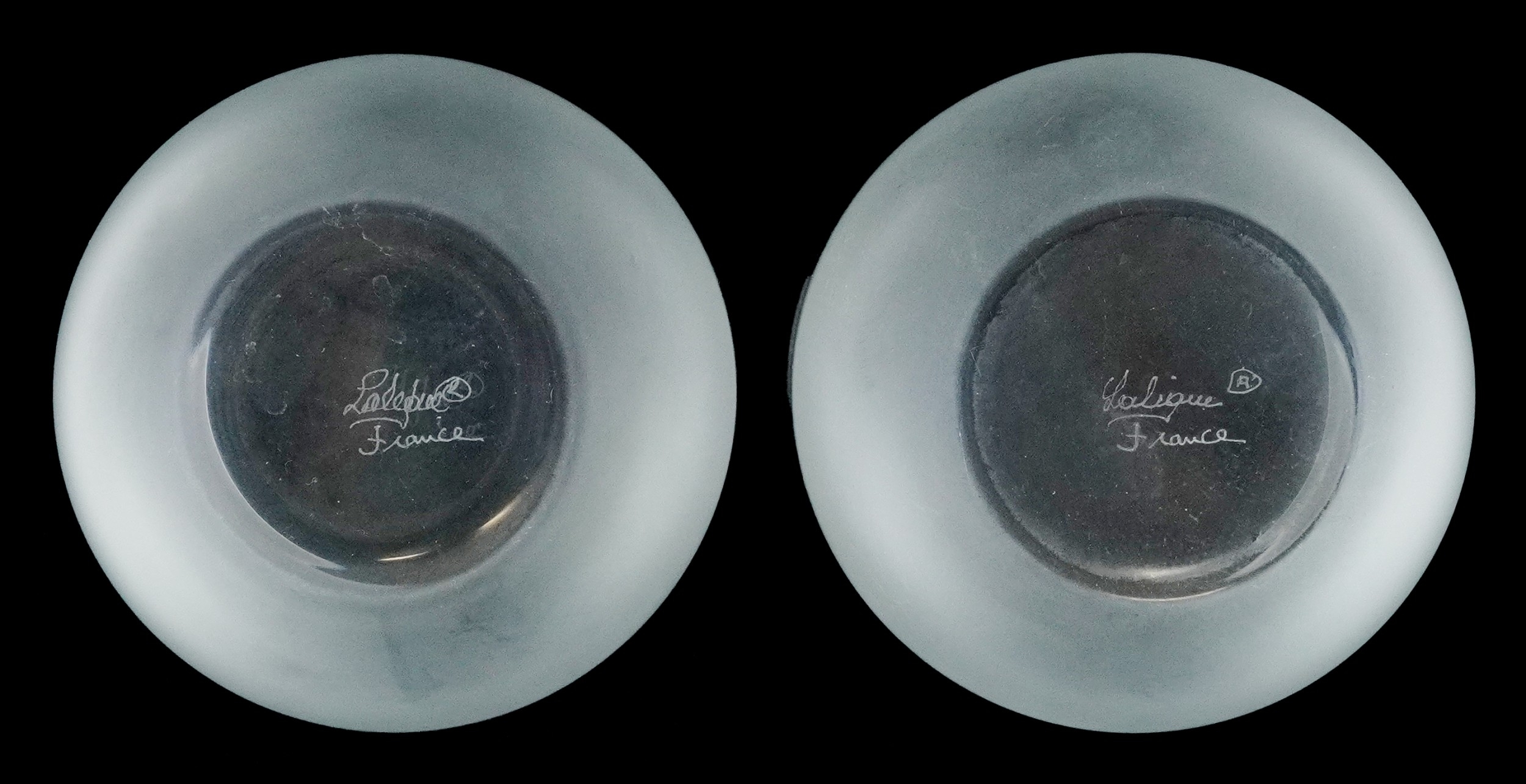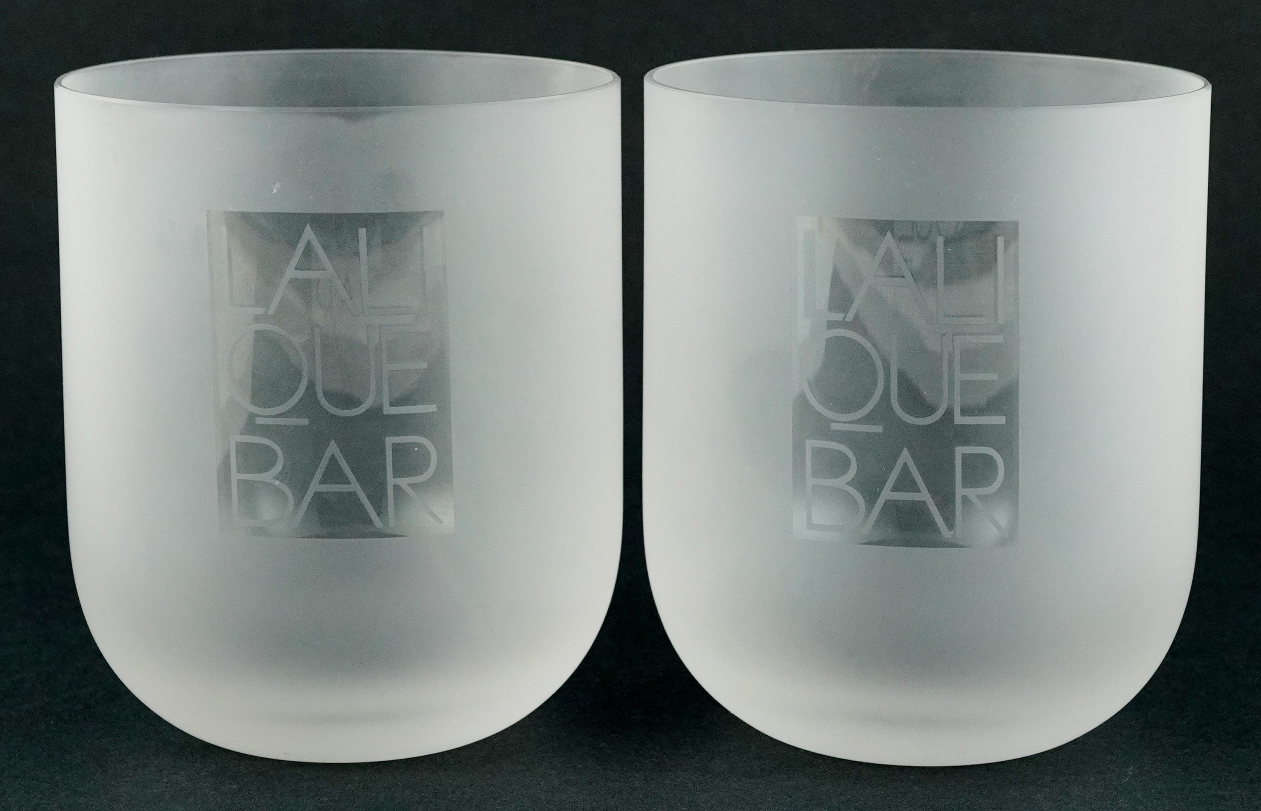 Lalique, a pair of frosted glass bar tumblers, each etched L...