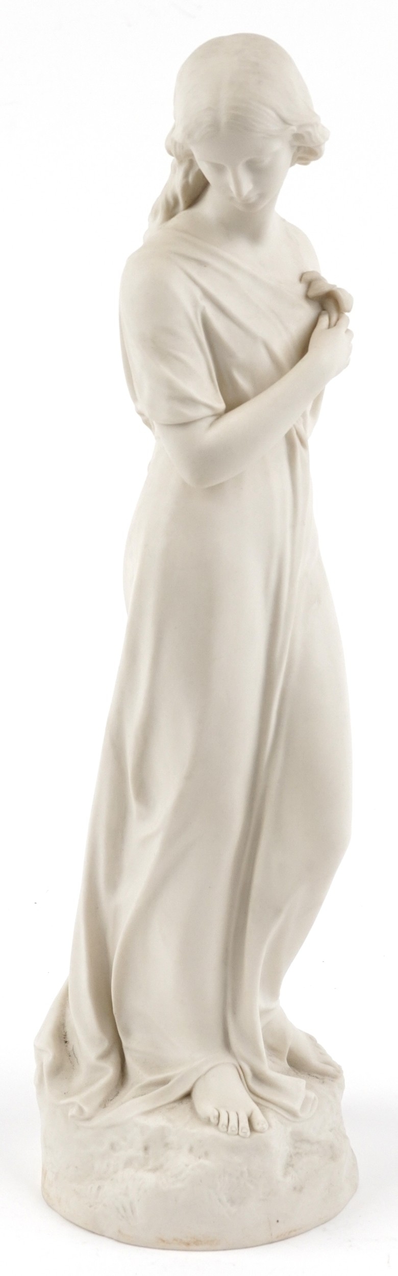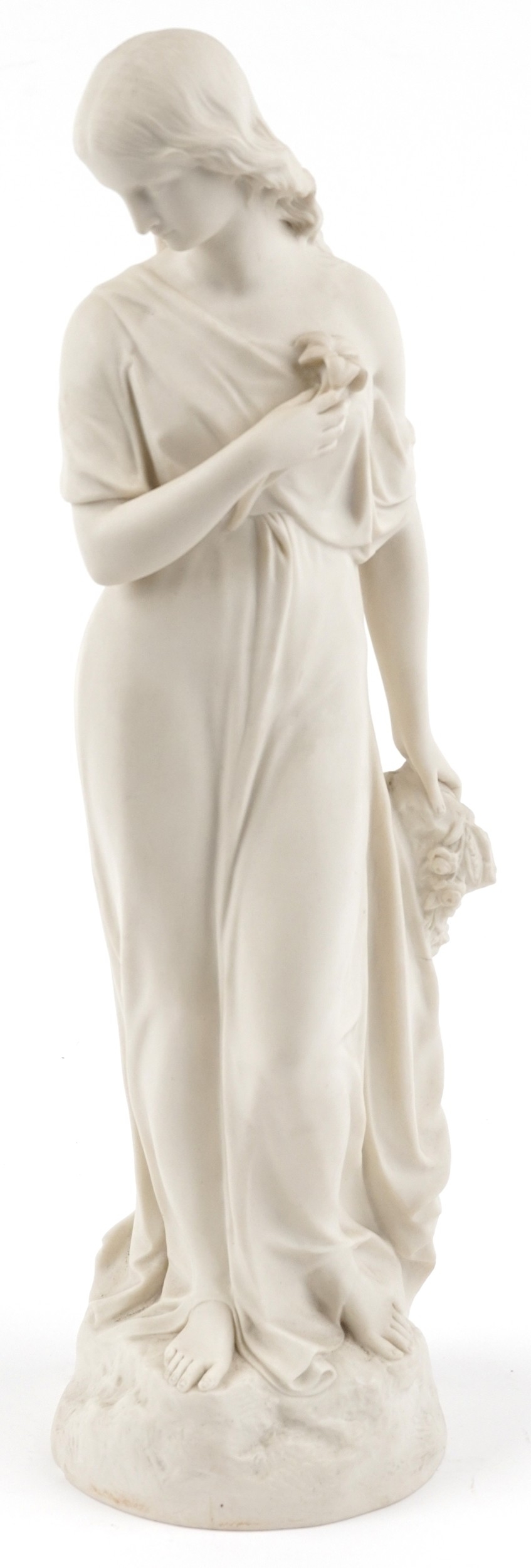 A Victorian Copeland parian style study of a maiden, impressed Crystal Palace Art Union PUBD 1865, 45cm high.