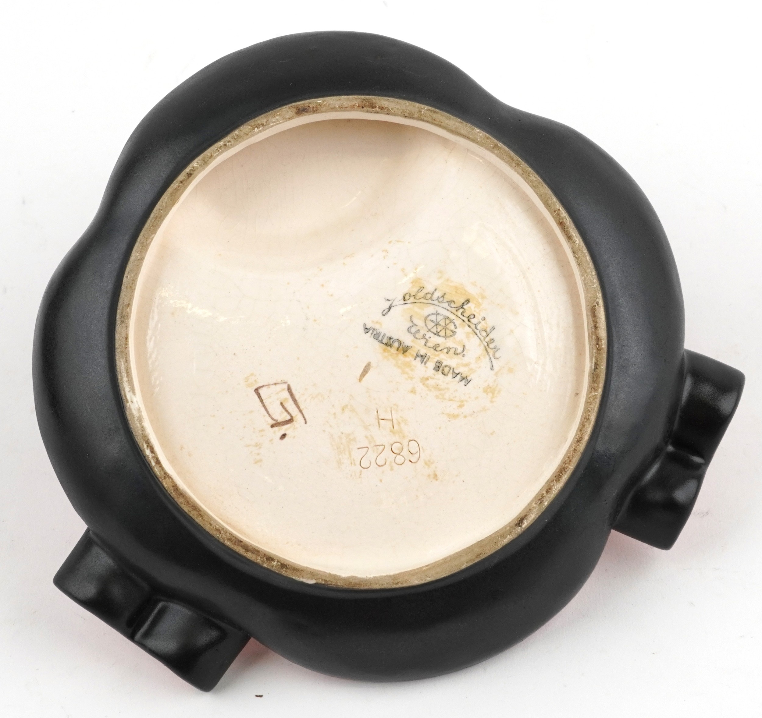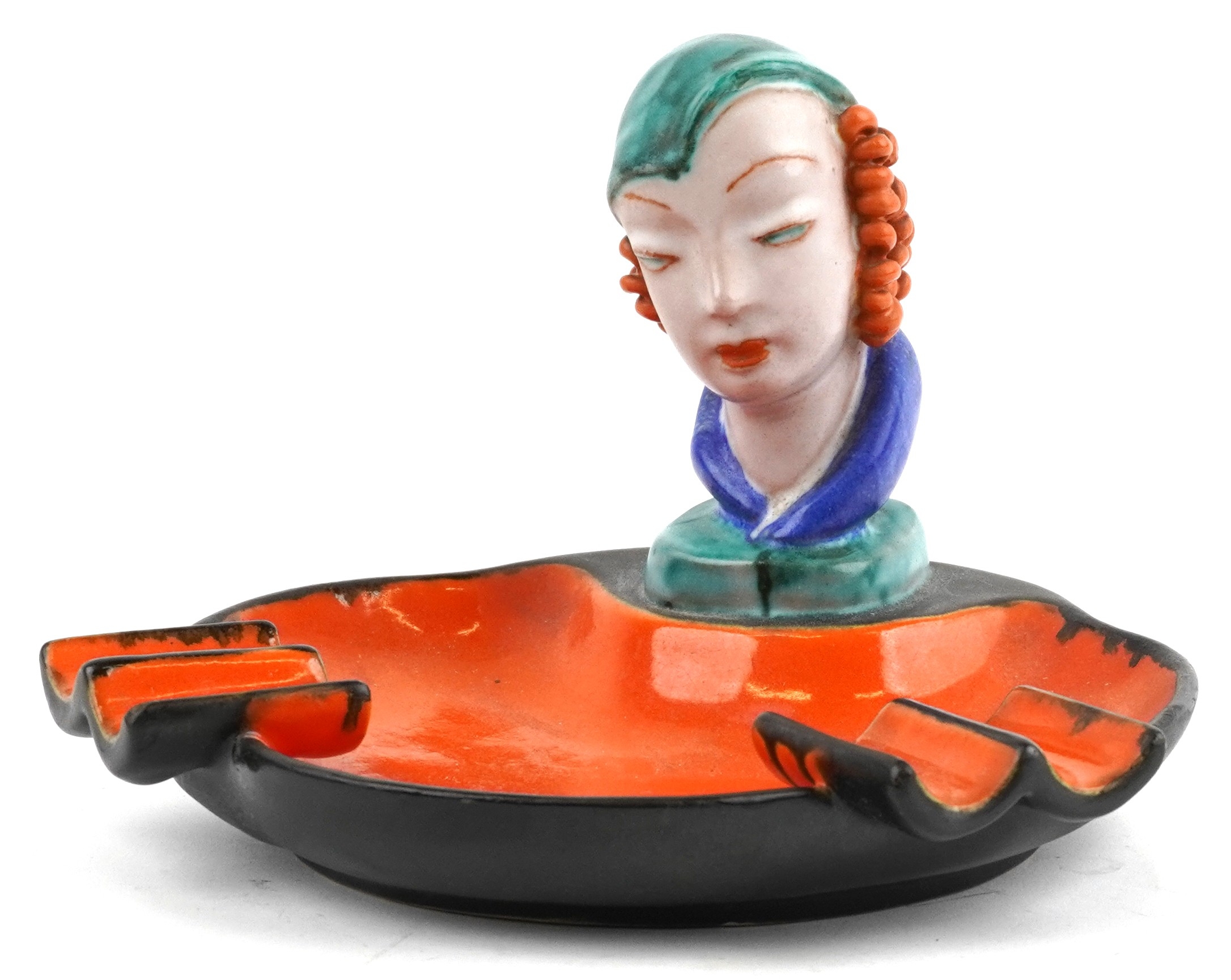 A Goldscheider Art Deco pottery ashtray mounted with a female bust, 13cm high.
