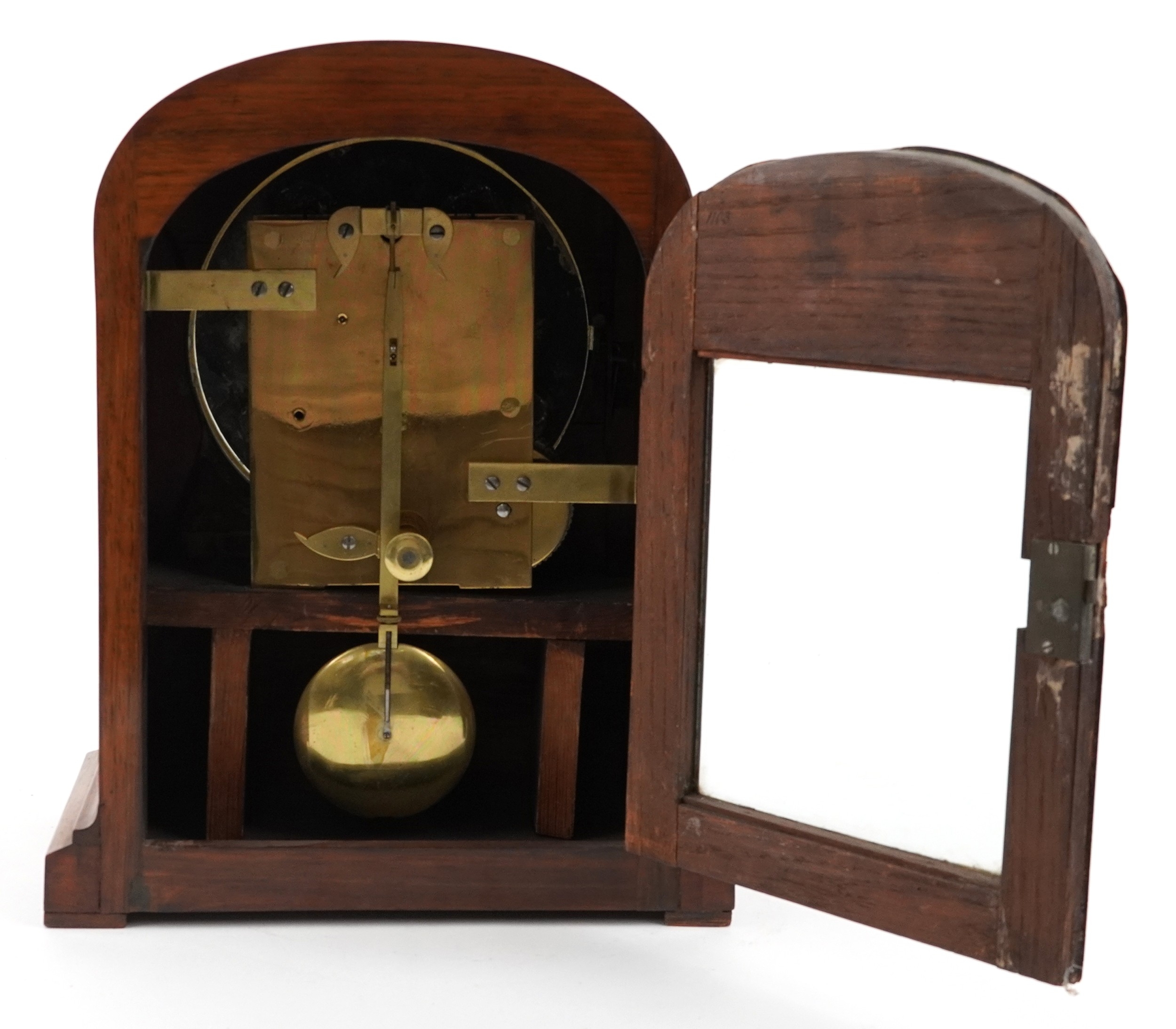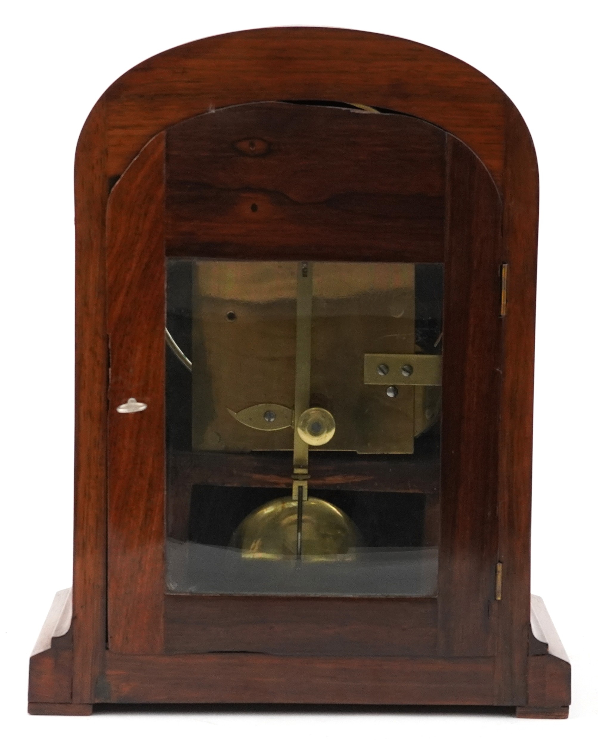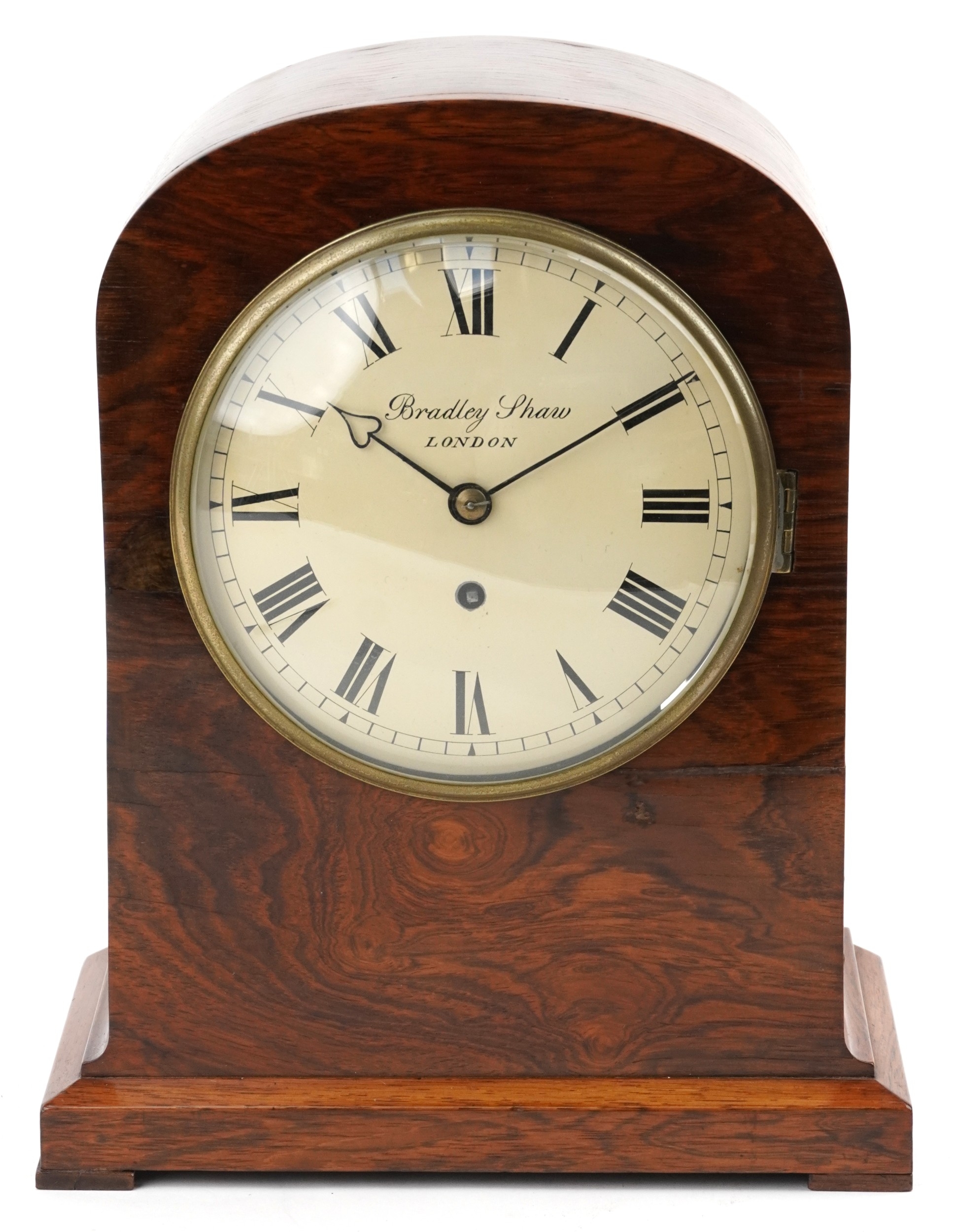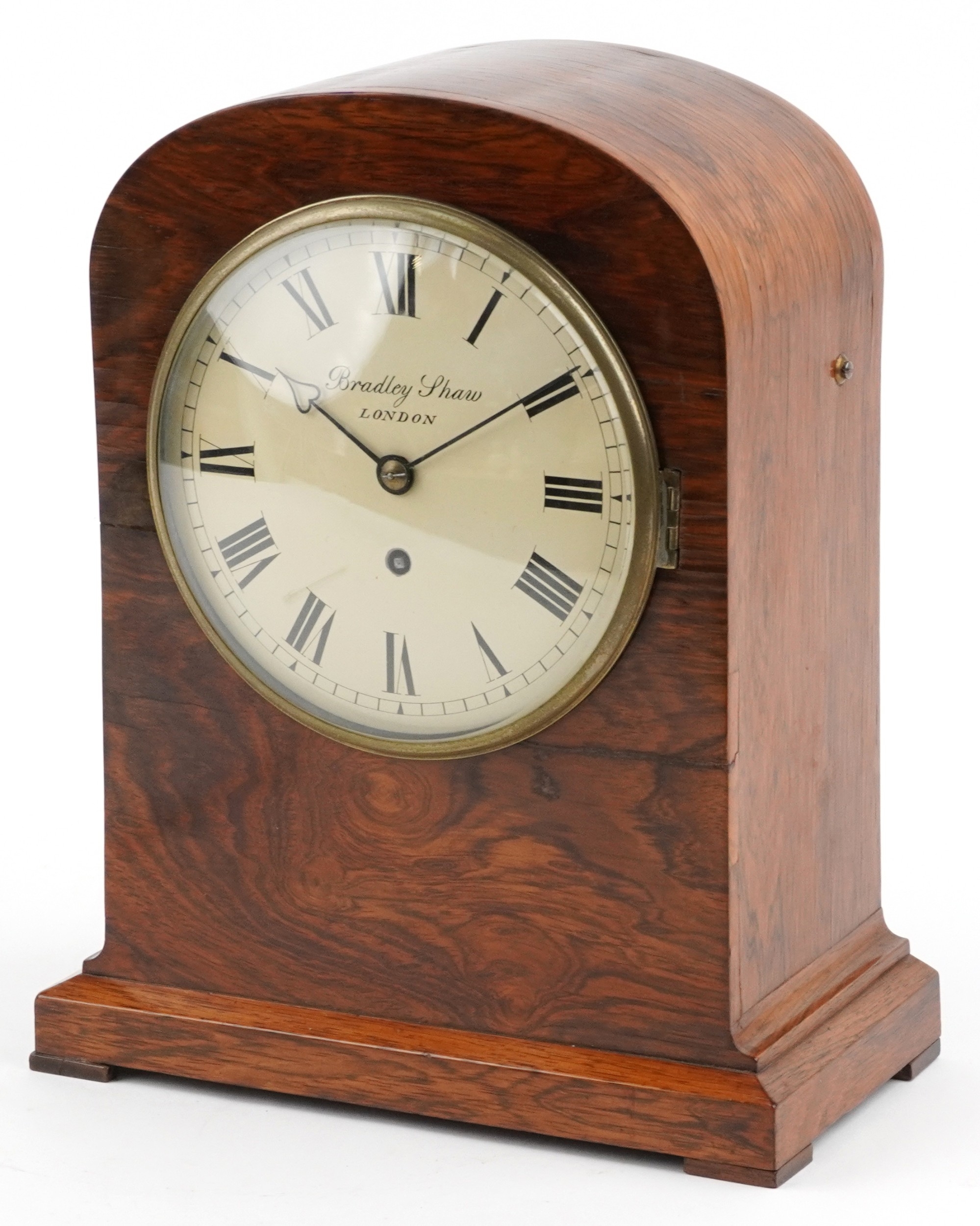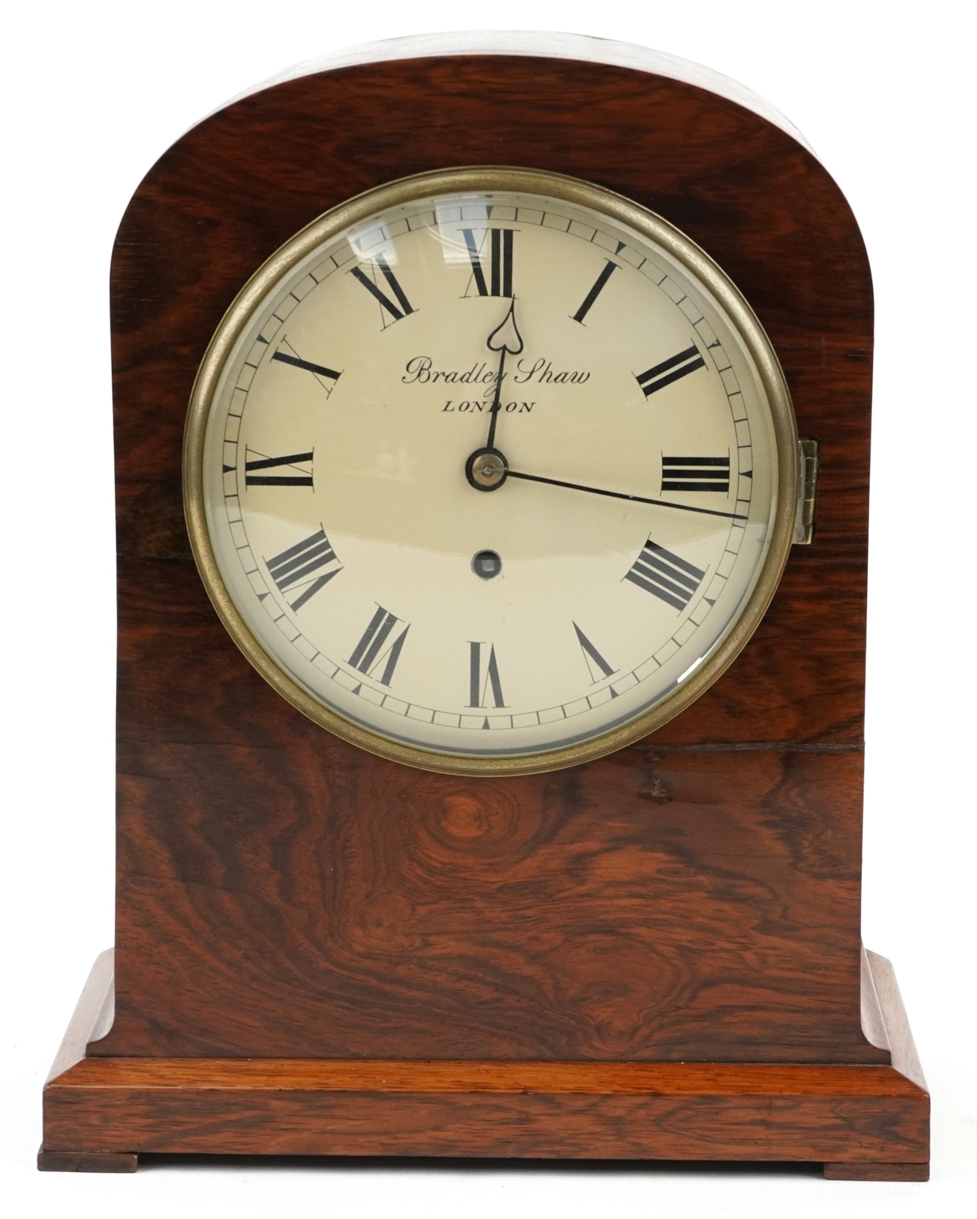 A mid Victorian walnut cased dome top mantle clock having dial inscribed Bradley Shaw London, 35cm high.