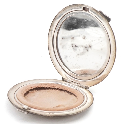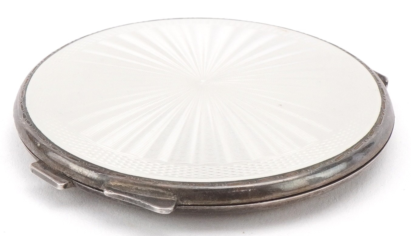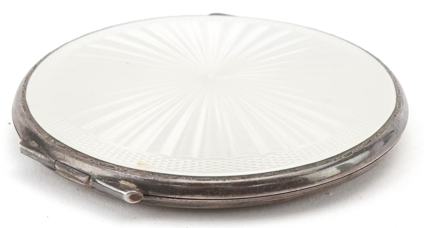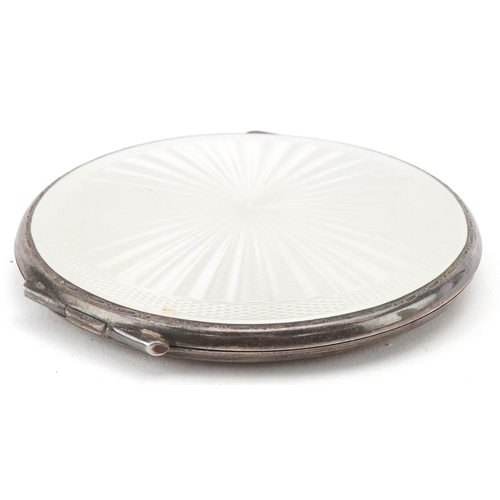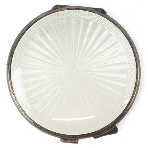 Turner & Simpson, a mid century silver and guilloche enamel compact, Birmingham 1953, 7.5cm in diameter, 89.2g.