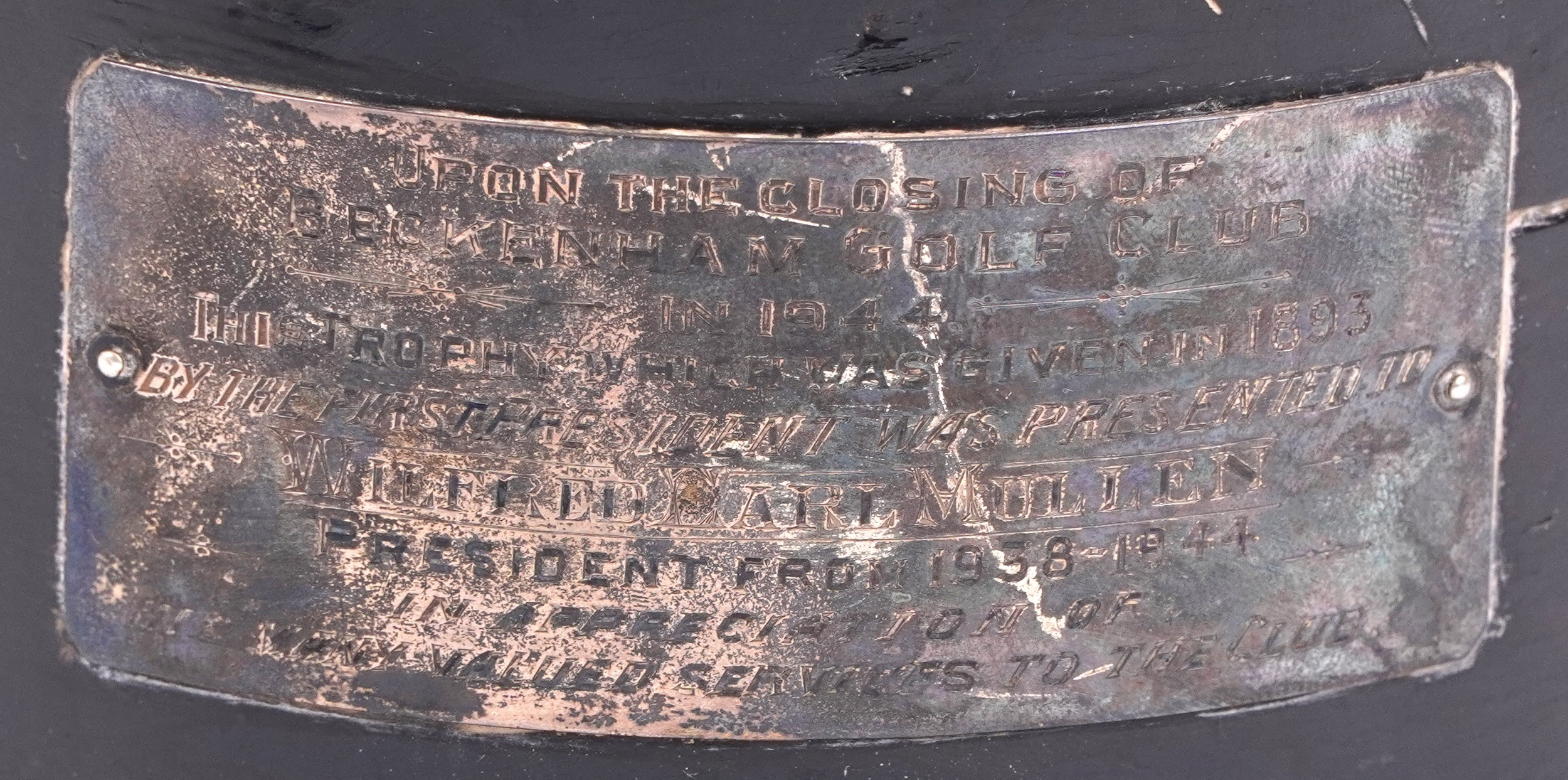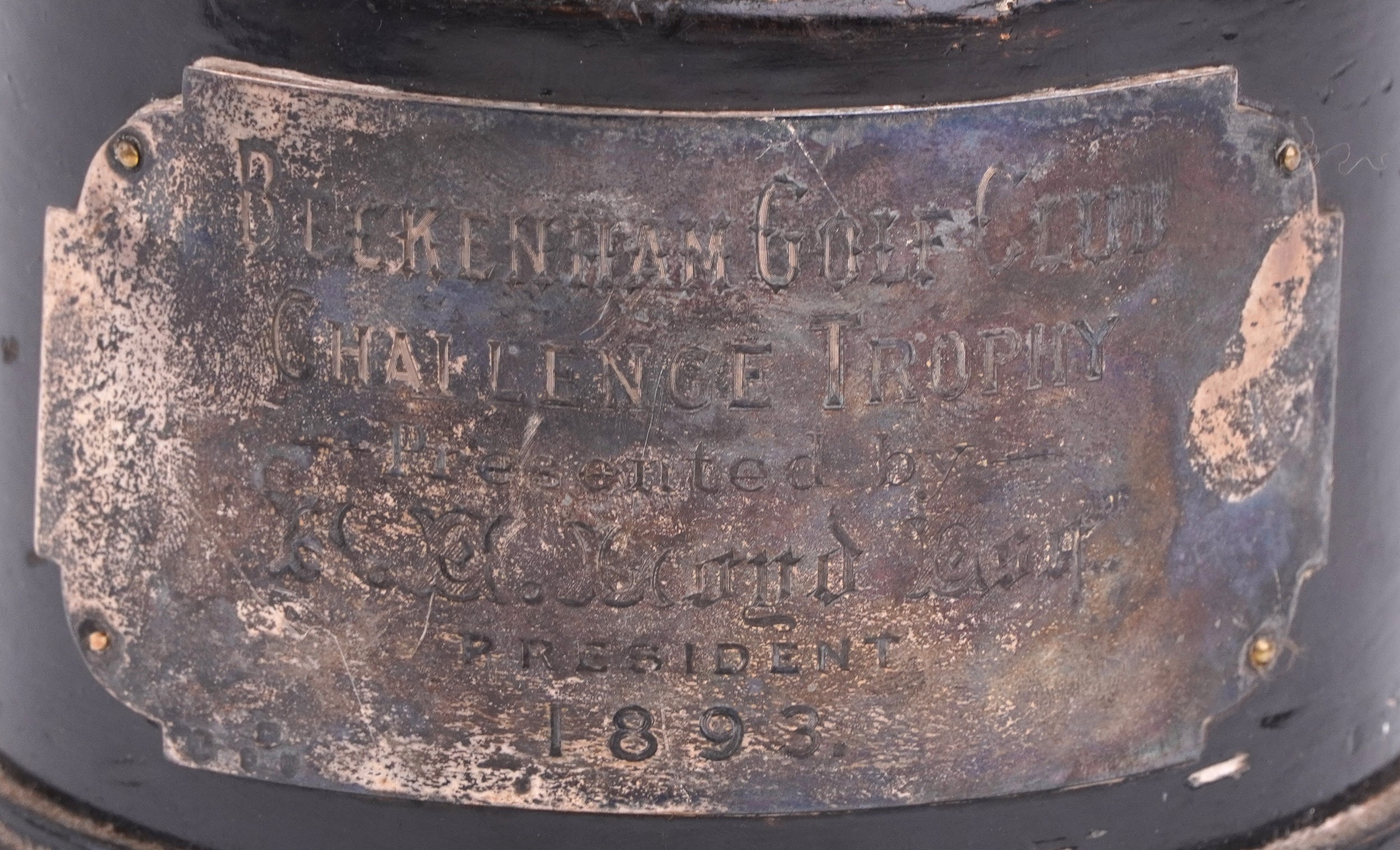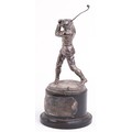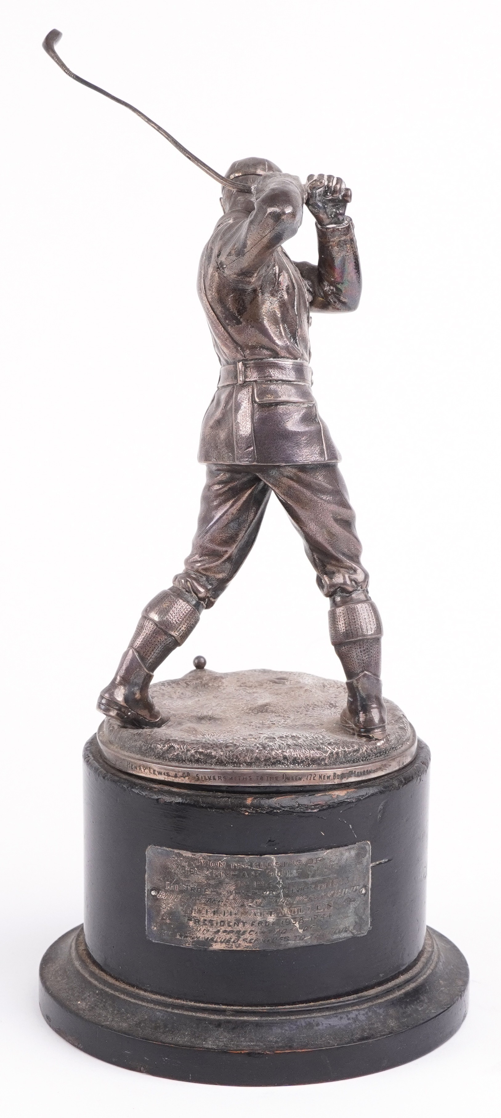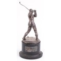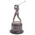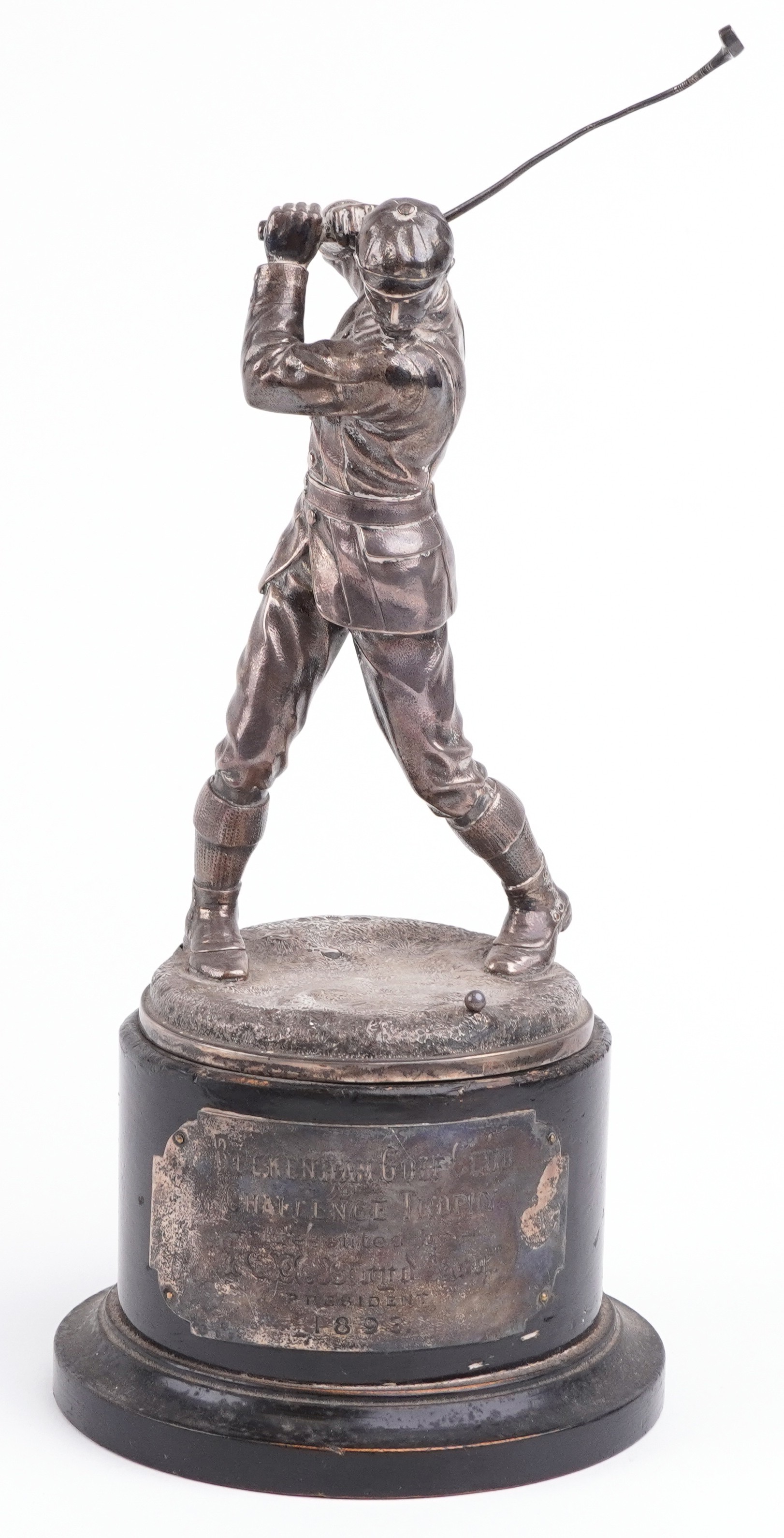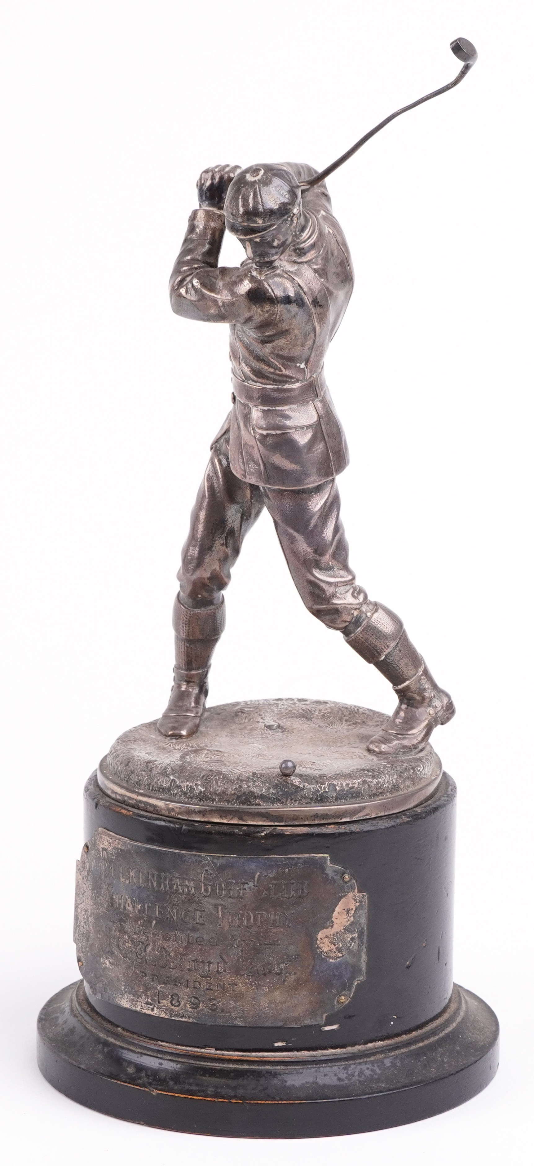 A good Victorian silver figural trophy in the form of a male golfer in mid swing, raised on an ebonised base with presentation plaque From Beckenham Golf Club and indistinct inscriptions including Upon the Closing of Beckenham Golf Club 1914, the figure dated 1893, overall 35cm high, weighable silver 640.0g.