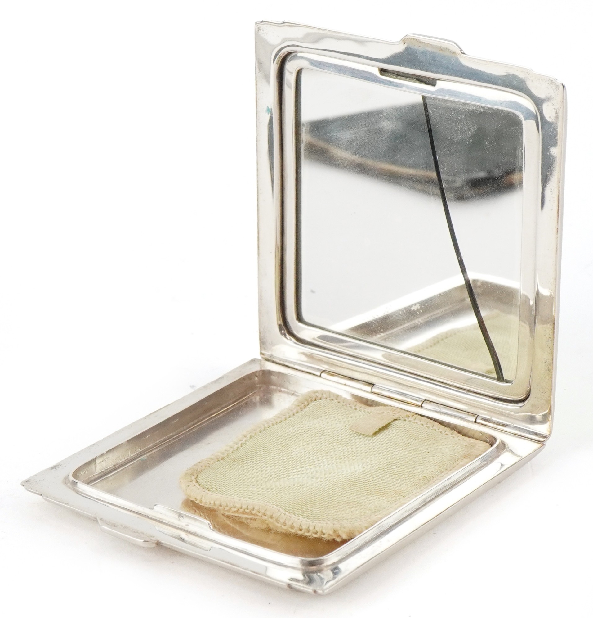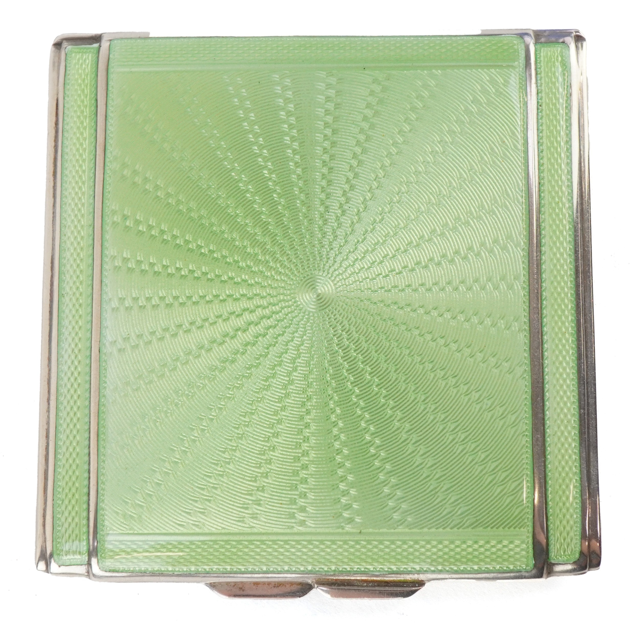 Adie Brothers, an Art Deco silver and guilloche enamel compact, Birmingham 1936, 7.5cm x 7cm, 110.2g.