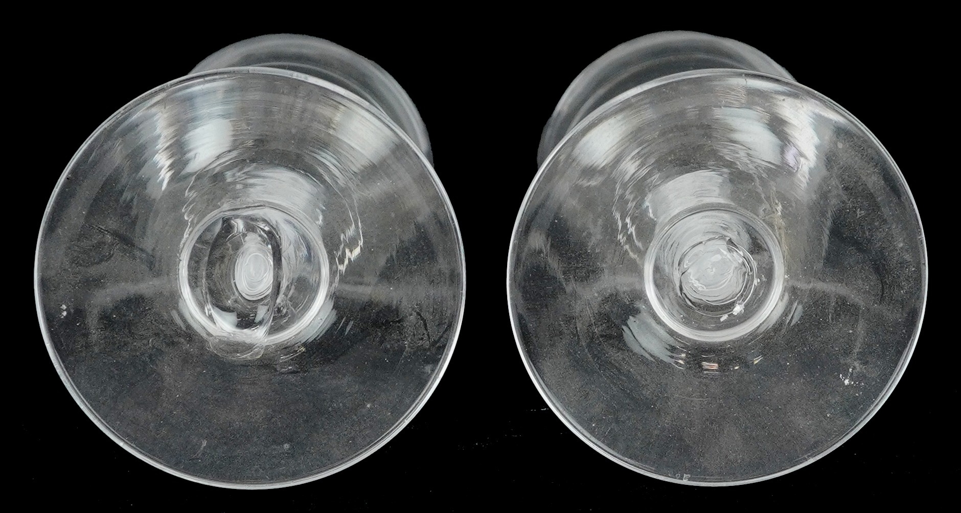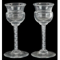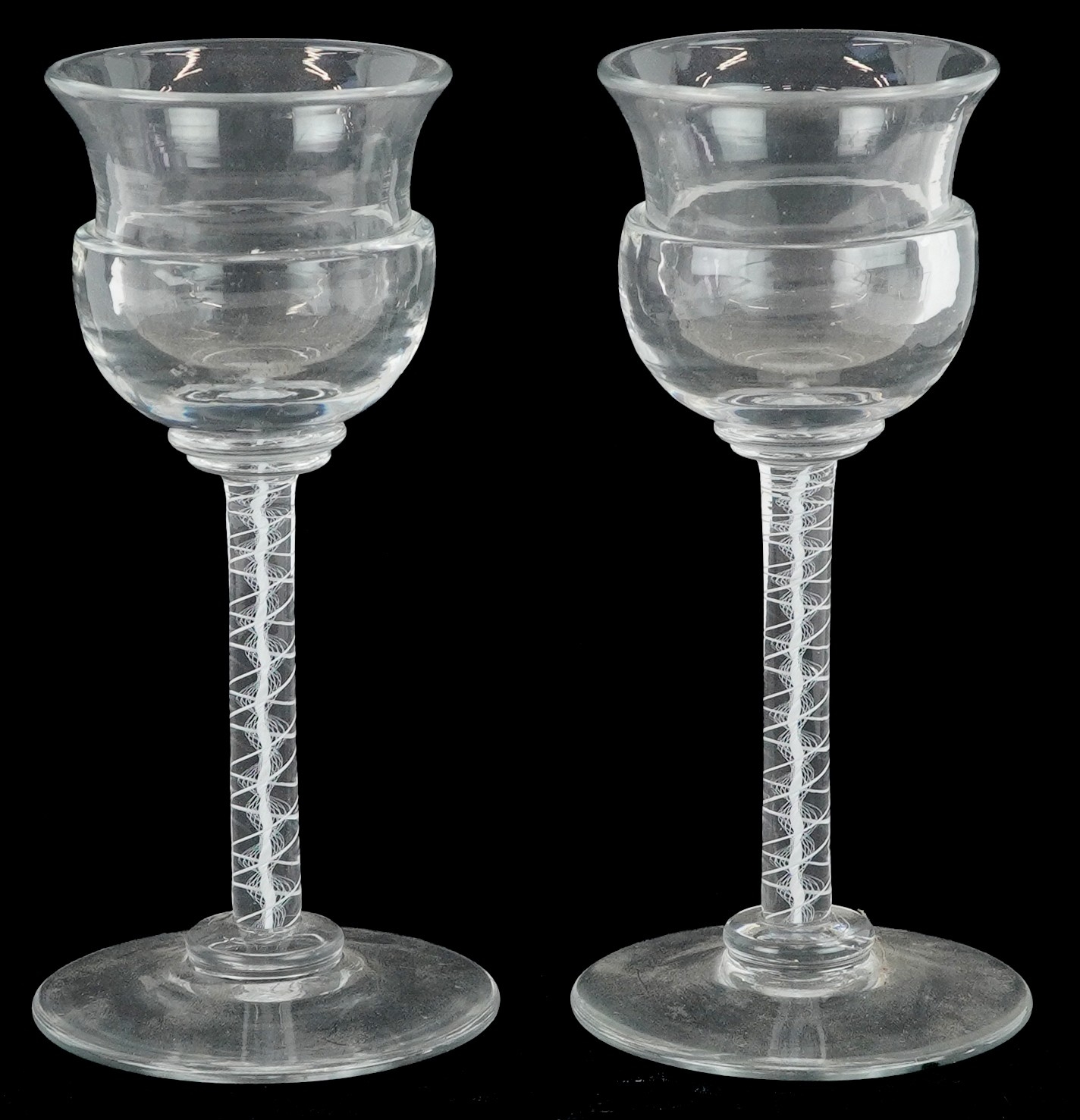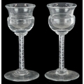 A near pair of 18th century air twist stem glasses, each 13....
