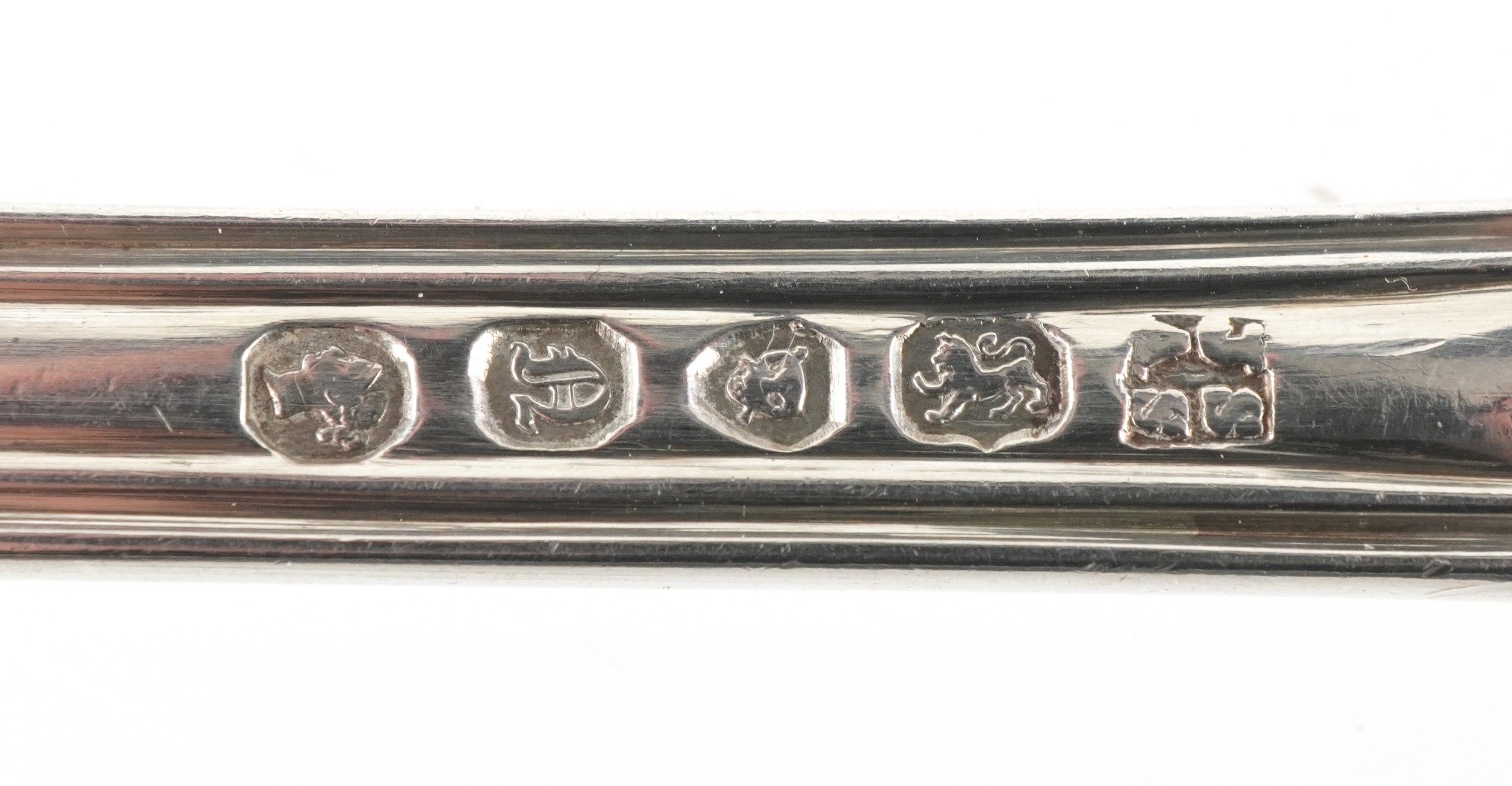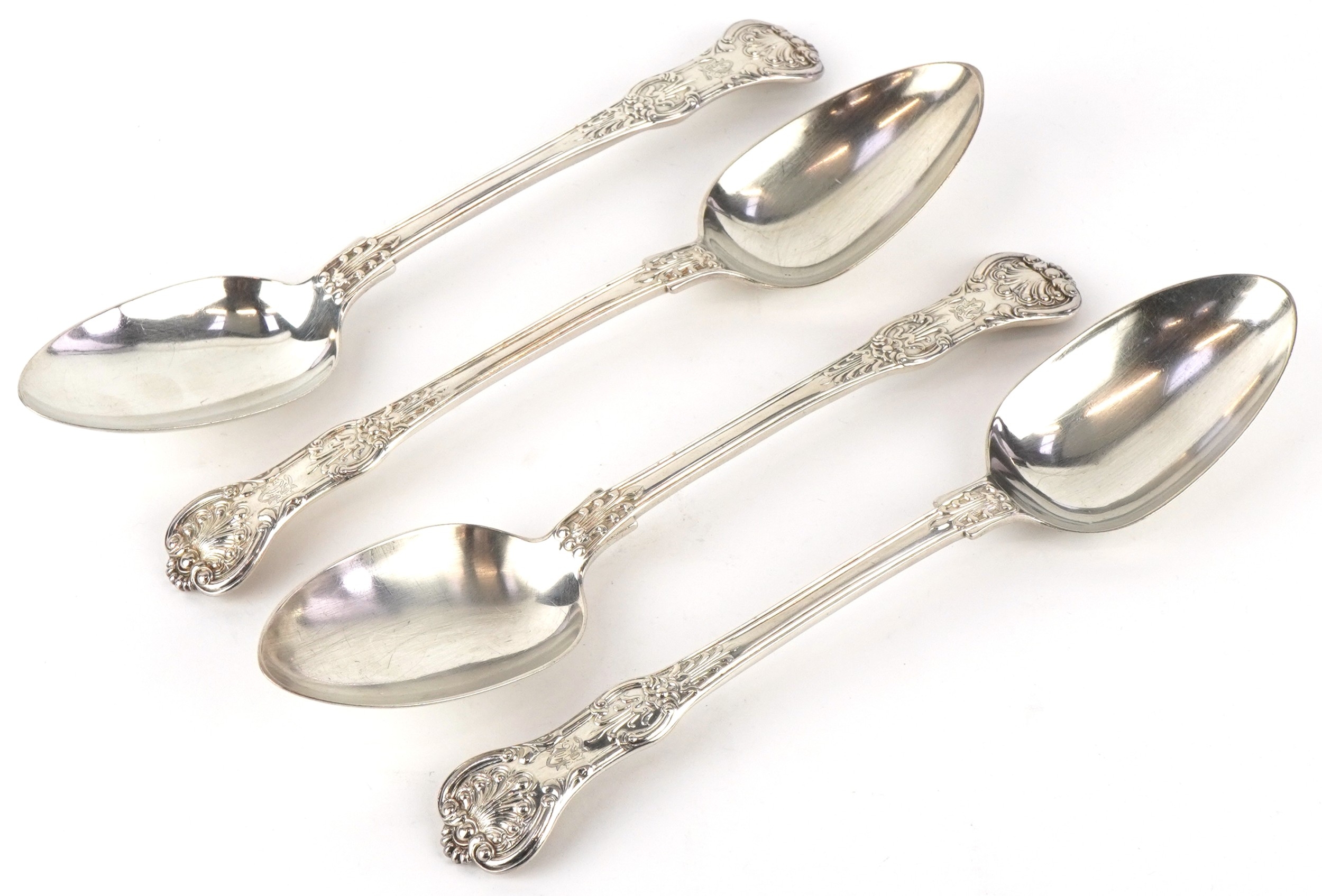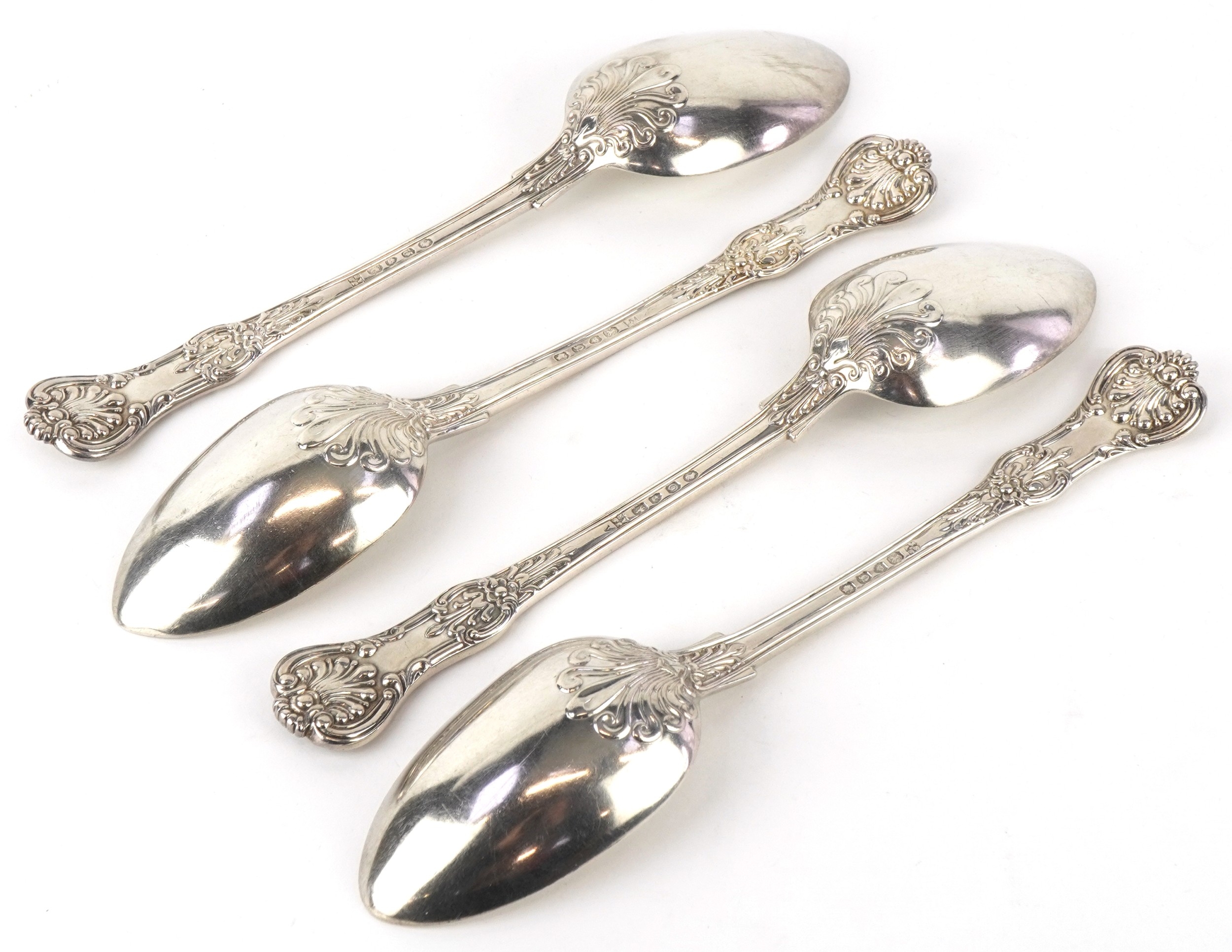 Joseph & Albert Savory, a set of four Victorian silver spoons, London 1848 - 1849, 22cm wide, total 402.0g.