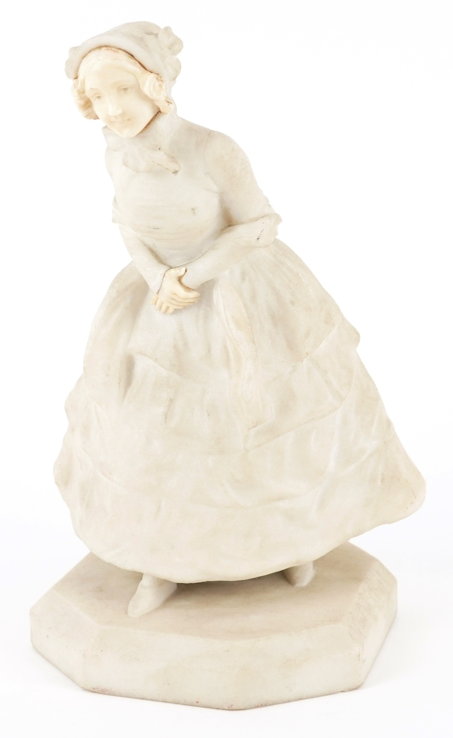 Georges van der Straeten, a Belgian marble sculpture of an elegant female, signed to the base, 22cm high.