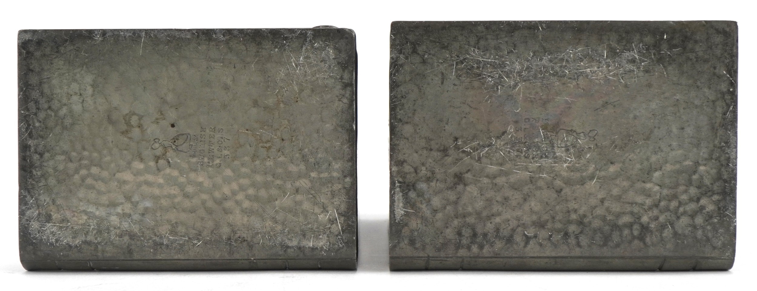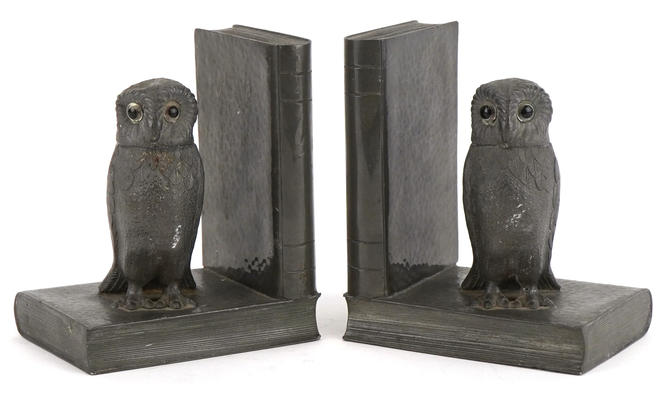 A pair of My Lady planished pewter owl design bookends, 13cm...