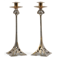 An Art Nouveau patinated bronze table lamp in the form of a ...