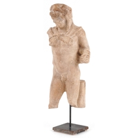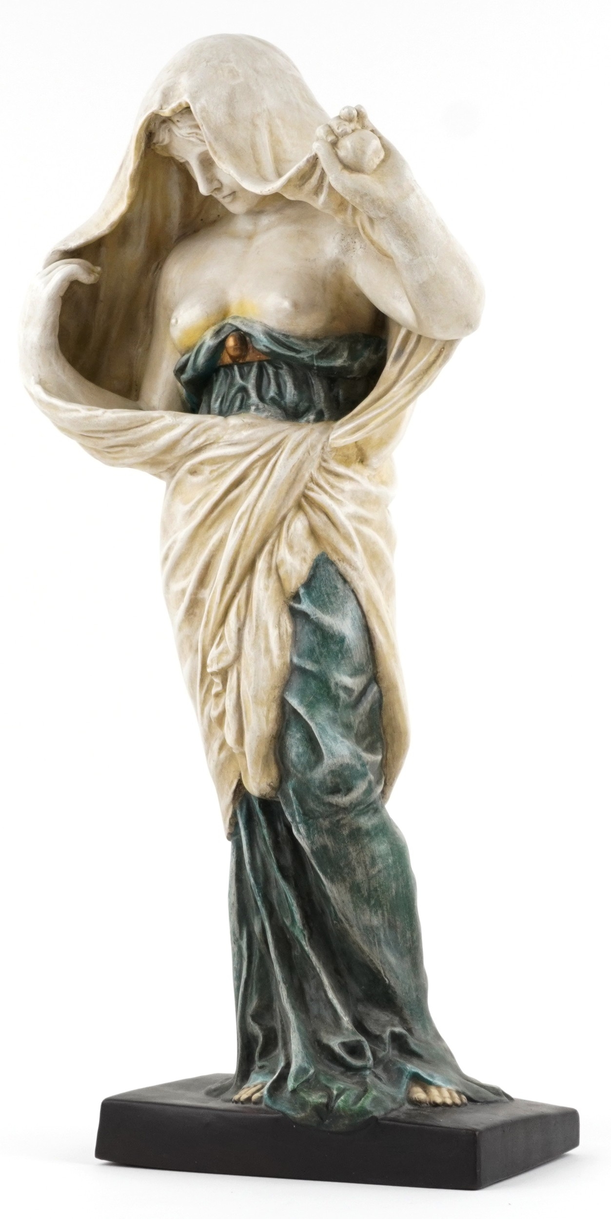 A large pottery figure of a semi nude maiden, 64cm high.