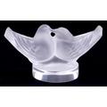 Lalique, a French frosted glass paperweight of lovebirds, et...
