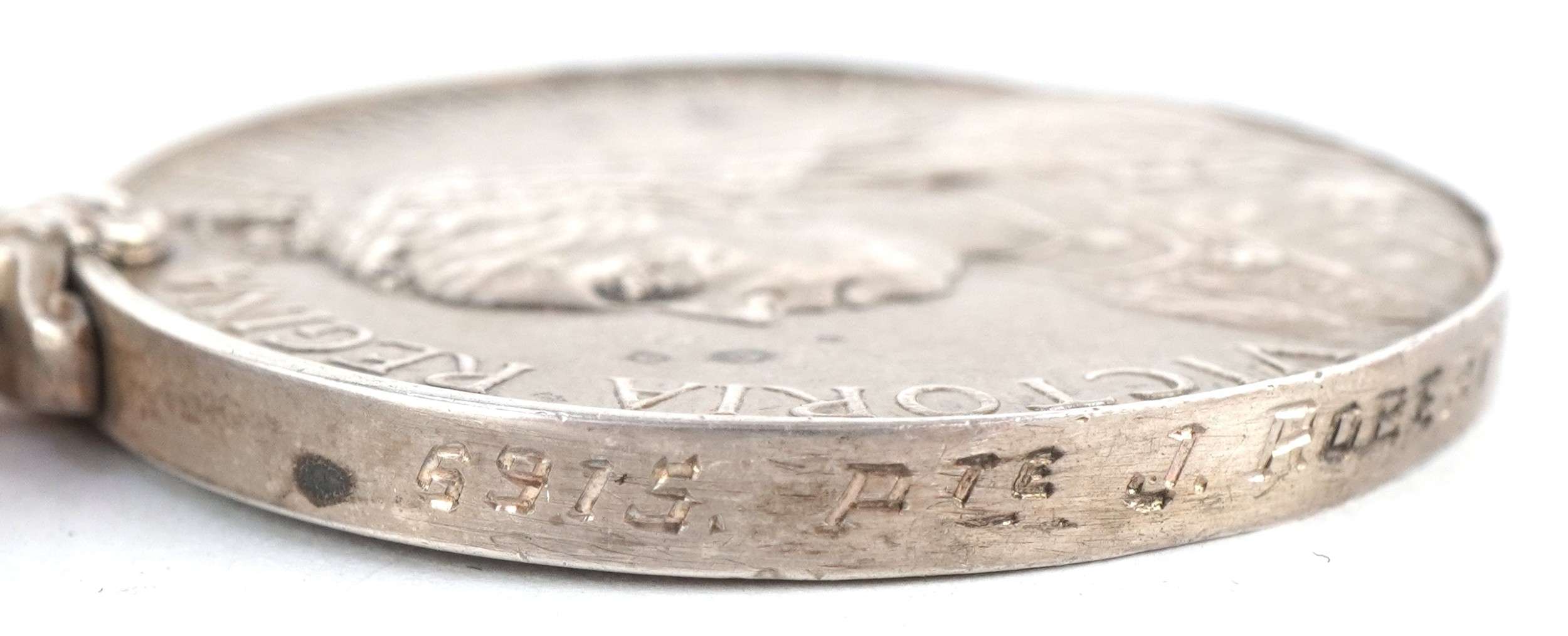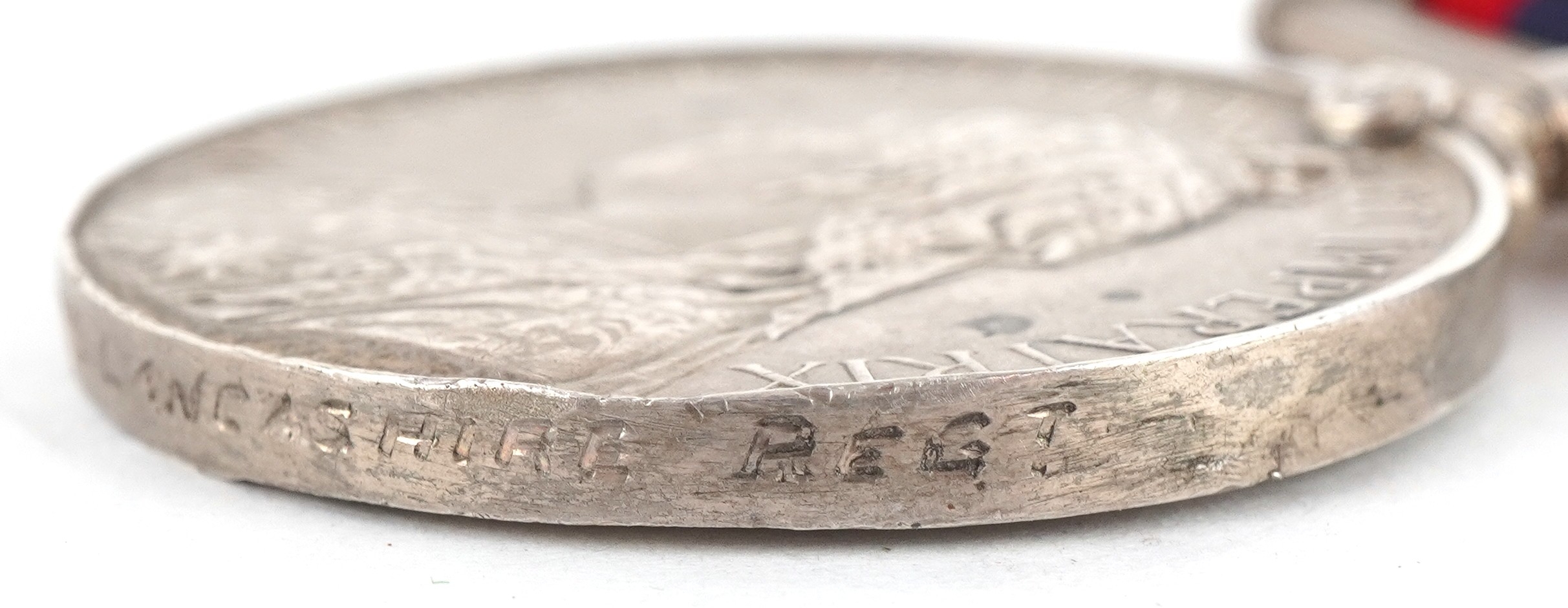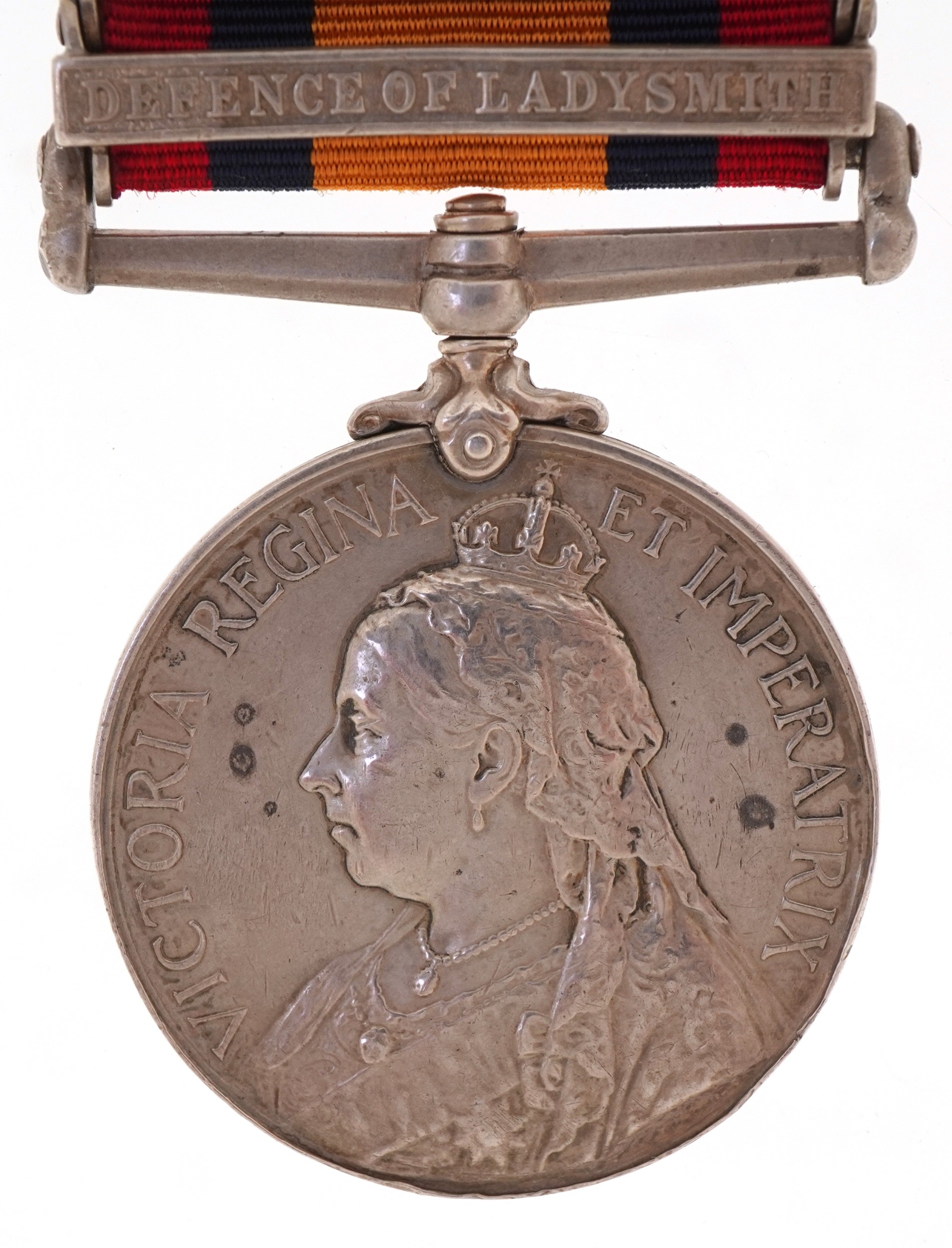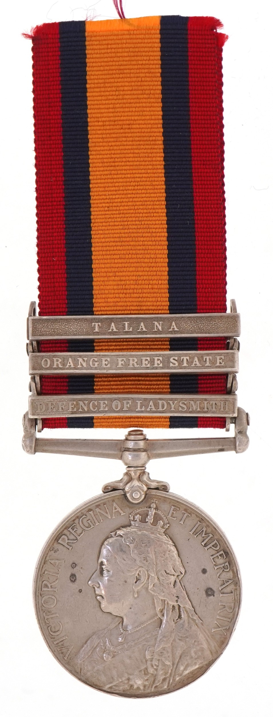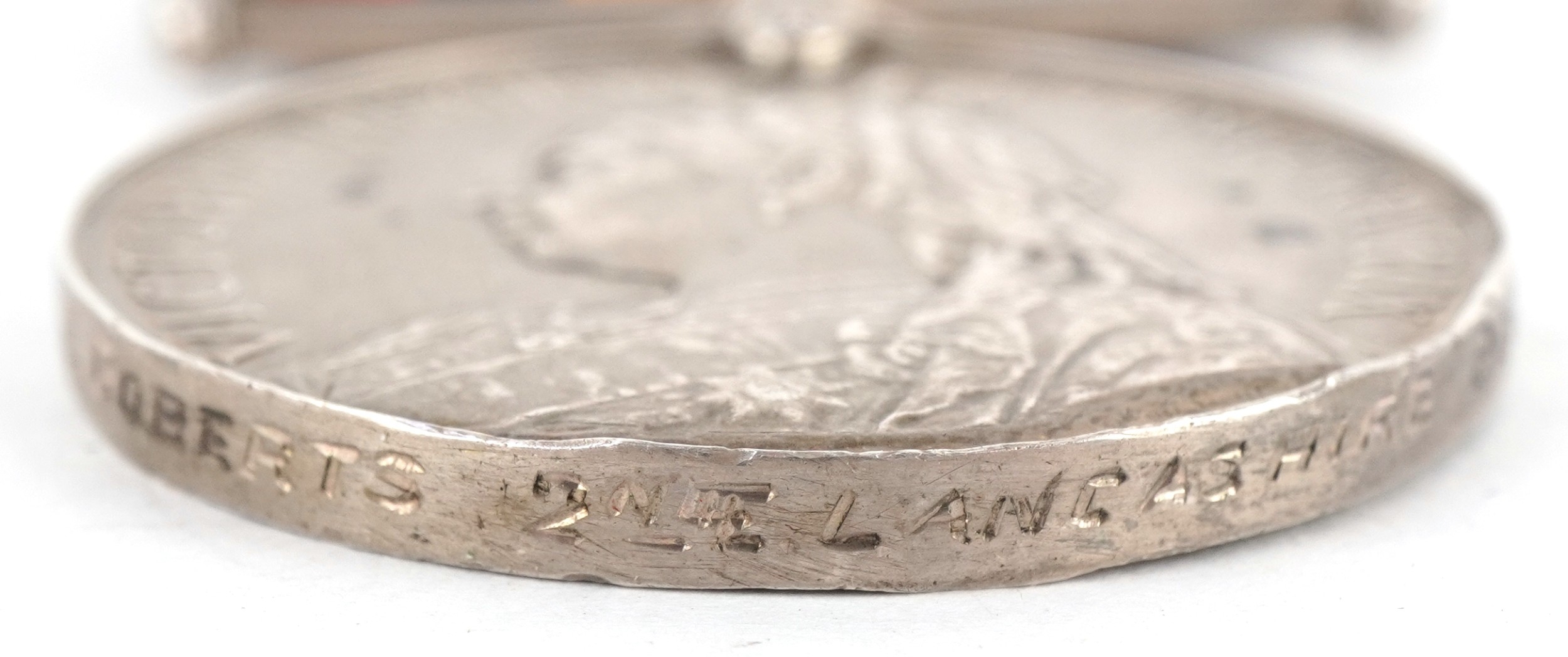 A British military Queen Victoria South Africa medal awarded to 5915 PTE.J.ROBERTS 2ND.LANCASHIRE REGT with Talana bar, Orange Free State bar and Defence of Ladysmith bar.