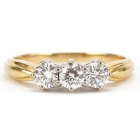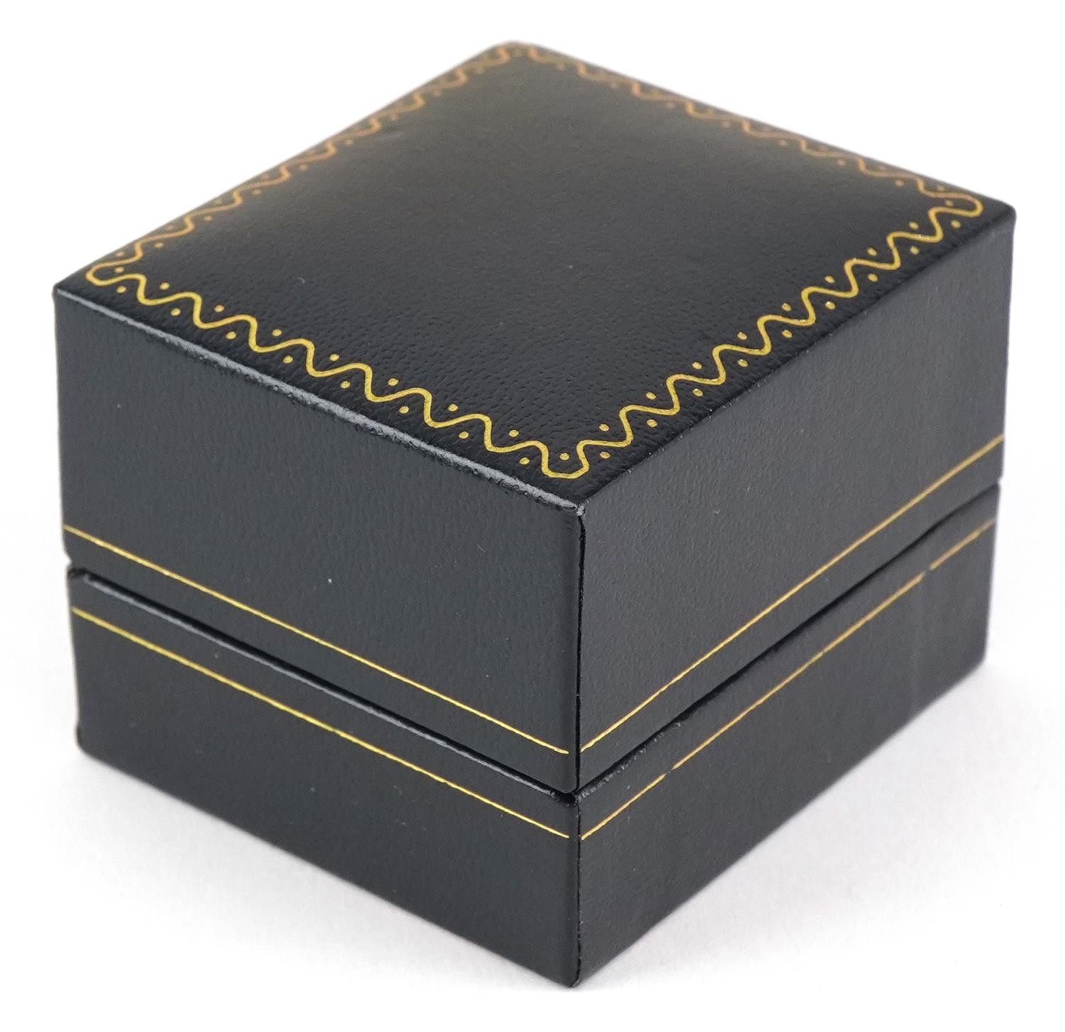 An 18ct white gold step cut sapphire and round brilliant cut...