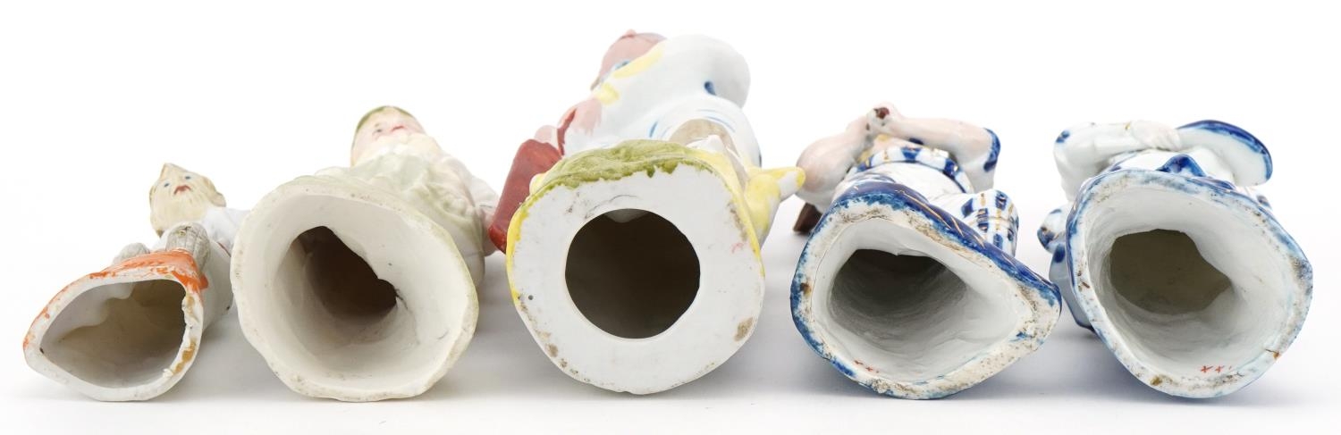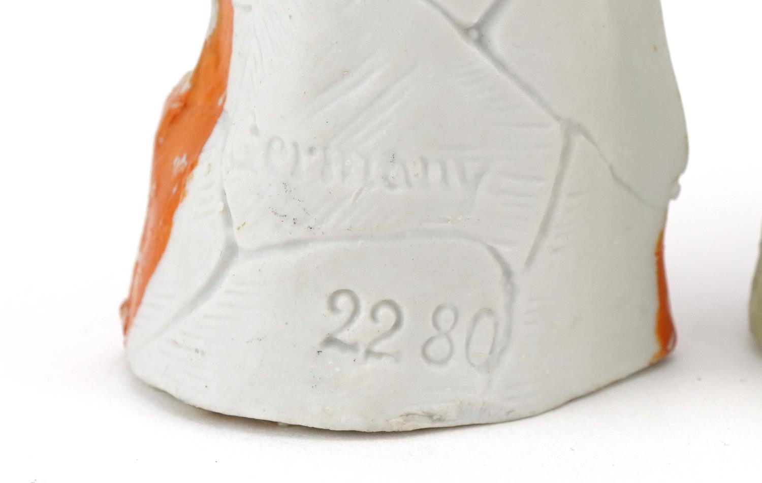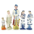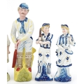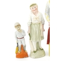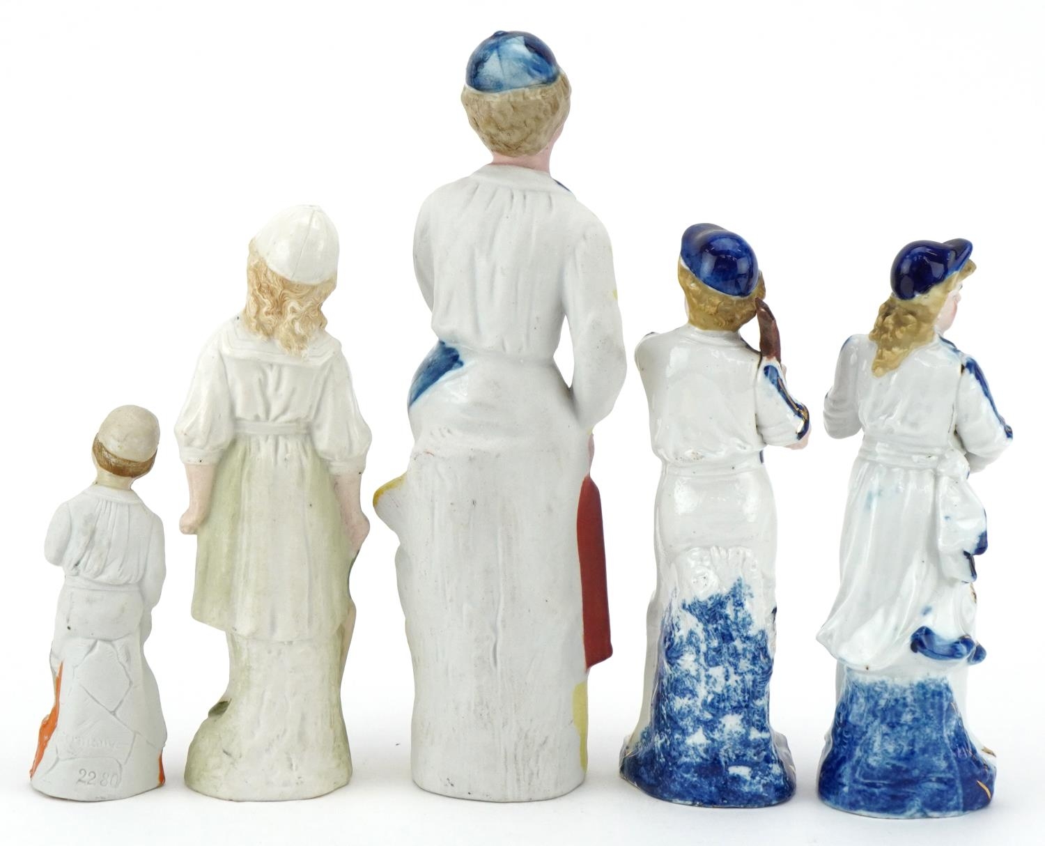 Various Victorian bisque figures of cricketers including a boy and girl couple, the largest 24cm high.