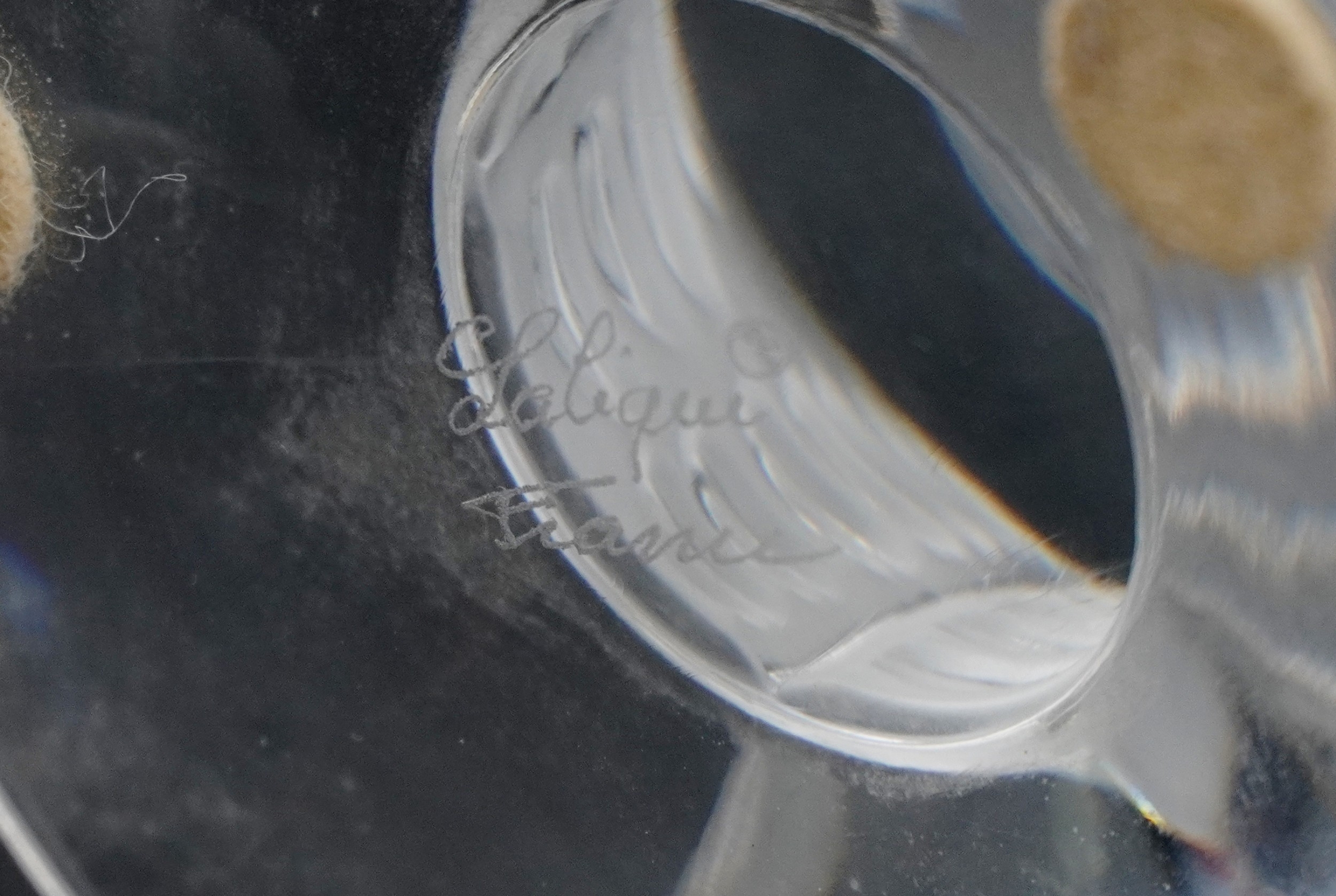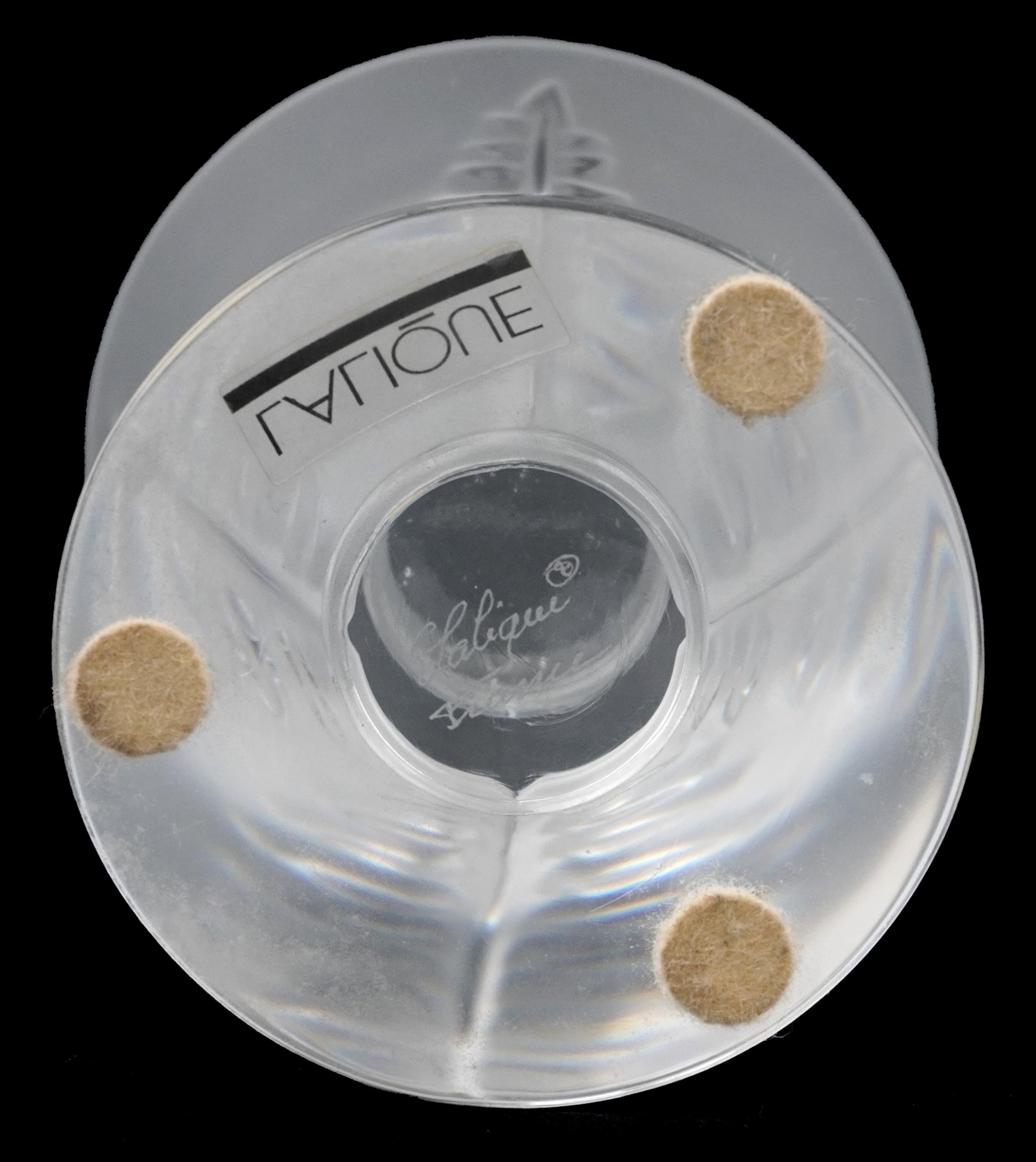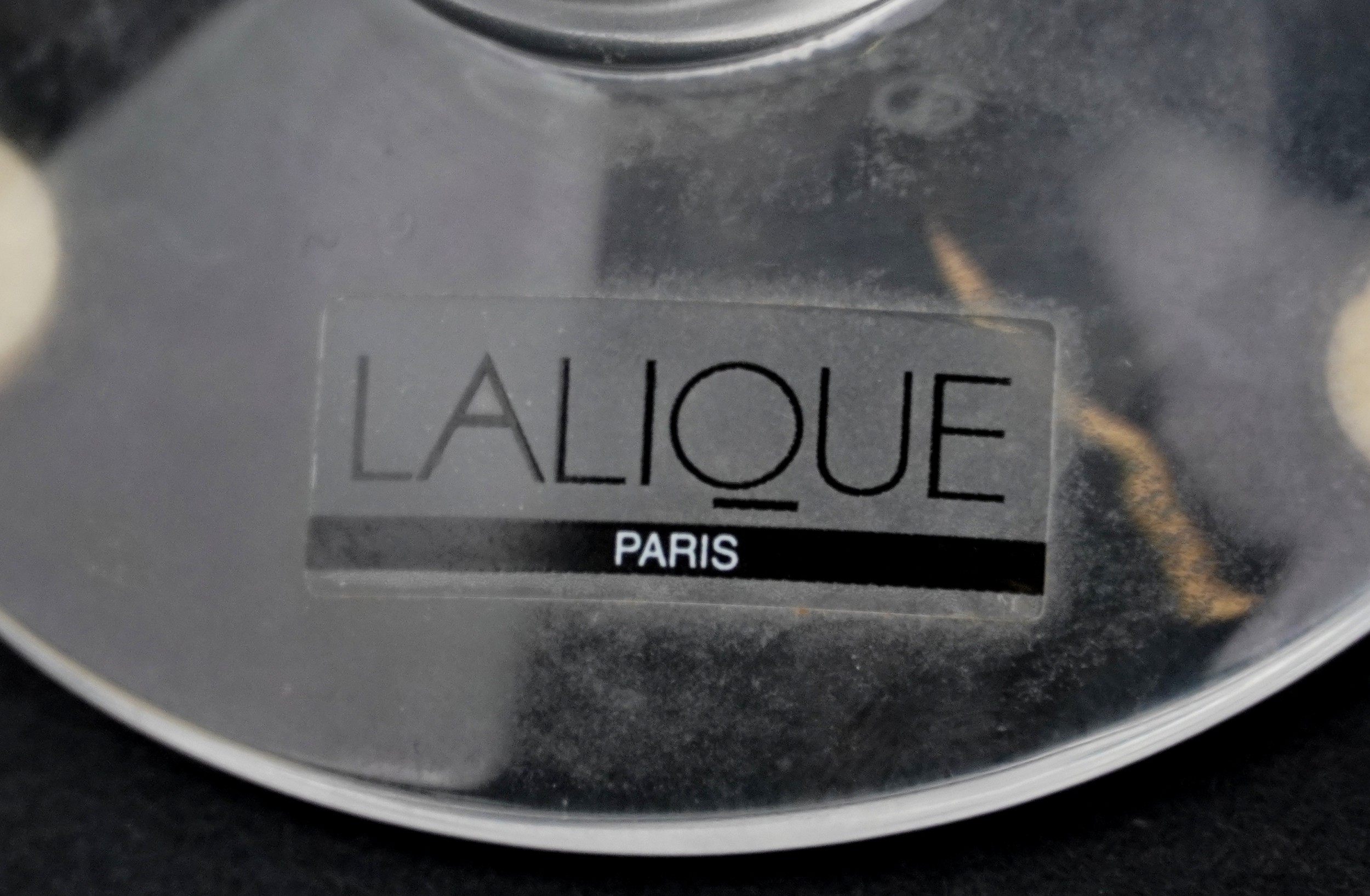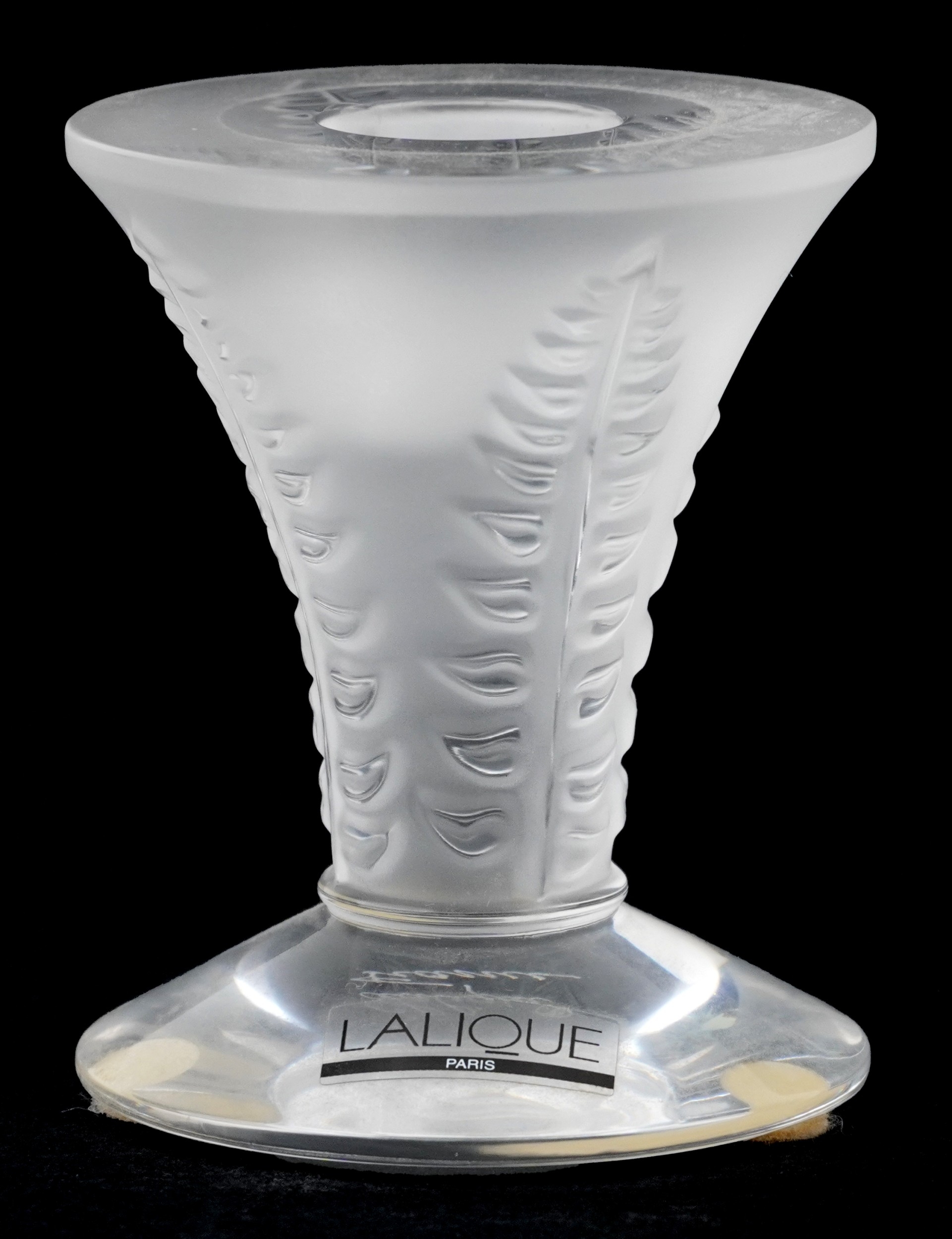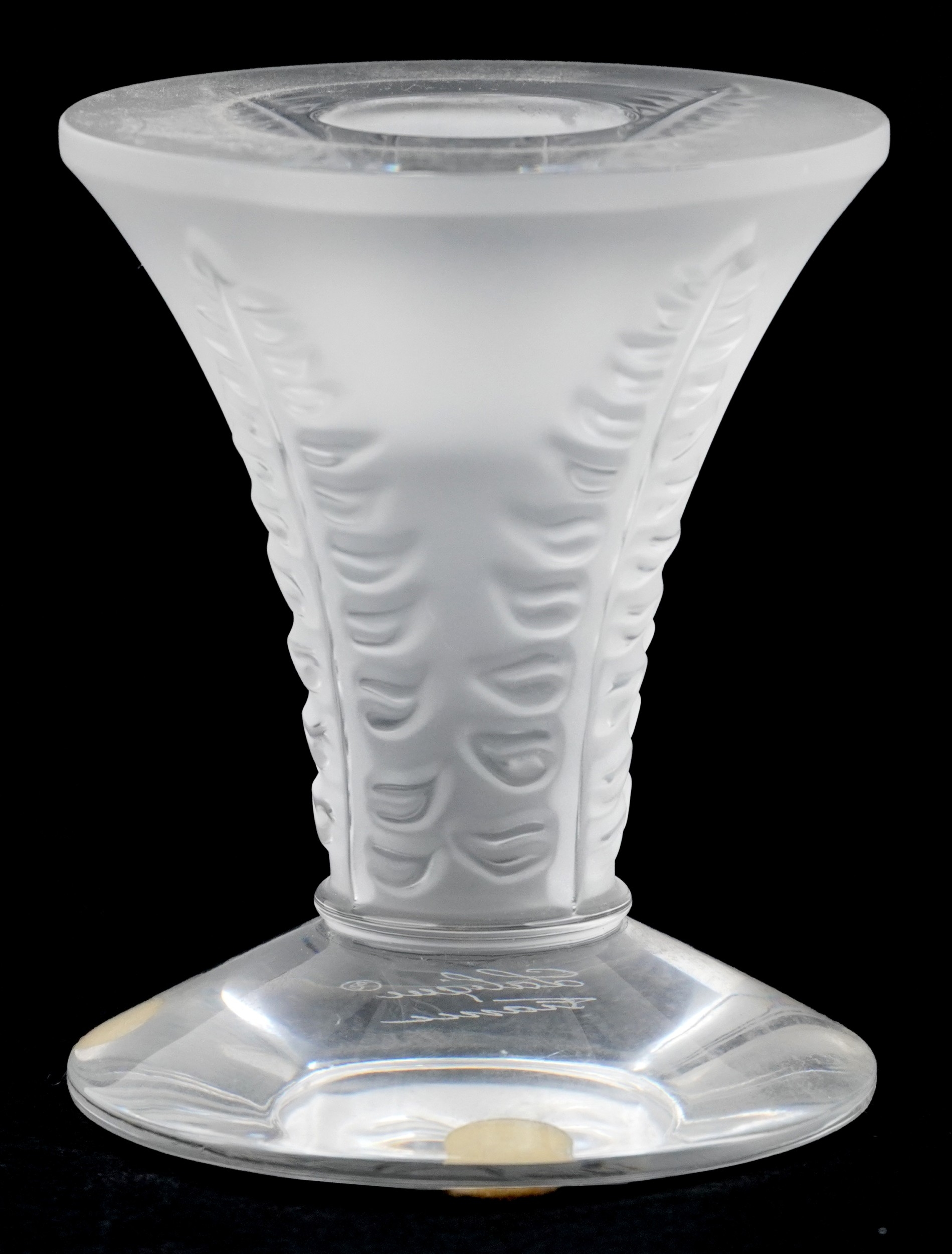 A Lalique frosted glass candlestick, etched Lalique France t...
