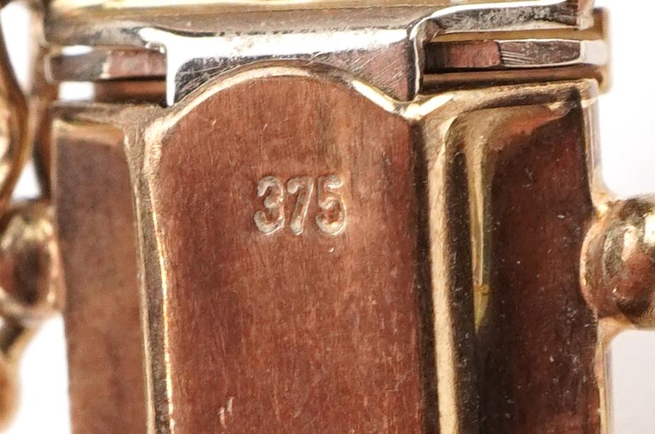 9ct three tone gold hinged bangle, 6.5cm wide, 13.6g