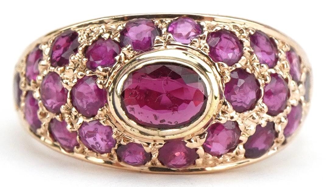 14ct gold ruby ring set with twenty three rubies, size M/N, ...