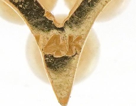 14ct gold pearl love heart brooch, 2.9cm high, 5.3g
