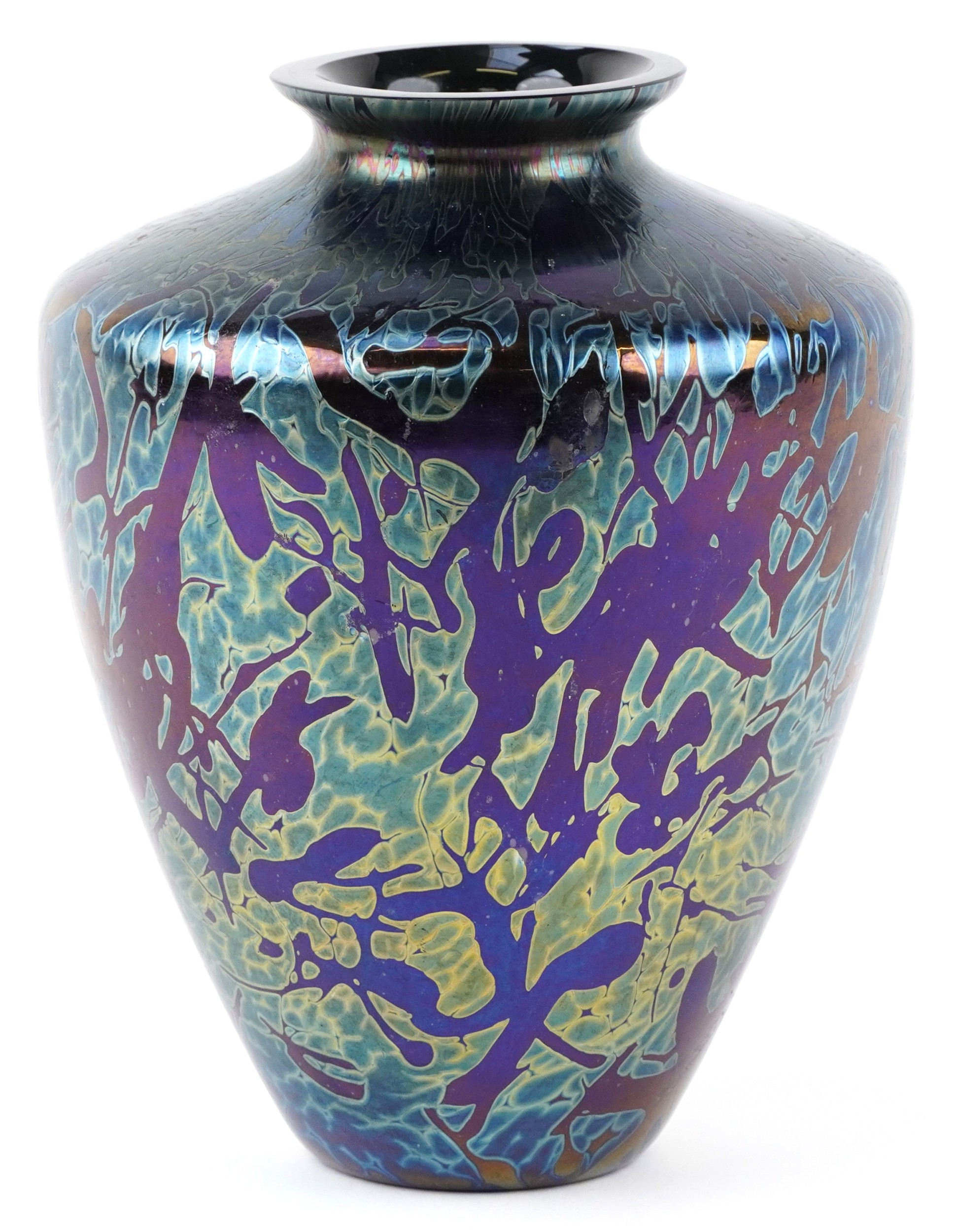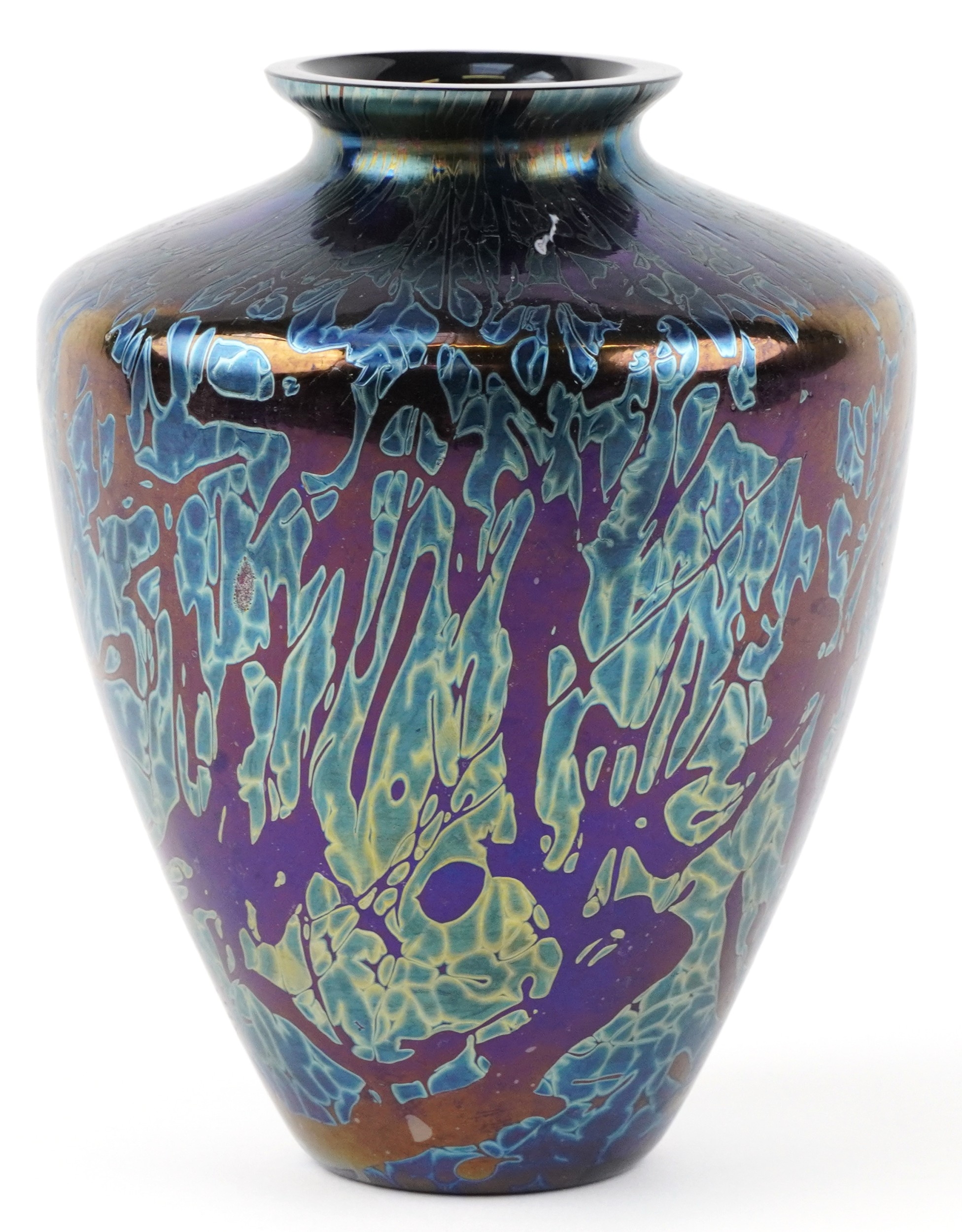 A Royal Brierley iridescent art glass vase, 22cm high.