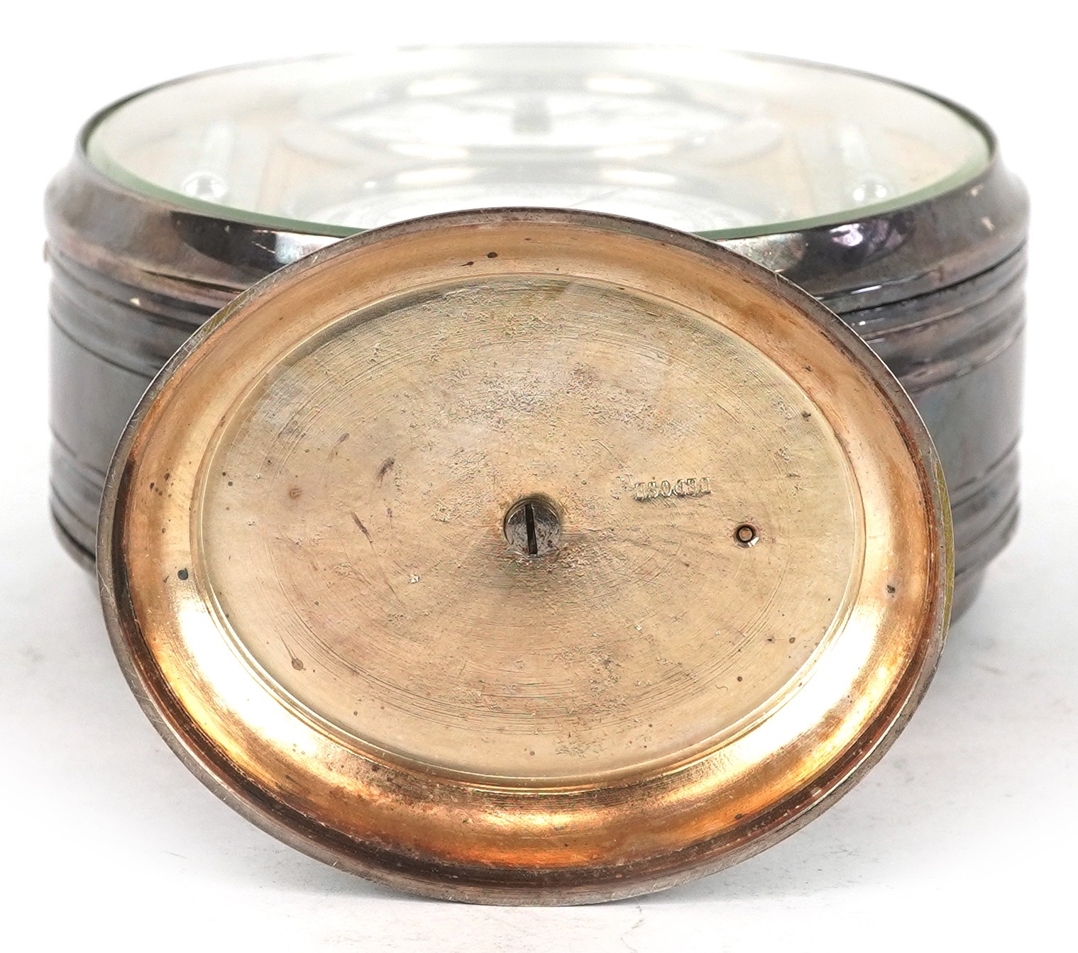 A French 19th century silver plated desk clock, barometer an...